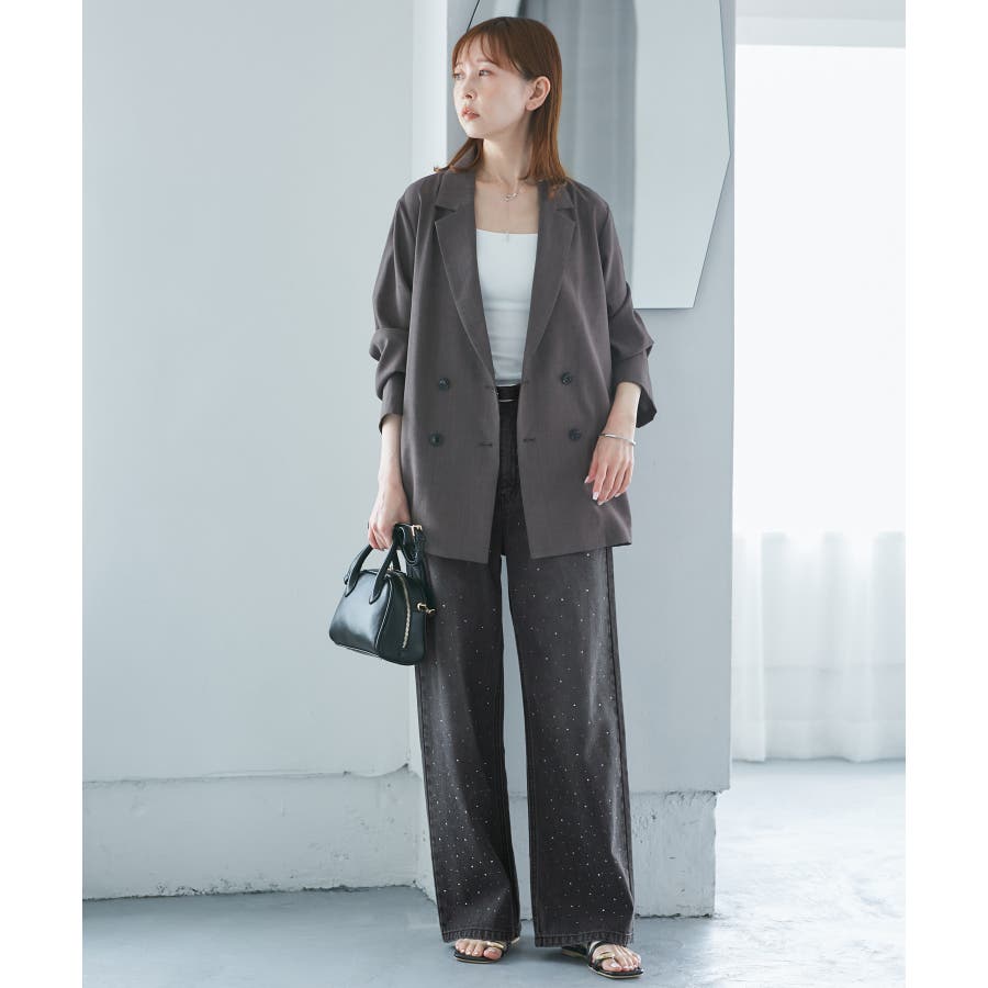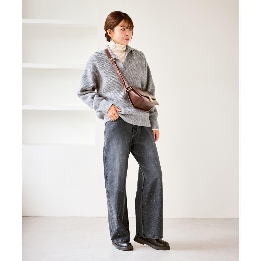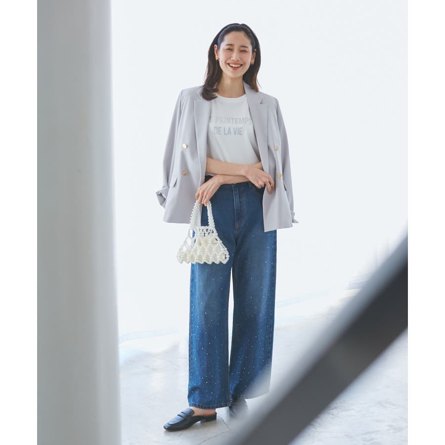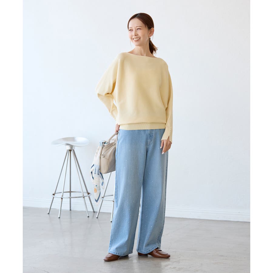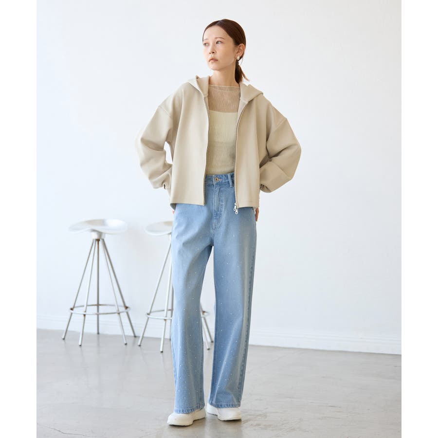 ・ビジューがポイントとなるため、敢えてカジュアルなスウェット合わせが一押し。