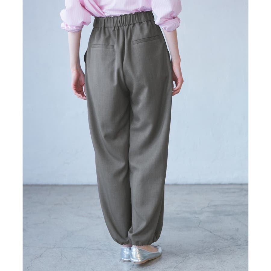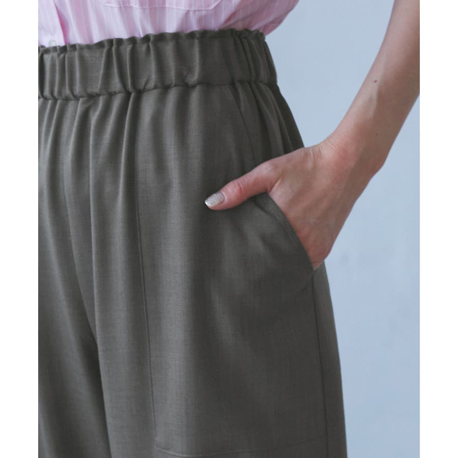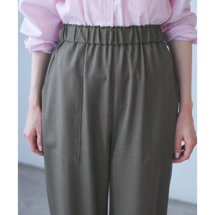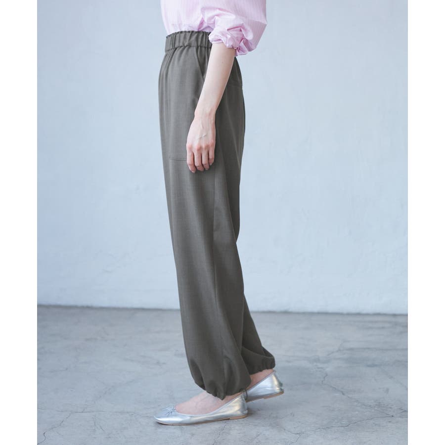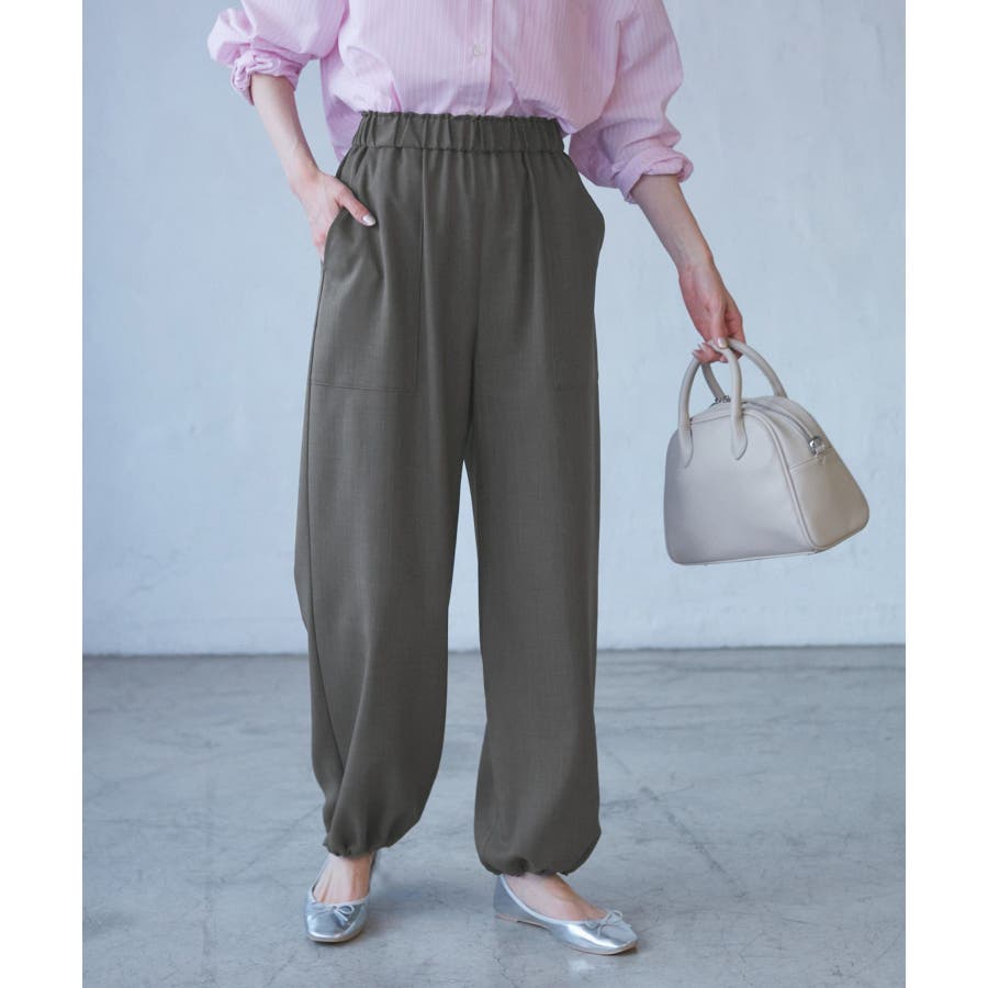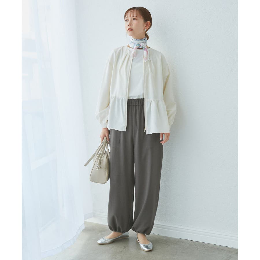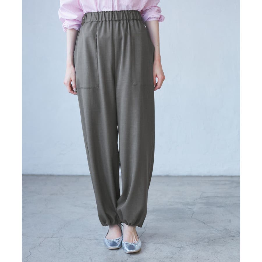 【素材感】 ・薄手で柔らかく、暑い時期にもさらりと軽やかに着られる。 【デザイン・シルエット】 ・ウエストギャザーの穿きやすいドロストパンツ。 ・ベイカーパンツ風の大きなパッチポケットが特徴。 ・裾を絞ってシルエットアレンジが可能。 【カラー】 ・ブラック、チャコールグレー、ベージュの落ち着いた3色を展開。 【スタイリングポイント】 ・フリルブラウスやバレエシューズなどのスウィートなアイテムとスタイリングも◎。 ・フーディー×スニーカーでアクティブに過ごす一日にぴったり。 ・きれいめシャツとパンプスで大人っぽく決めて。 ----------------------------- 裏地:あり 透け感:ベージュ(27)は裏地がない部分はややあり 伸縮性:なし 生地感・厚さ:やや薄手 ポケット:あり ウエスト:ゴム その他仕様:裾ドロスト可能 季節:春・夏・秋 ----------------------------- ※撮影時の光、お使いのモニター環境によって色の見え方が違う場合がございます。 ※モデル身長:165cm 着用サイズ:38