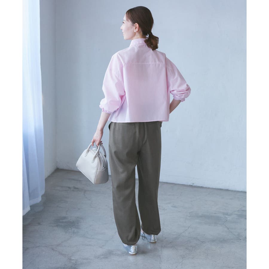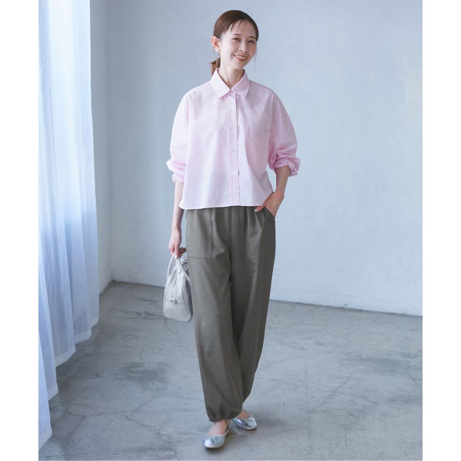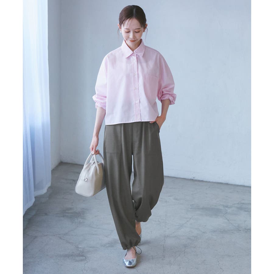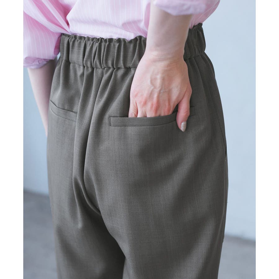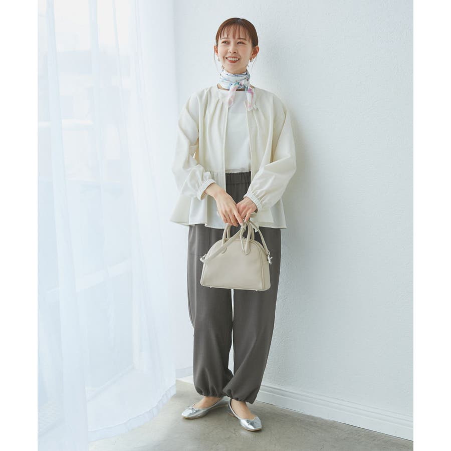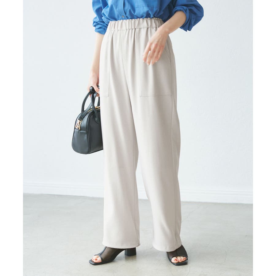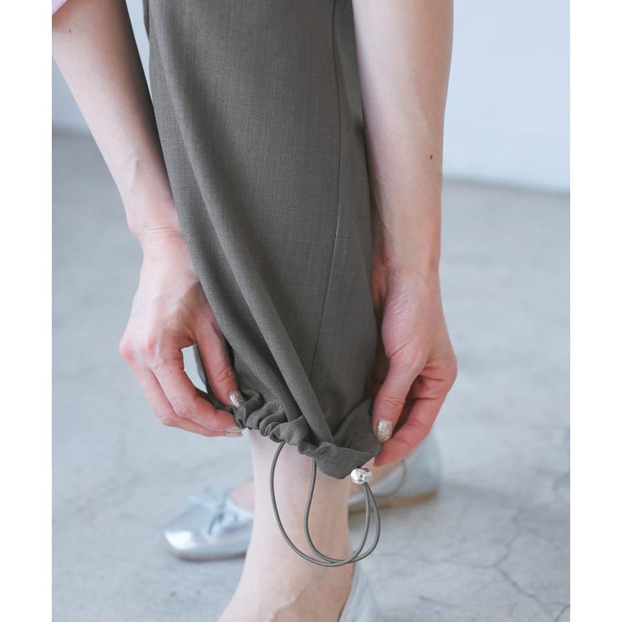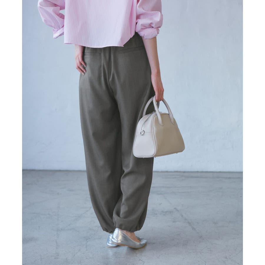 【素材感】 ・薄手で柔らかく、暑い時期にもさらりと軽やかに着られる。 【デザイン・シルエット】 ・ウエストギャザーの穿きやすいドロストパンツ。 ・ベイカーパンツ風の大きなパッチポケットが特徴。 ・裾を絞ってシルエットアレンジが可能。 【カラー】 ・ブラック、チャコールグレー、ベージュの落ち着いた3色を展開。 【スタイリングポイント】 ・フリルブラウスやバレエシューズなどのスウィートなアイテムとスタイリングも◎。 ・フーディー×スニーカーでアクティブに過ごす一日にぴったり。 ・きれいめシャツとパンプスで大人っぽく決めて。 ----------------------------- 裏地:あり 透け感:ベージュ(27)は裏地がない部分はややあり 伸縮性:なし 生地感・厚さ:やや薄手 ポケット:あり ウエスト:ゴム その他仕様:裾ドロスト可能 季節:春・夏・秋 ----------------------------- ※撮影時の光、お使いのモニター環境によって色の見え方が違う場合がございます。 ※モデル身長:165cm 着用サイズ:38