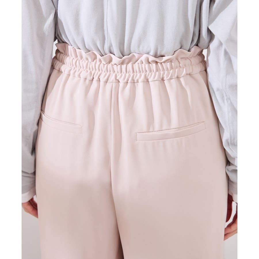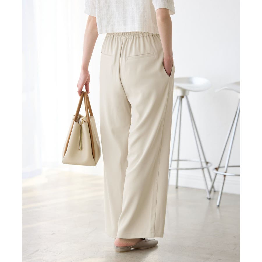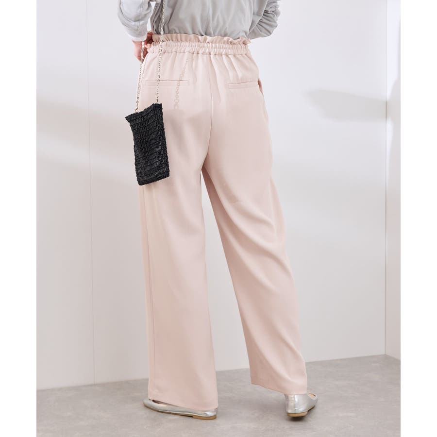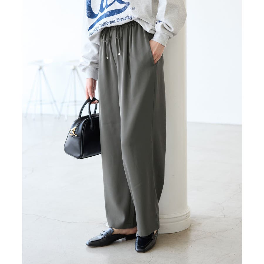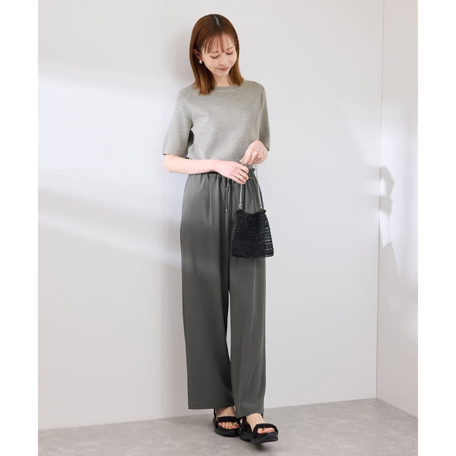 【素材感】 ・落ち感のある合繊素材のワイドシルエットのジョグパンツ。 ・ハリ感もある素材なので、足のラインを拾いにくい。 たてラインをきれいに見せます。 【デザイン・シルエット】 ・ニュアンスカラーが春を感じさせるイージーワイドパンツ。 ・ギャザーウエストとドローストリングで快適な穿き心地。 ・フロントタックと、バックの片玉縁ポケットで、きれいめな要素もプラス。 【カラー】 ・チャコールグレー、ベージュ、サックスブルー、ピンクの4色展開。 【スタイリングポイント】 ・ピンクはブラックを合わせると甘さを抑えられる。 ・ボーダートップスに合わせて、リラクシーなマリンコーデに。 ・足もとはフラットサンダルで抜け感を演出して。 ・トップスはブラウスやシャツを合わせれば、オフィススタイルの完成。 ---------------------------- 裏地:なし 透け感:なし 伸縮性:あり 生地感・厚さ:普通 ポケット:あり(後ろはフェイク) ファスナー:なし その他仕様:ウエストゴム、内側紐あり 季節:春・夏・秋 ----------------------------- ※撮影時の光、お使いのモニター環境によって色の見え方が違う場合がございます。 ※モデル身長:165cm 着用サイズ:38