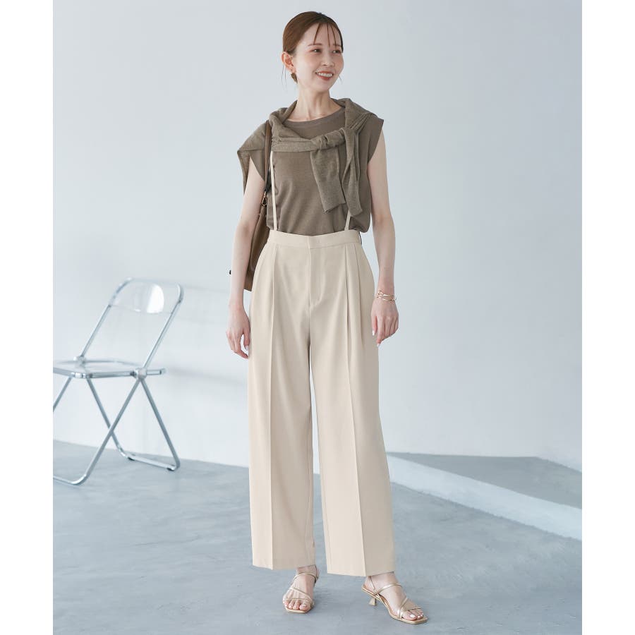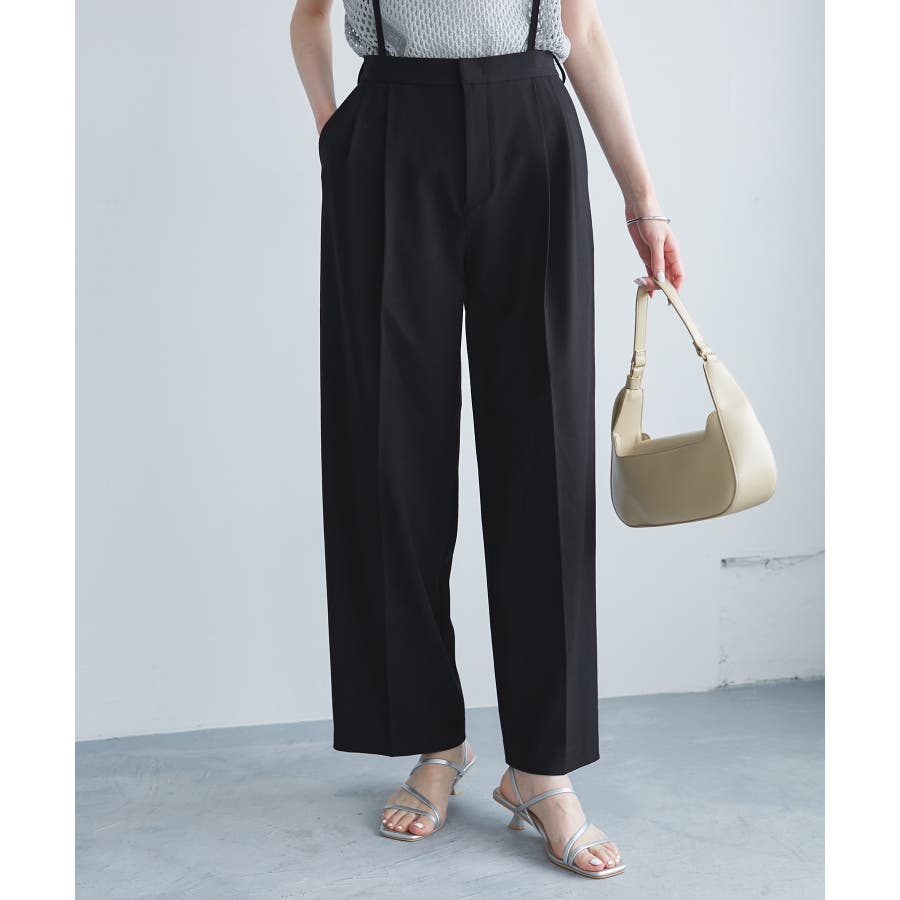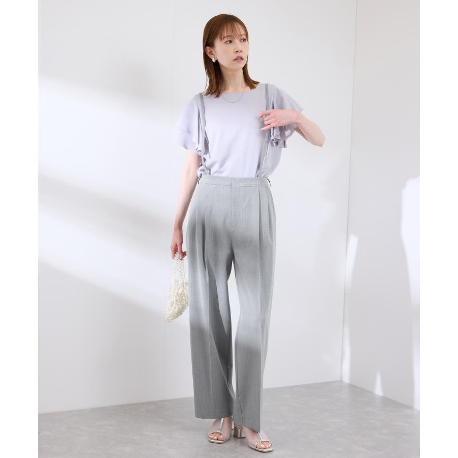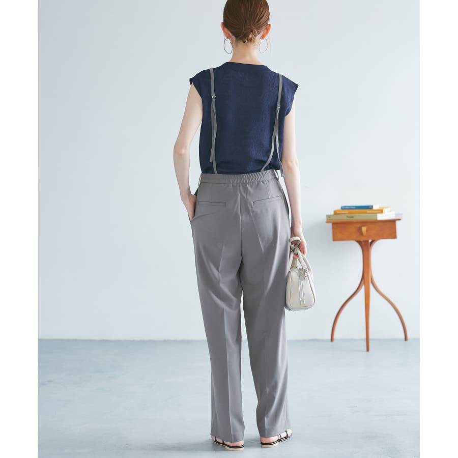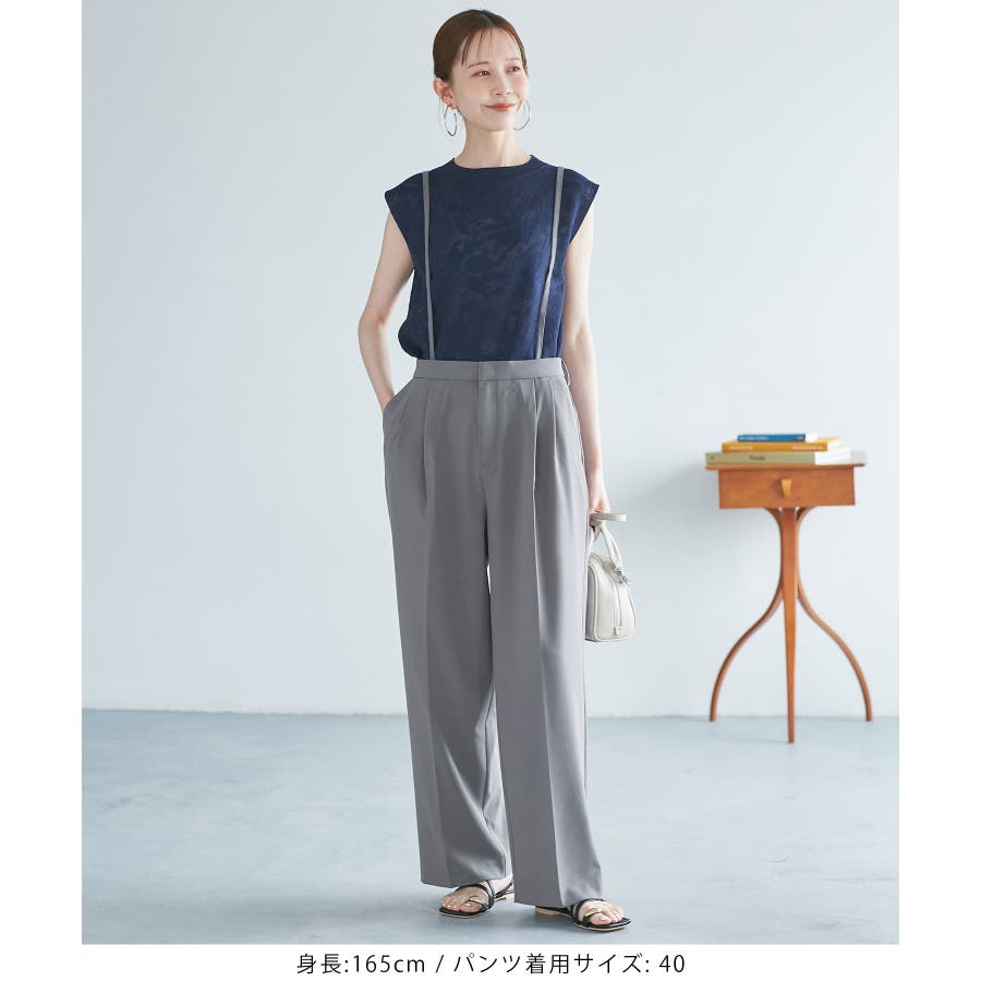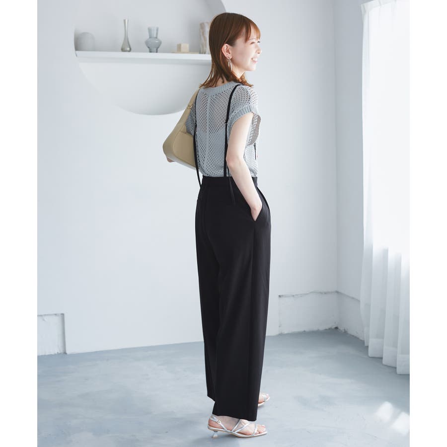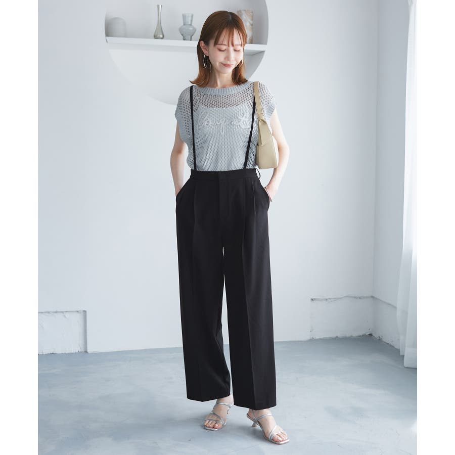 ・華奢でフェミニンなショルダーストラップと、メンズライクな2タックパンツのミックス感がポイント。