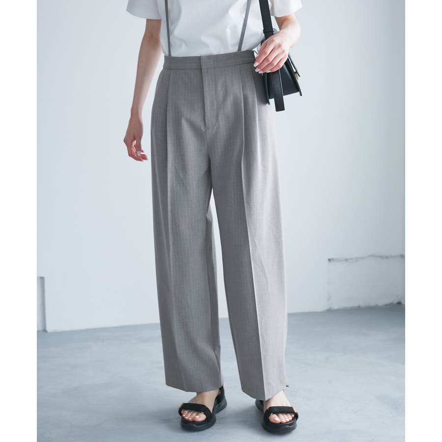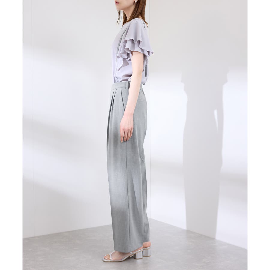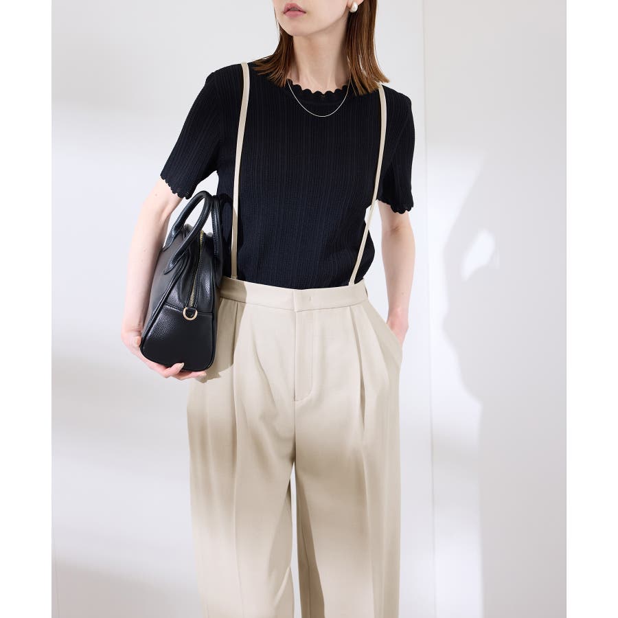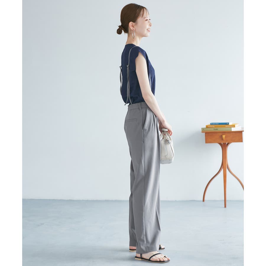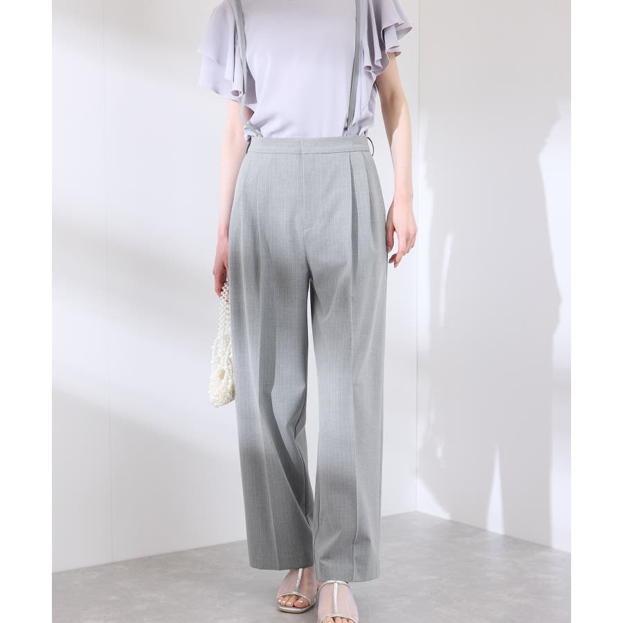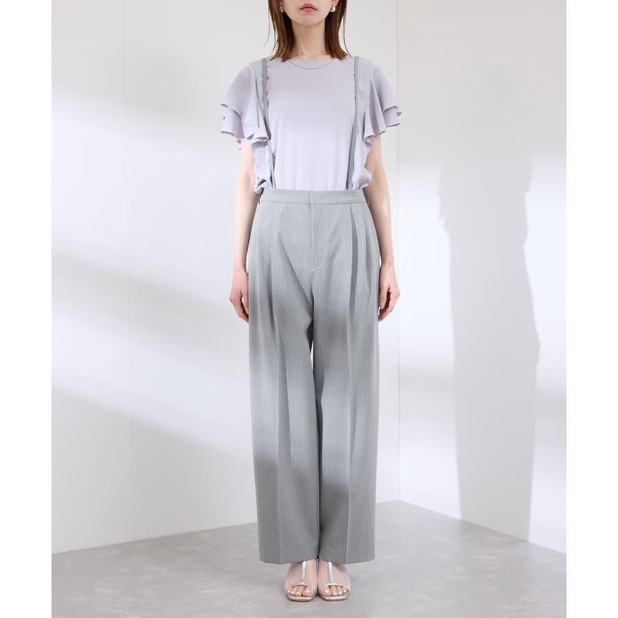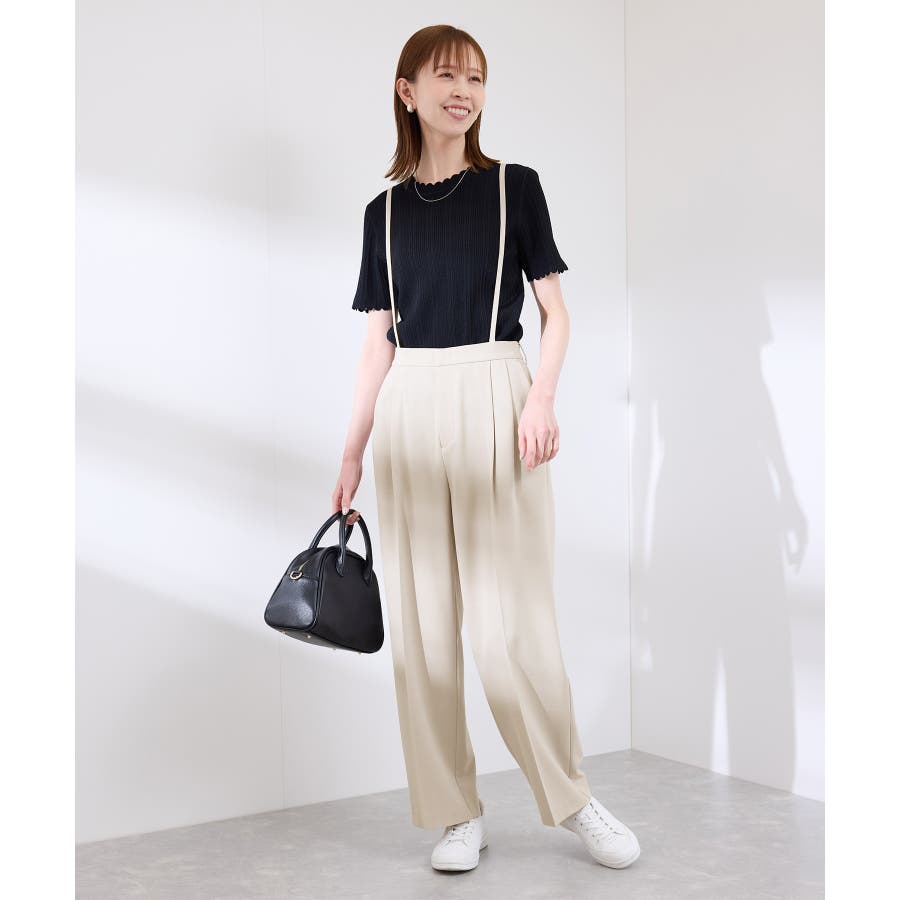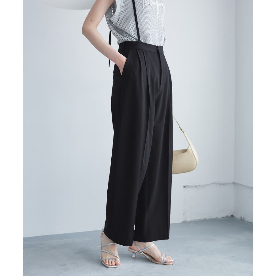 ・華奢でフェミニンなショルダーストラップと、メンズライクな2タックパンツのミックス感がポイント。