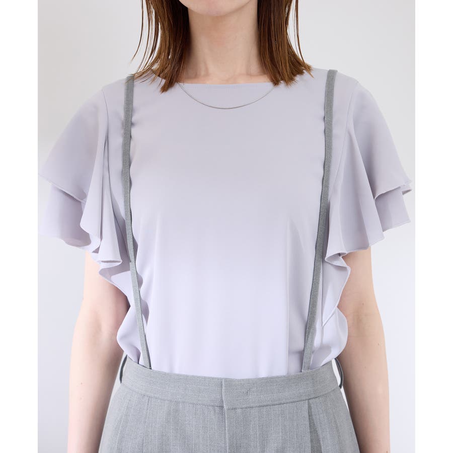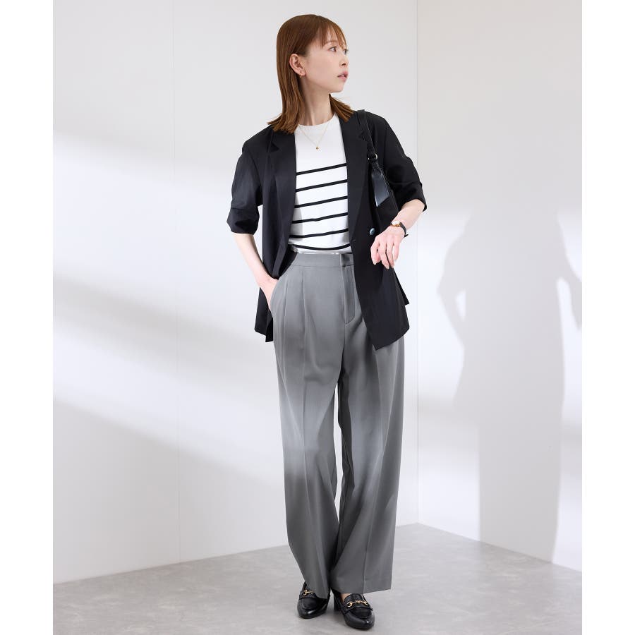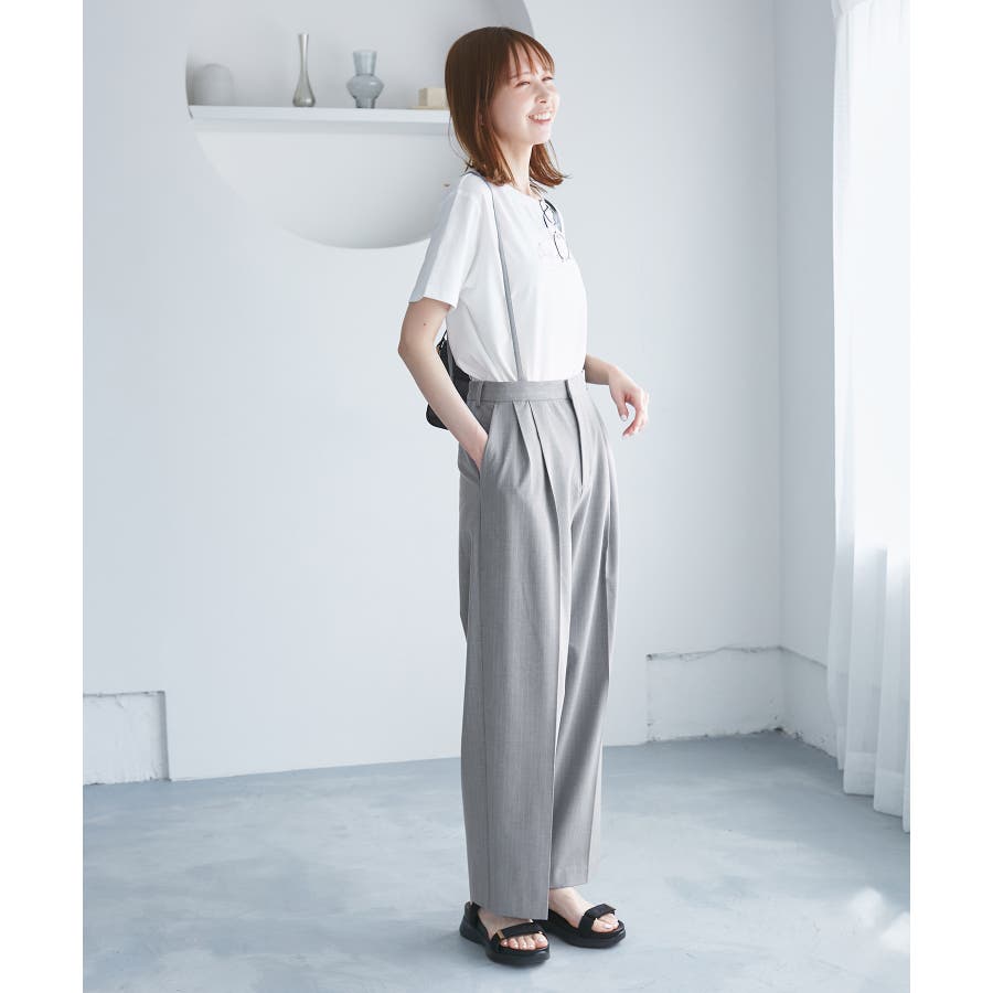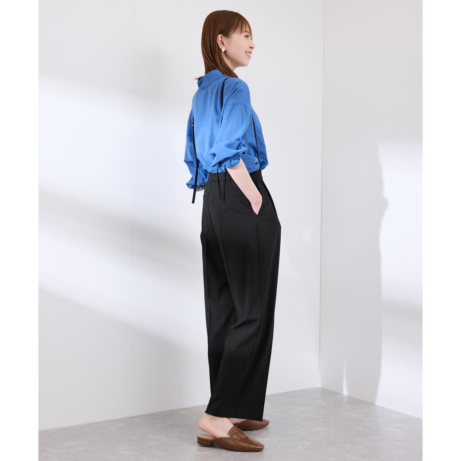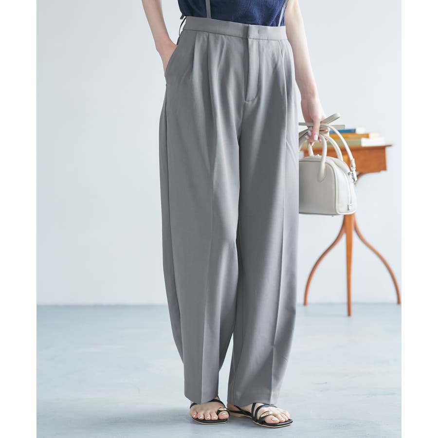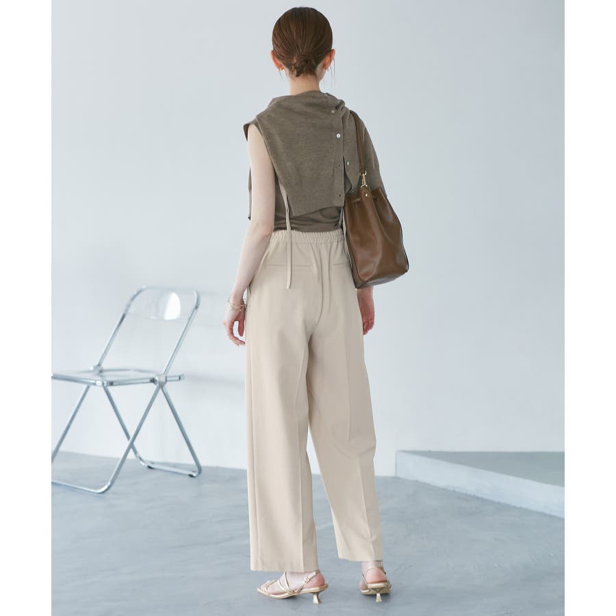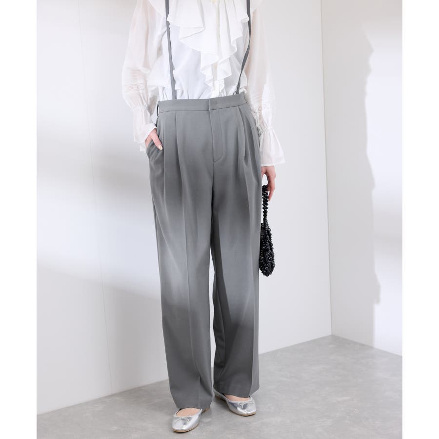 ・華奢でフェミニンなショルダーストラップと、メンズライクな2タックパンツのミックス感がポイント。