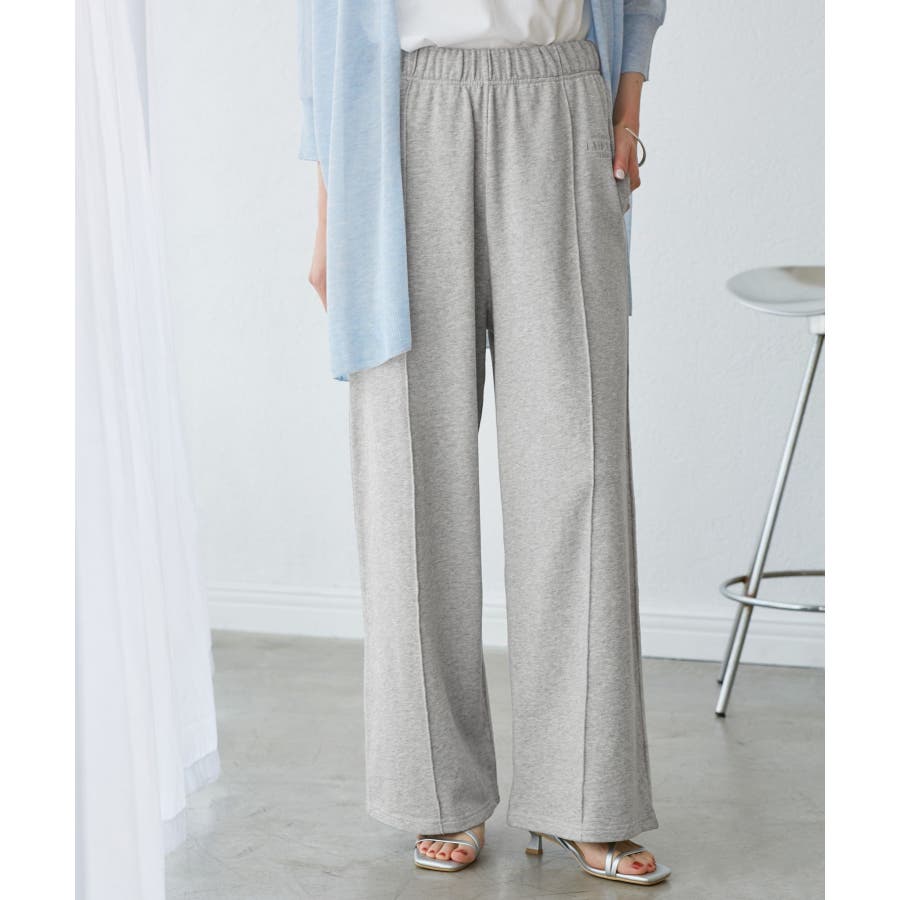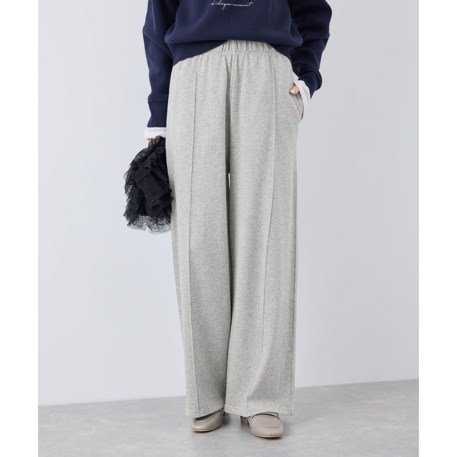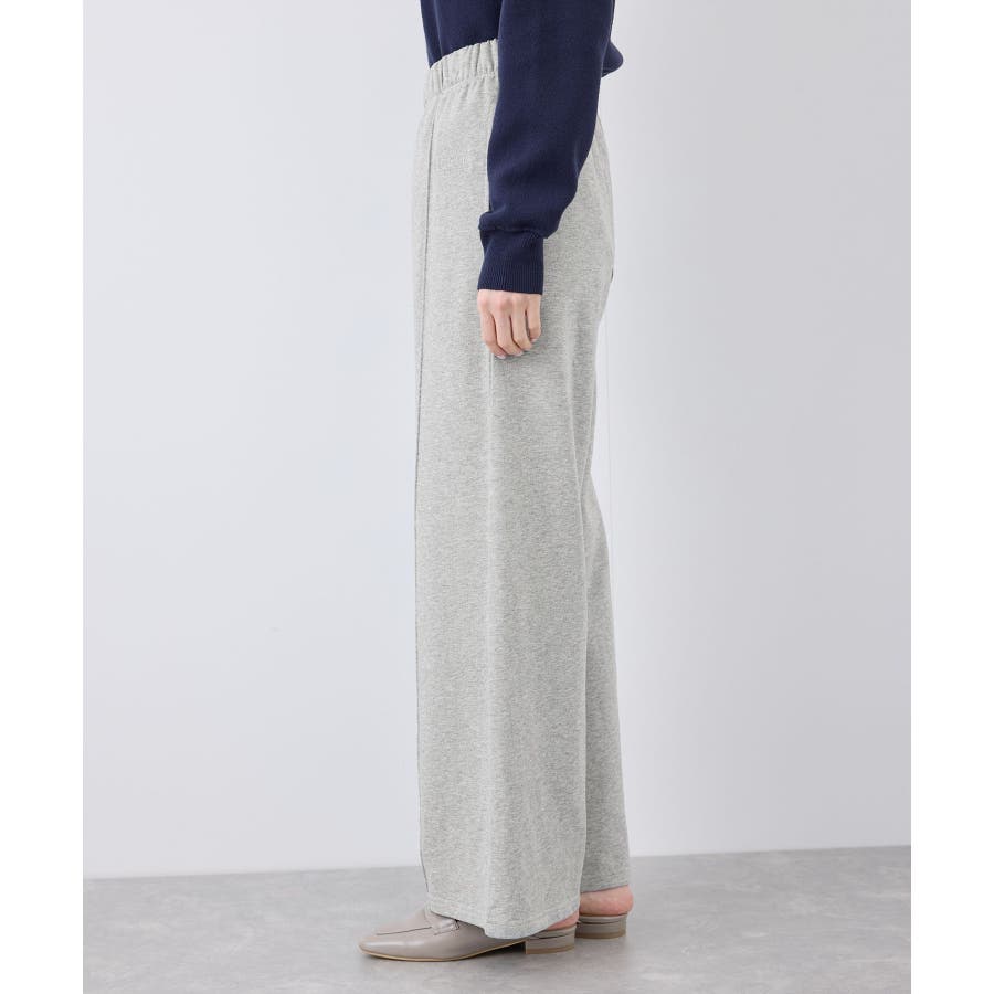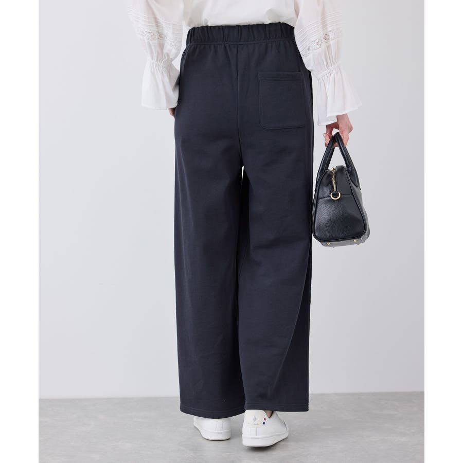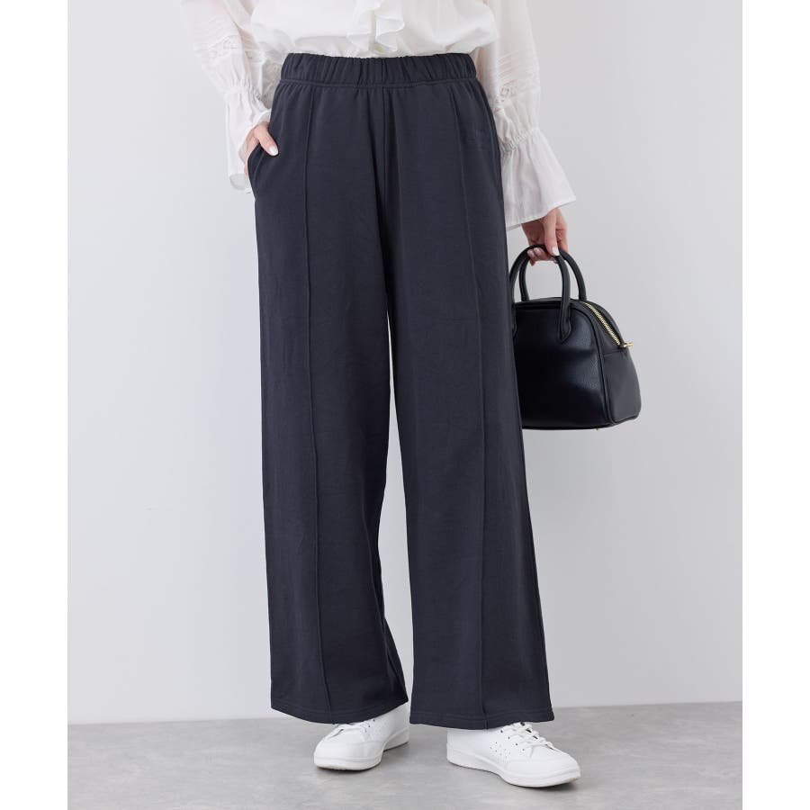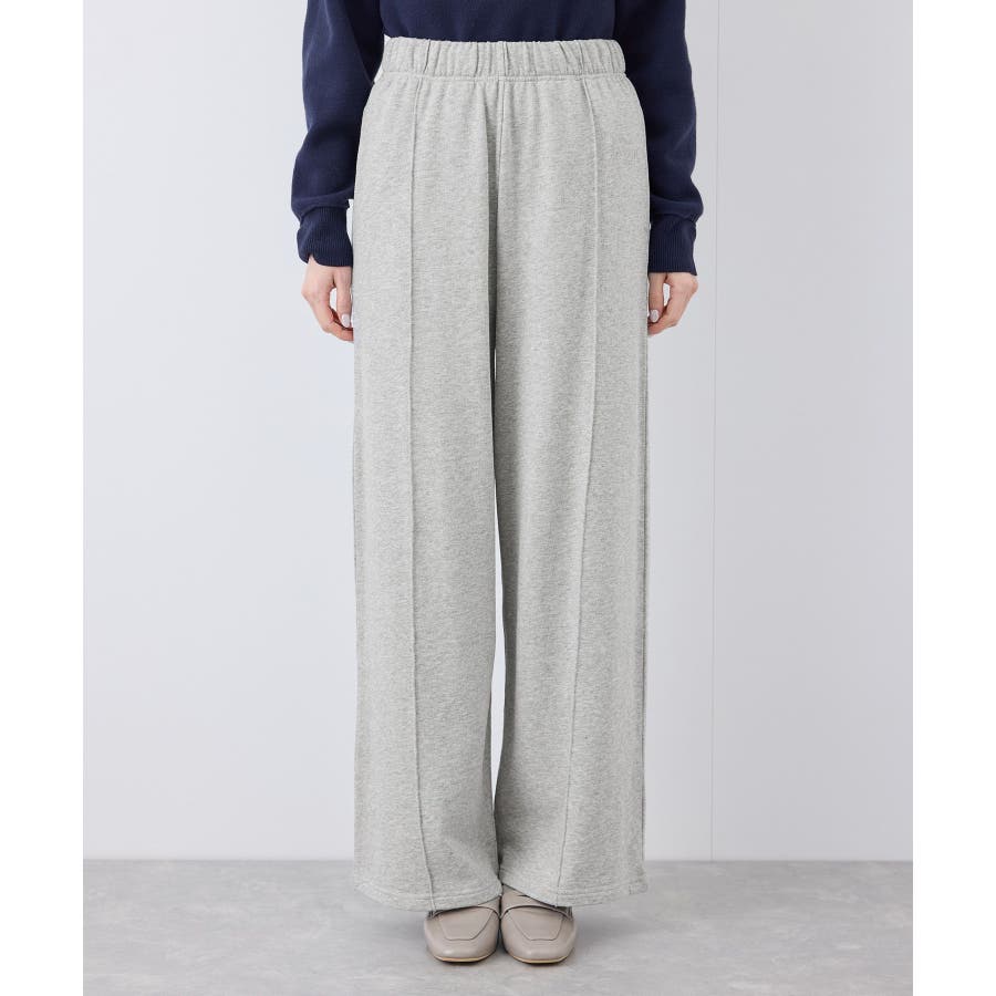 【デザイン・シルエット】 ・リラクシーな穿き心地と大人見えを両立した、ワイドシルエットのスウェットパンツ。 ・センターステッチを施すことで、立体感をプラス。 ・ウエストギャザーのプルオン仕様で着脱がスムーズ。 ・さりげなくロゴ刺繍入り。 【カラー】 ・杢グレー、ネイビーの落ち着いた2色をラインナップ。 【スタイリングポイント】 ・レトロなハイカットスニーカー合わせがおすすめ。 ・パンプスならほんのりきれいめにフィニッシュ。 ・ビッグサイズのシャツに合わせて大人のカジュアルコーデに。 ・スウェットシャツとセットアップ風に取り入れても◎。 ----------------------------- 裏地:なし 透け感:なし 伸縮性:ややあり 生地感・厚さ:普通 ポケット:あり ウエスト:ゴム 季節:春・夏・秋・冬 ----------------------------- ※撮影時の光、お使いのモニター環境によって色の見え方が違う場合がございます。 ※モデル身長:165cm 着用サイズ:38