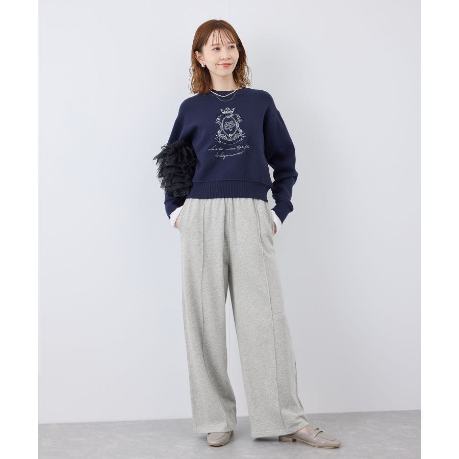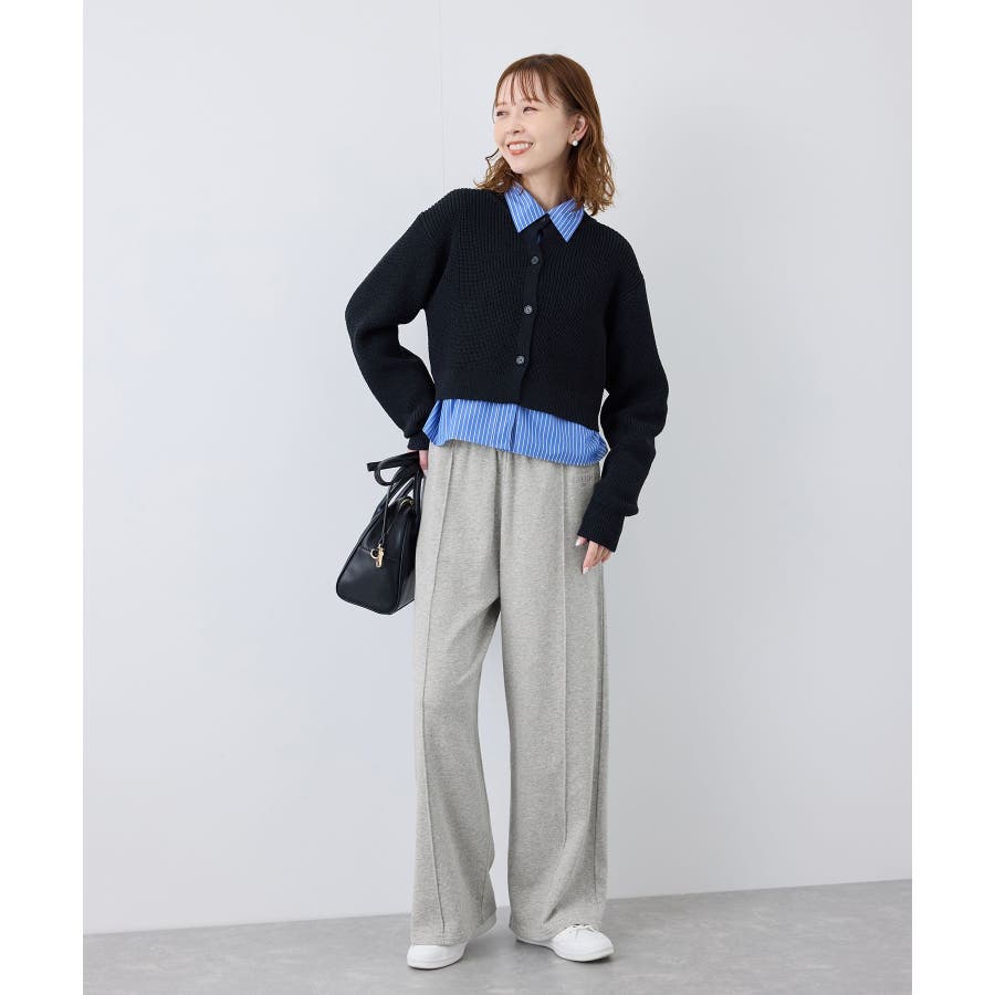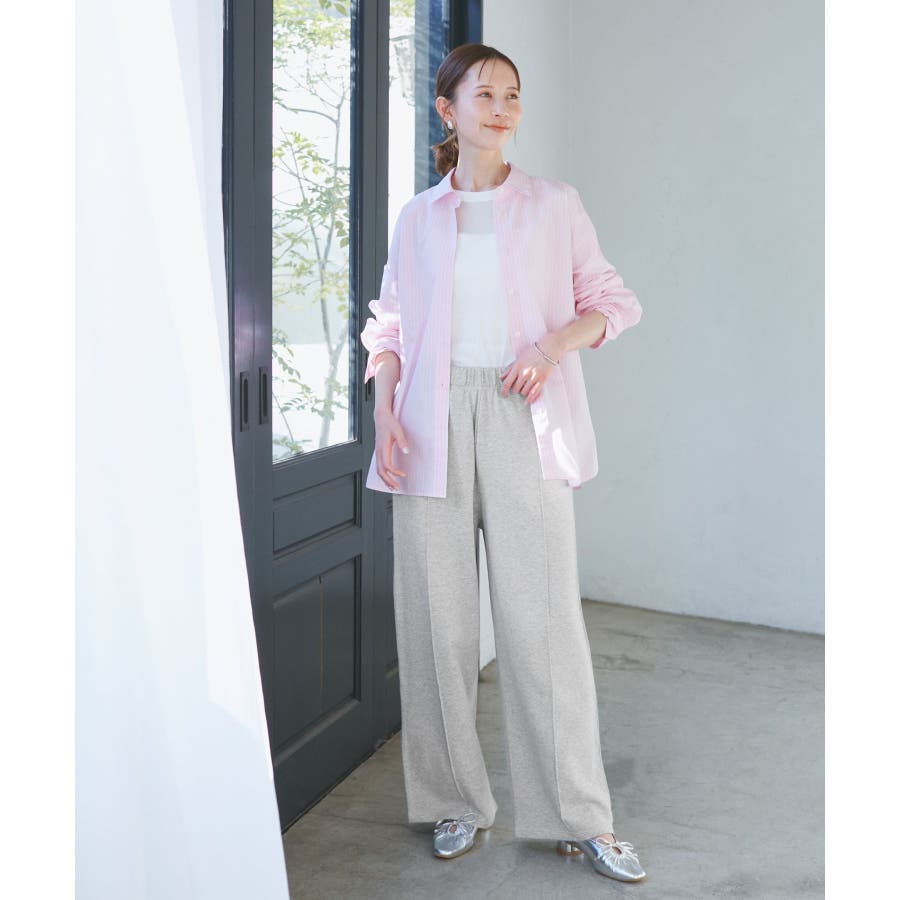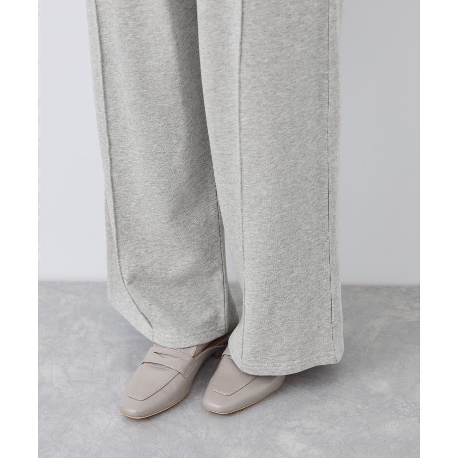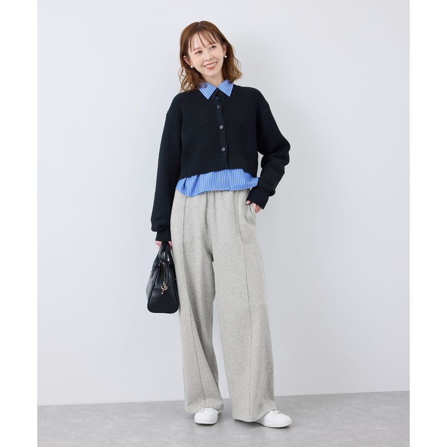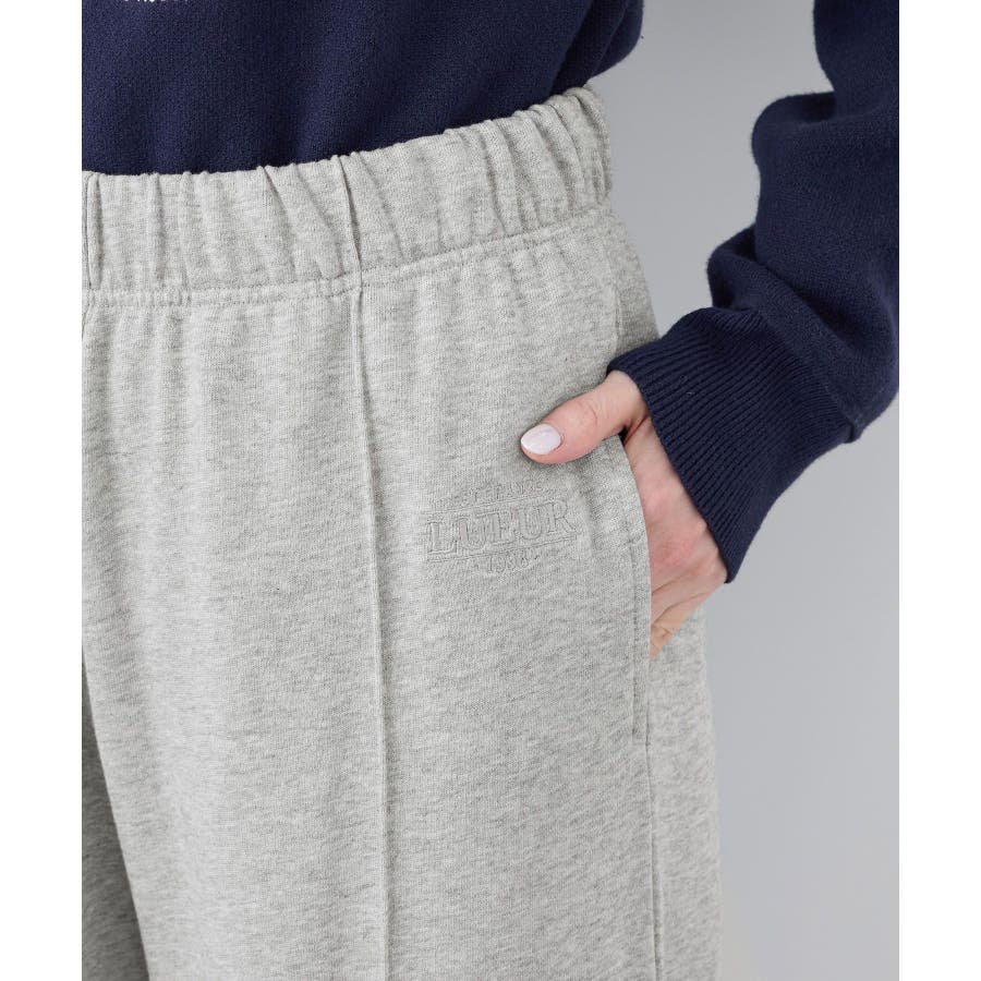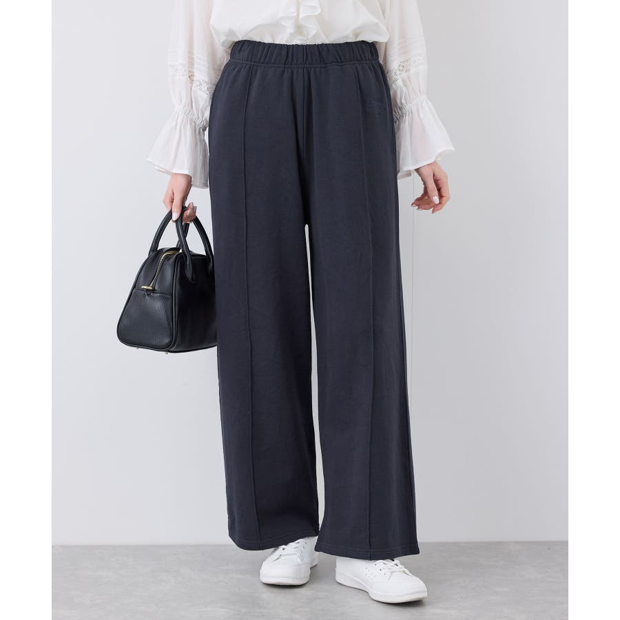 【デザイン・シルエット】 ・リラクシーな穿き心地と大人見えを両立した、ワイドシルエットのスウェットパンツ。 ・センターステッチを施すことで、立体感をプラス。 ・ウエストギャザーのプルオン仕様で着脱がスムーズ。 ・さりげなくロゴ刺繍入り。 【カラー】 ・杢グレー、ネイビーの落ち着いた2色をラインナップ。 【スタイリングポイント】 ・レトロなハイカットスニーカー合わせがおすすめ。 ・パンプスならほんのりきれいめにフィニッシュ。 ・ビッグサイズのシャツに合わせて大人のカジュアルコーデに。 ・スウェットシャツとセットアップ風に取り入れても◎。 ----------------------------- 裏地:なし 透け感:なし 伸縮性:ややあり 生地感・厚さ:普通 ポケット:あり ウエスト:ゴム 季節:春・夏・秋・冬 ----------------------------- ※撮影時の光、お使いのモニター環境によって色の見え方が違う場合がございます。 ※モデル身長:165cm 着用サイズ:38