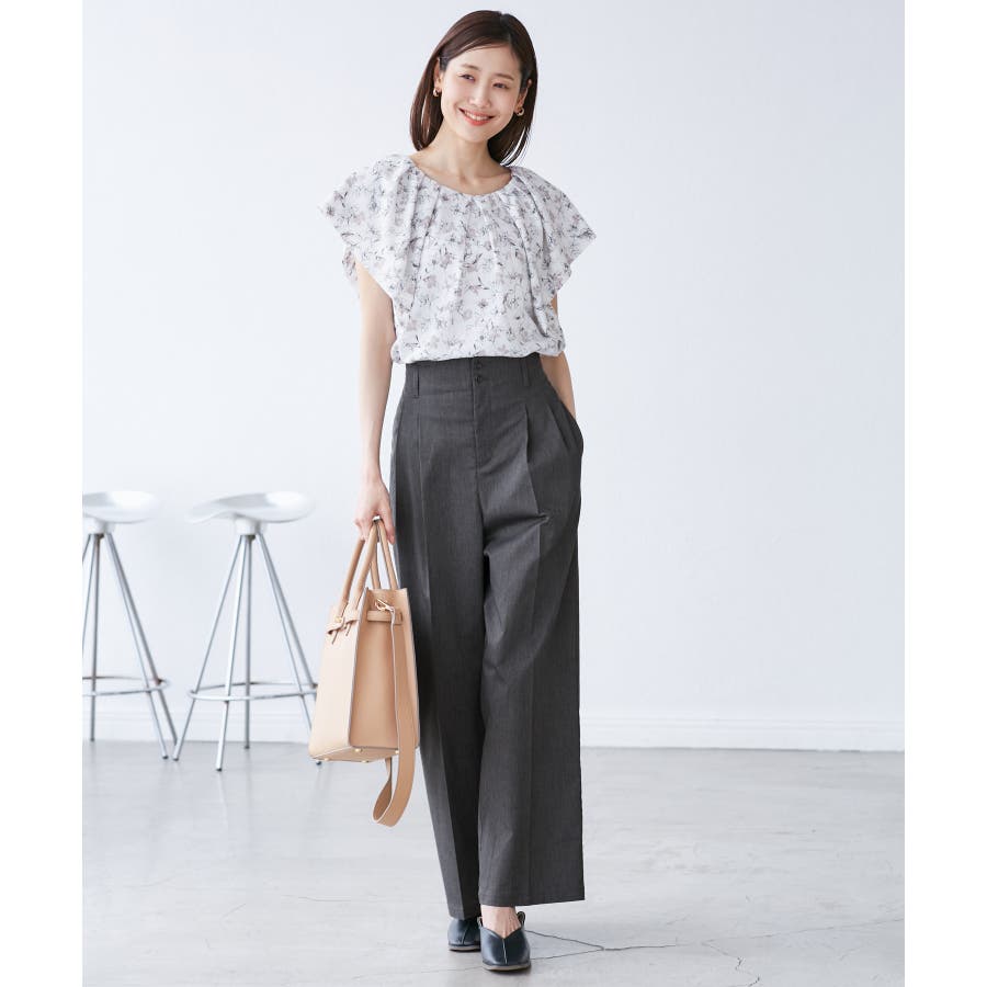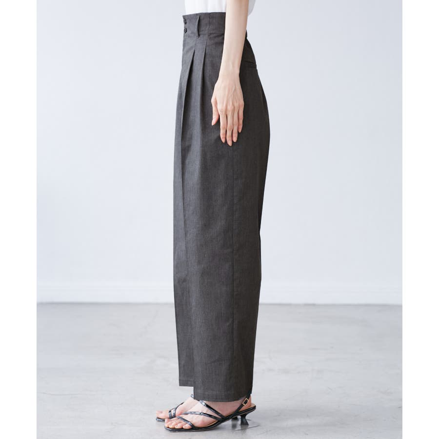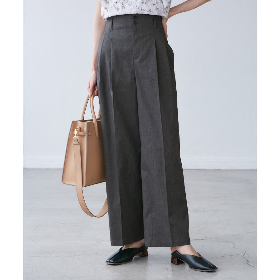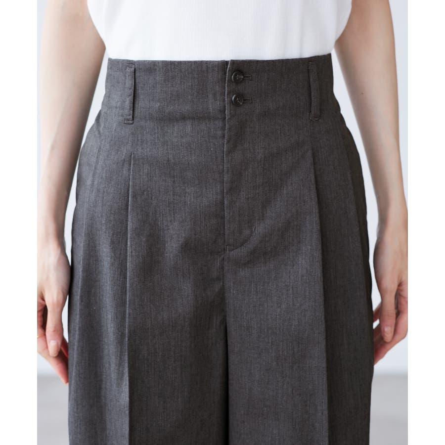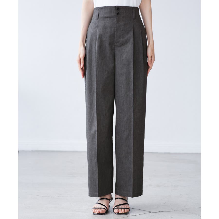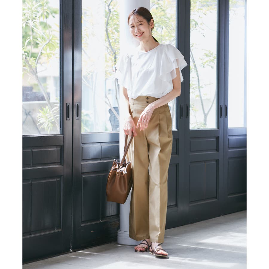 ・ハイウエストでアクセントにもなる小さめの二つボタンがこだわり。