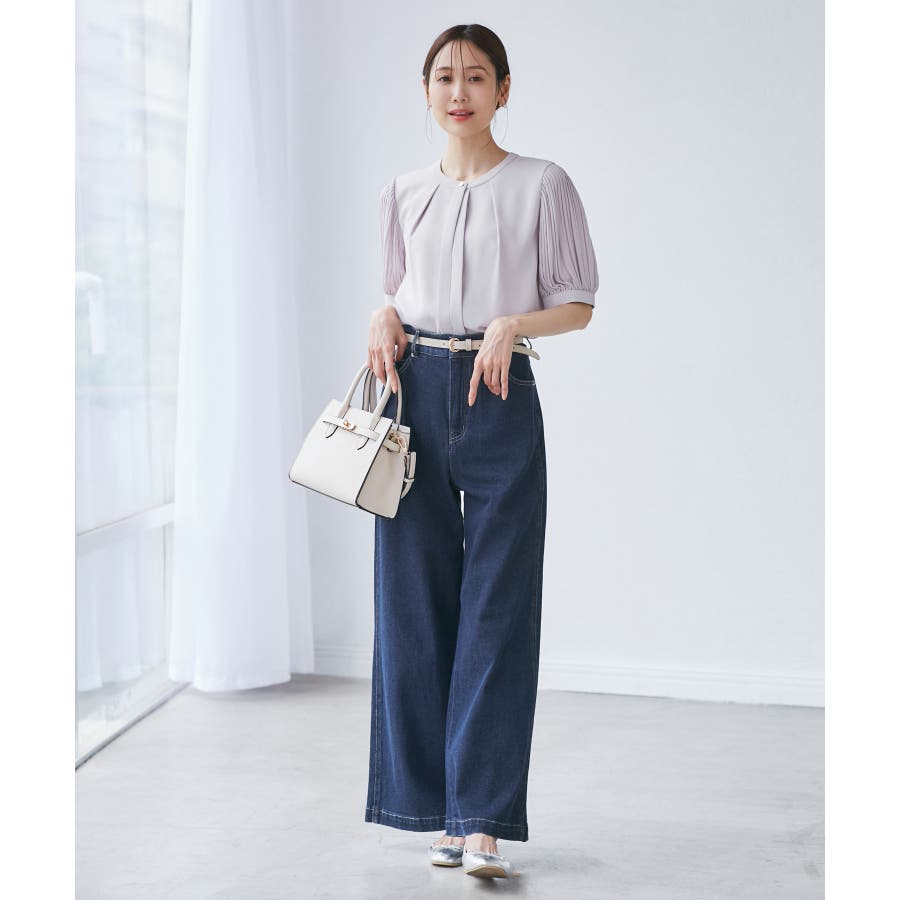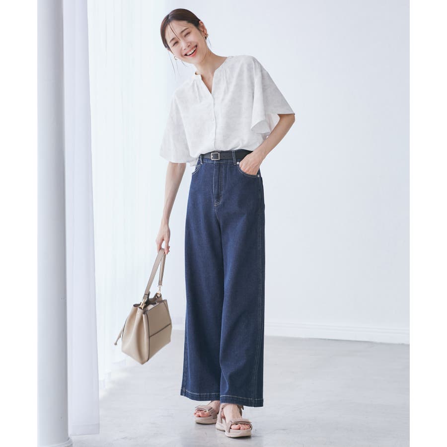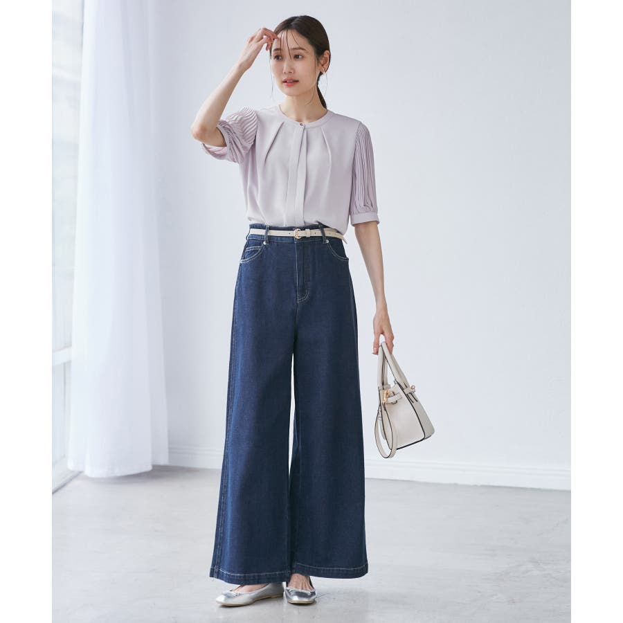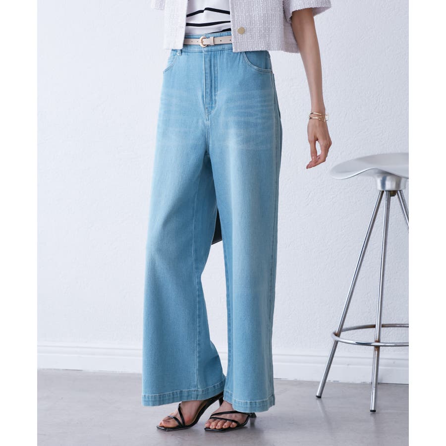 【ウエスト革命デニム】ウエストシェイプデニムワイドパンツ