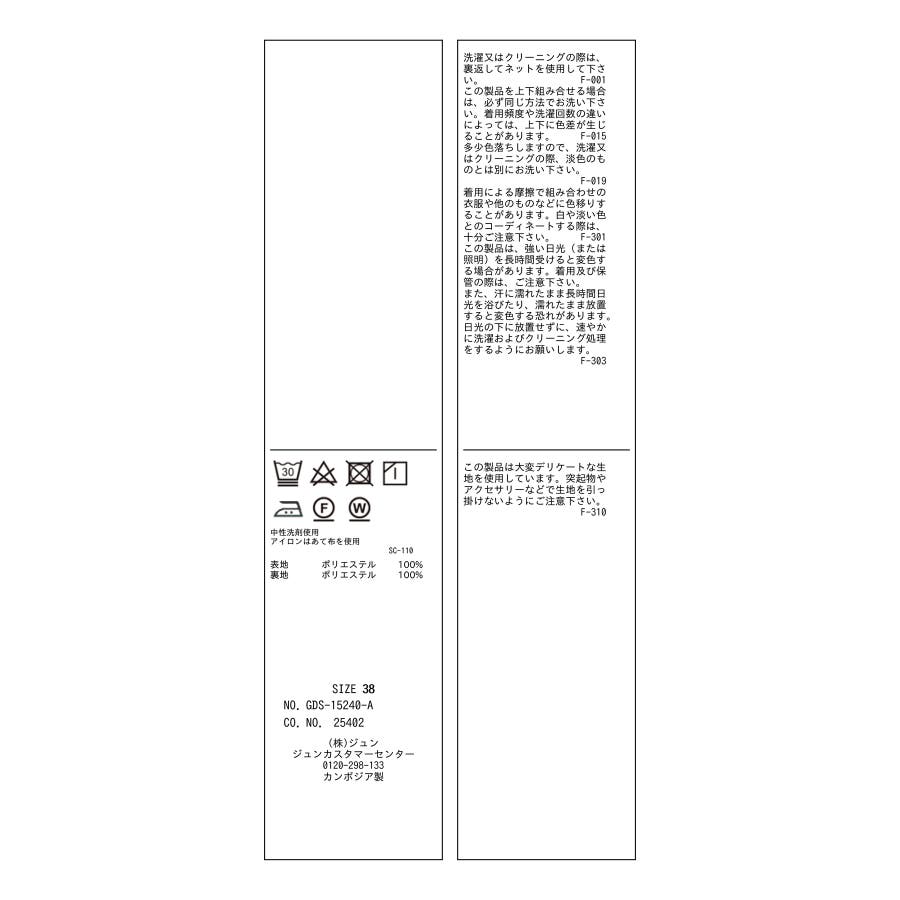 【洗濯表記】洗濯機|漂白不可|タンブル乾燥不可|自然乾燥|アイロン仕上げ可|ドライ可|ウエットクリーニング可