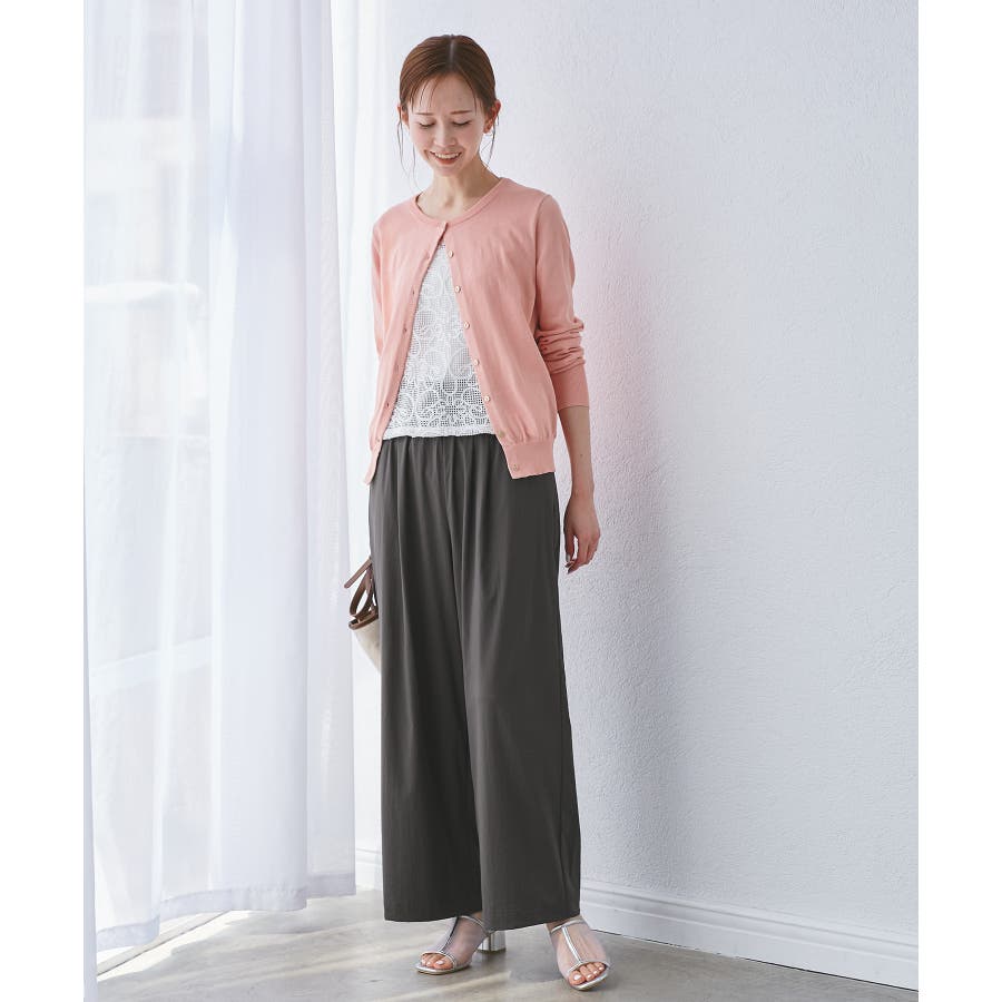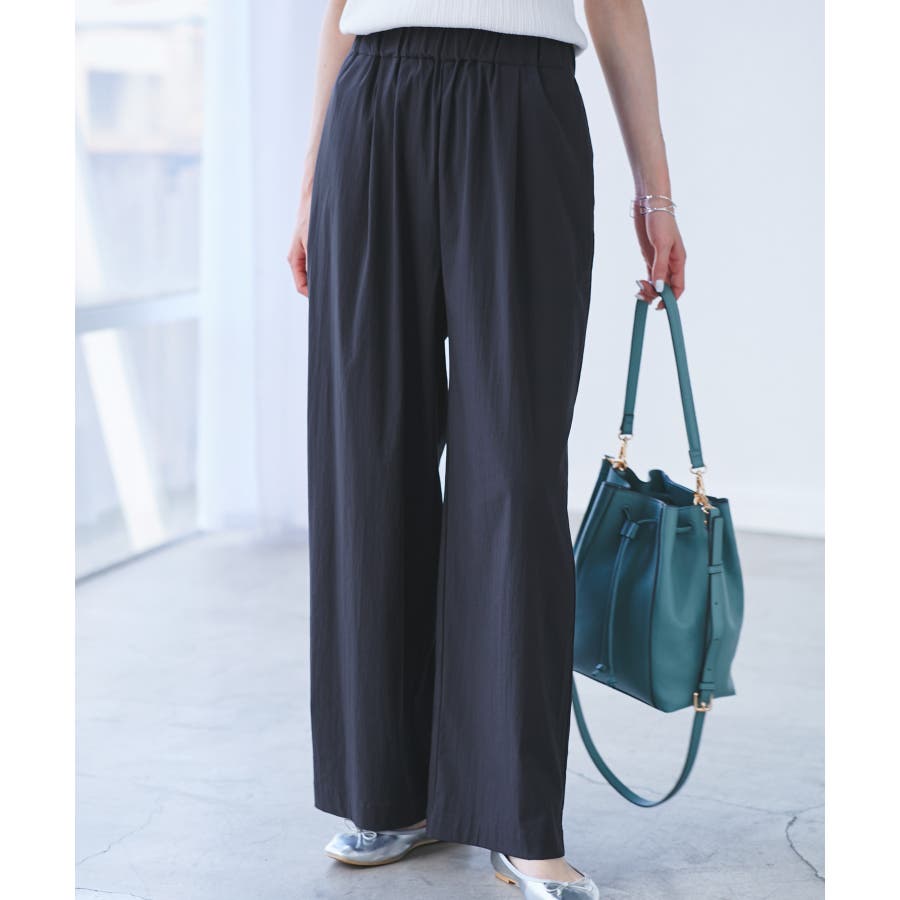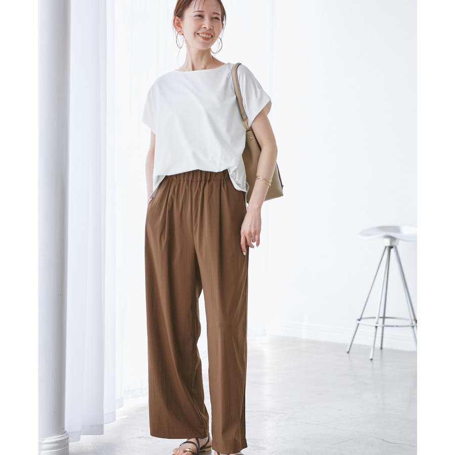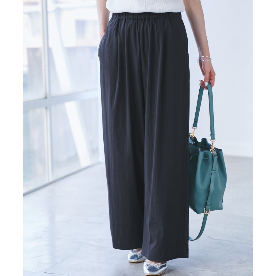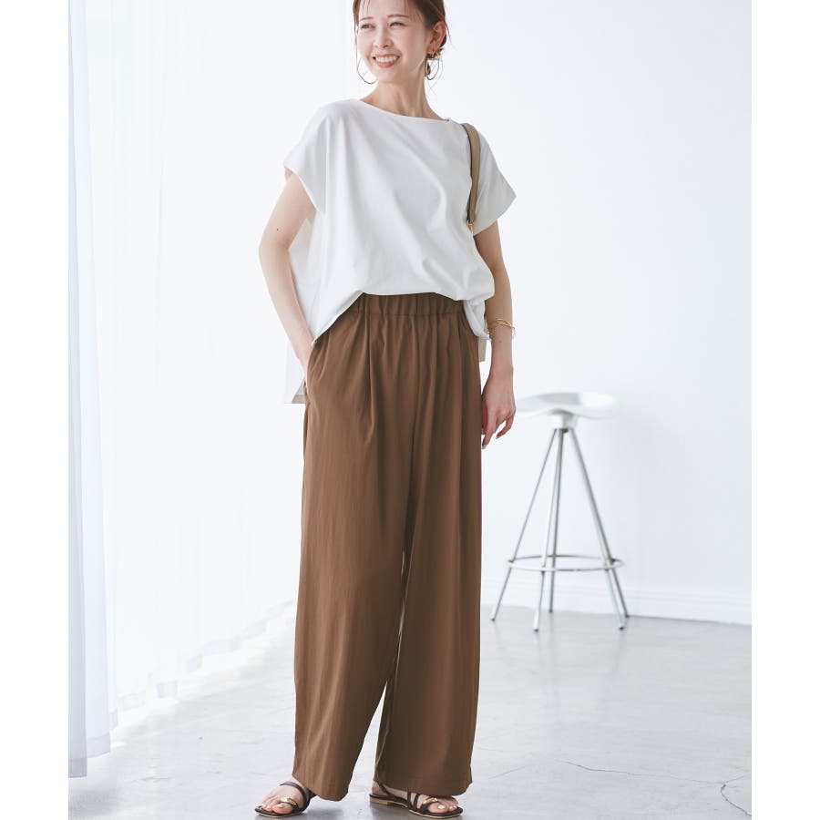 肌離れしてさらっとして着やすいイージーワイドパンツです。