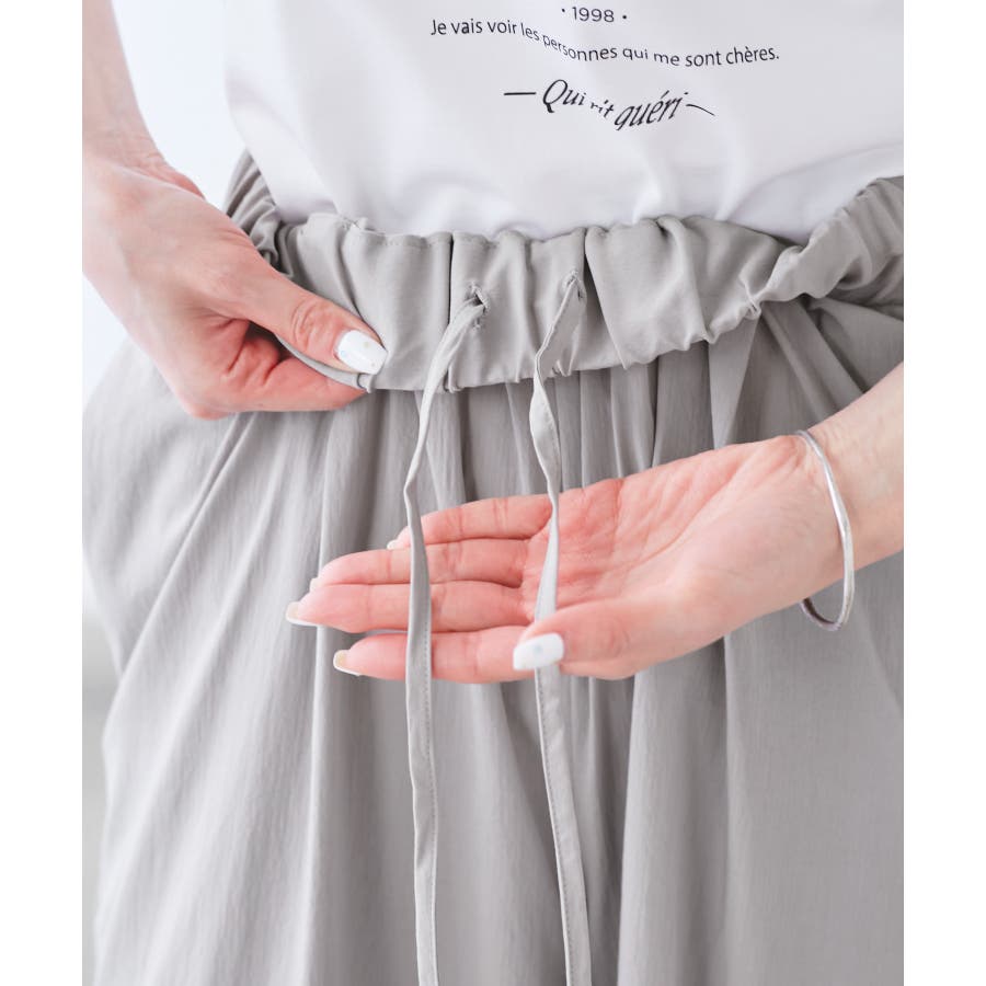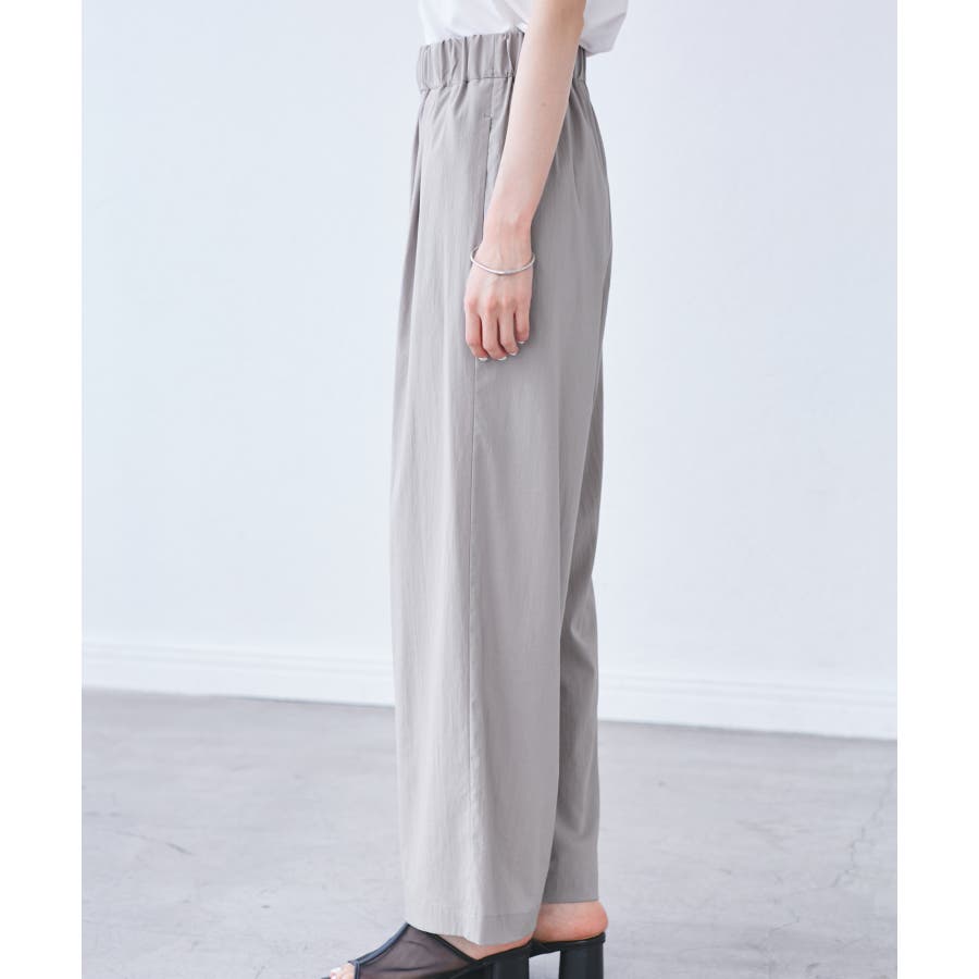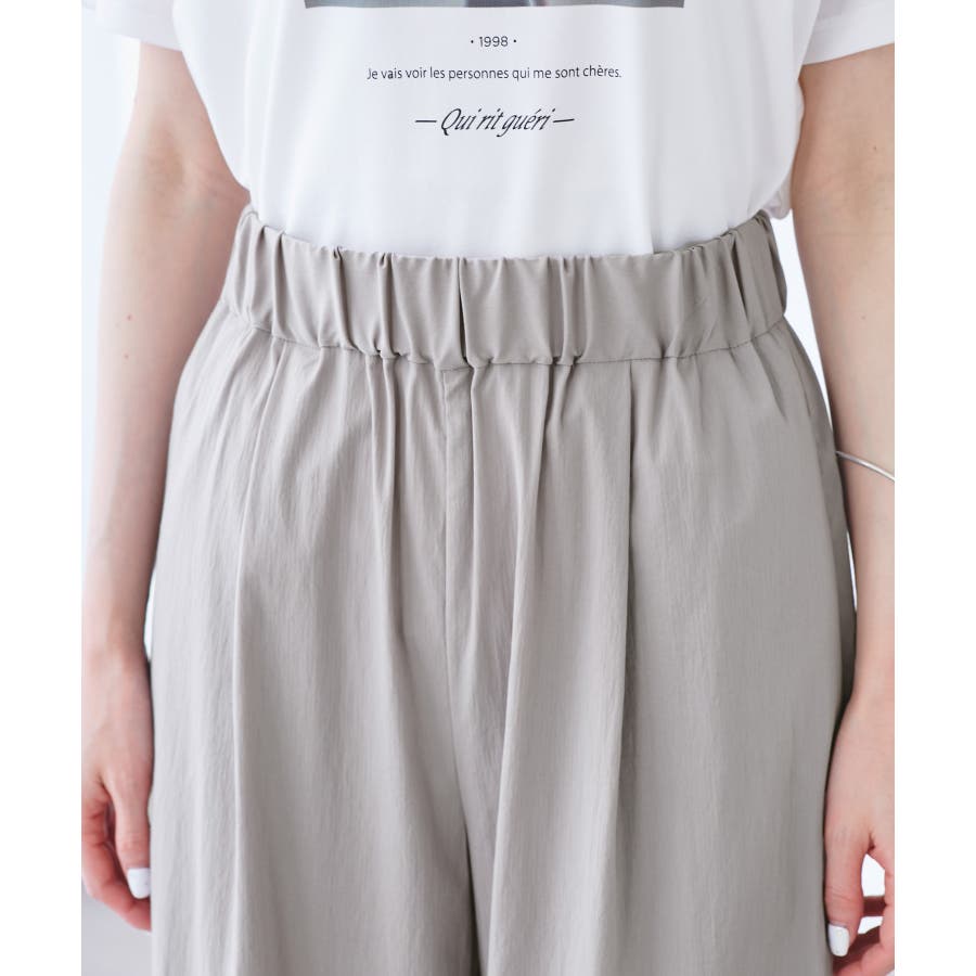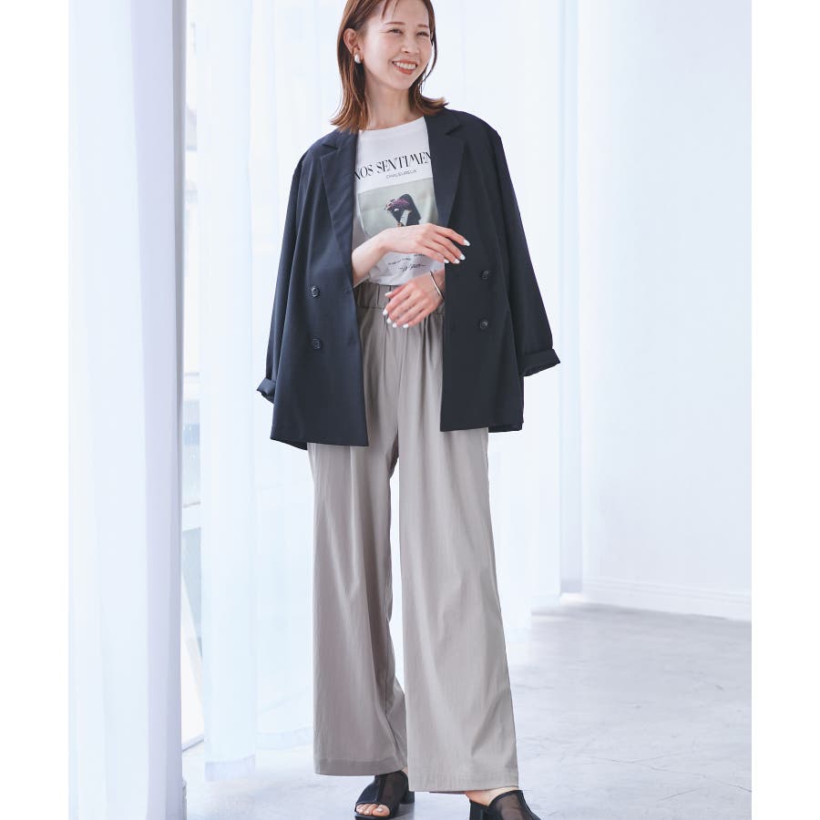 落ち感のある素材なので、ワイドパンツですがスッキリ着ていただけます。
