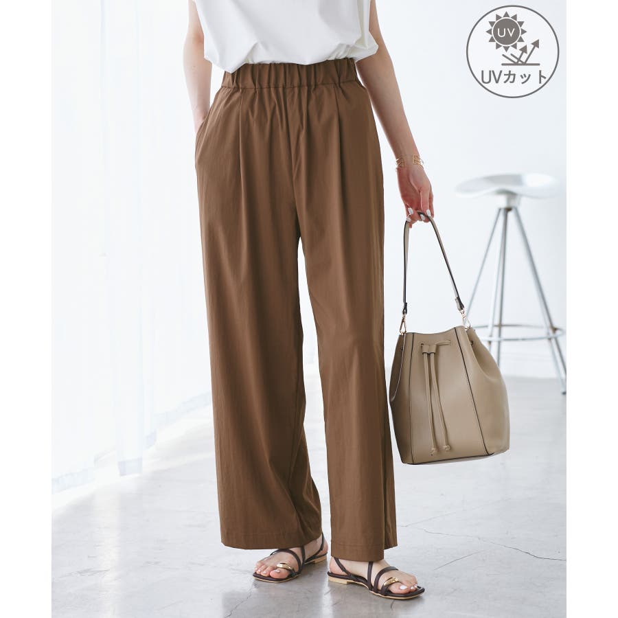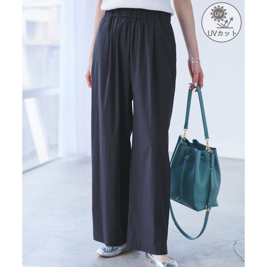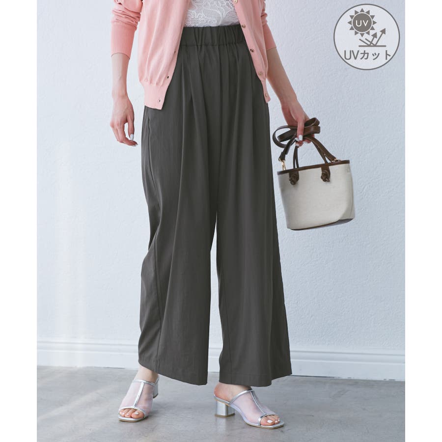 【UVカット】レーヨンナイロンイージーワイドパンツ