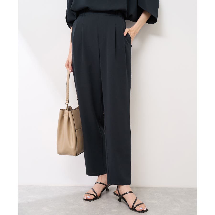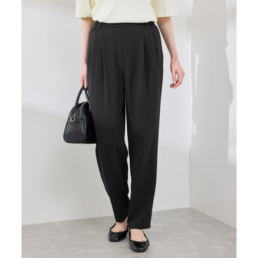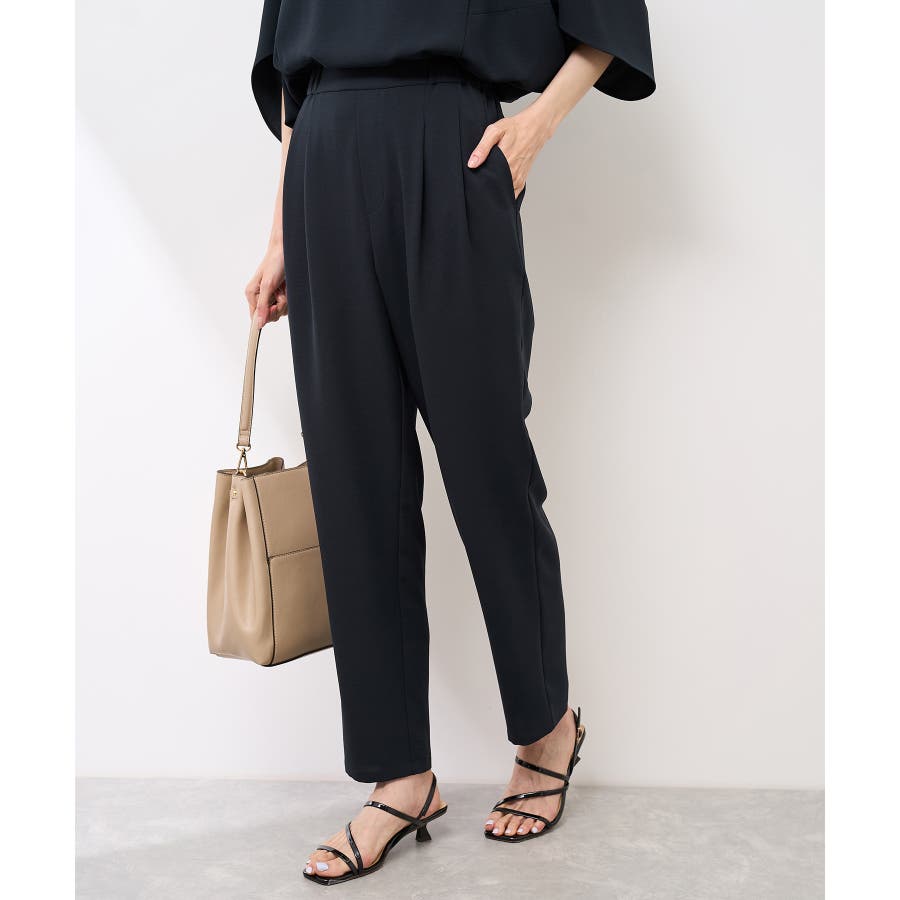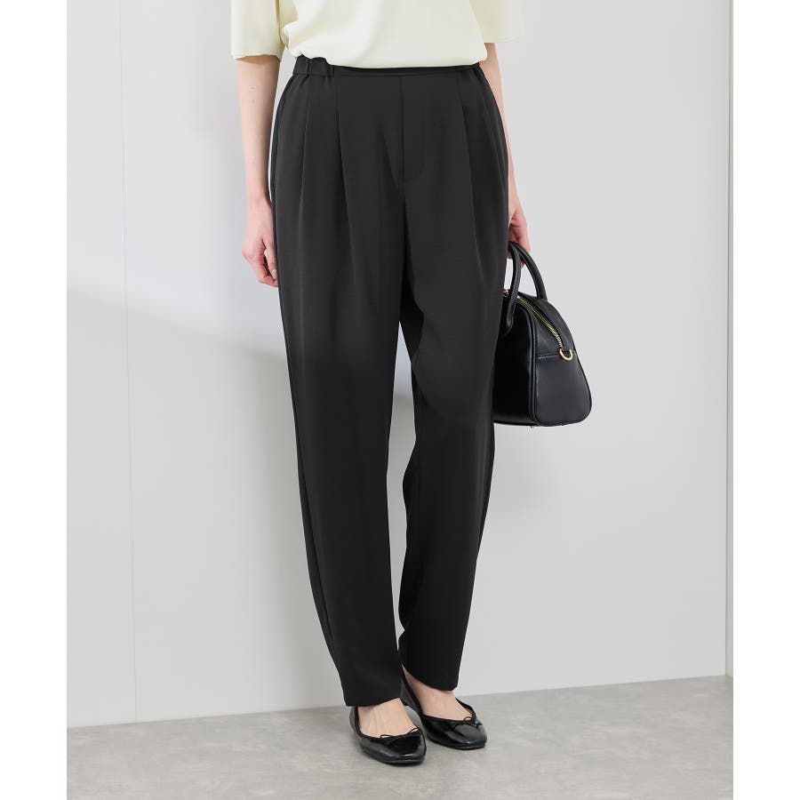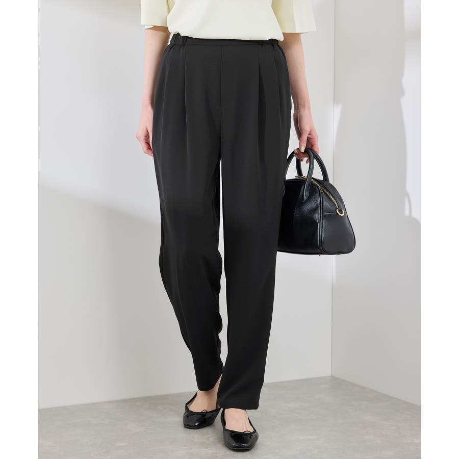 ・ウエストゴムのプルオンタイプで、着脱も着心地も楽ちんなきれいめ見えテーパードパンツ。