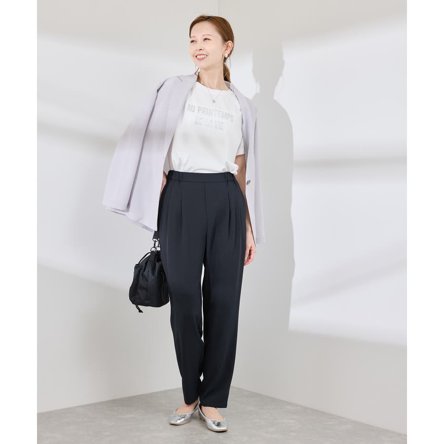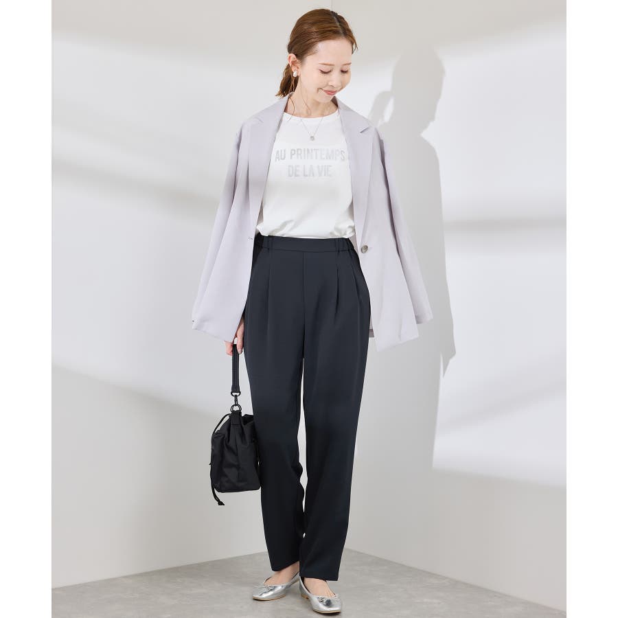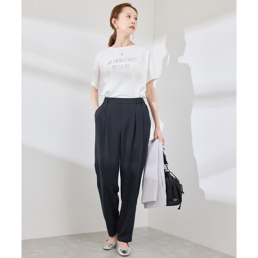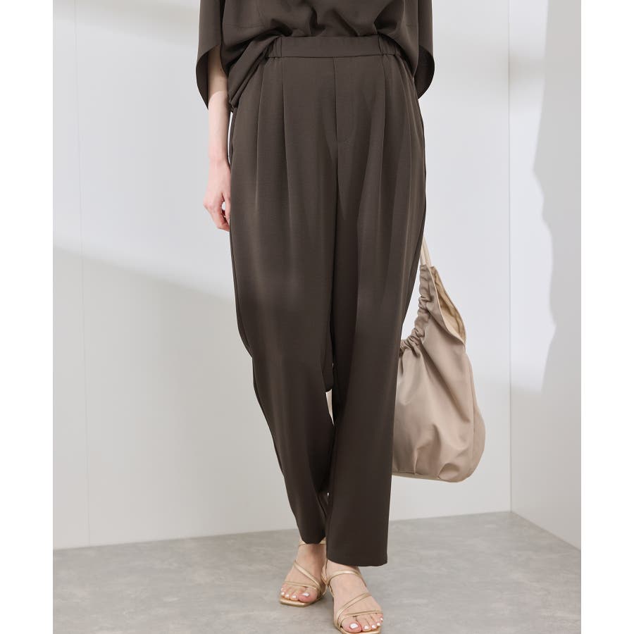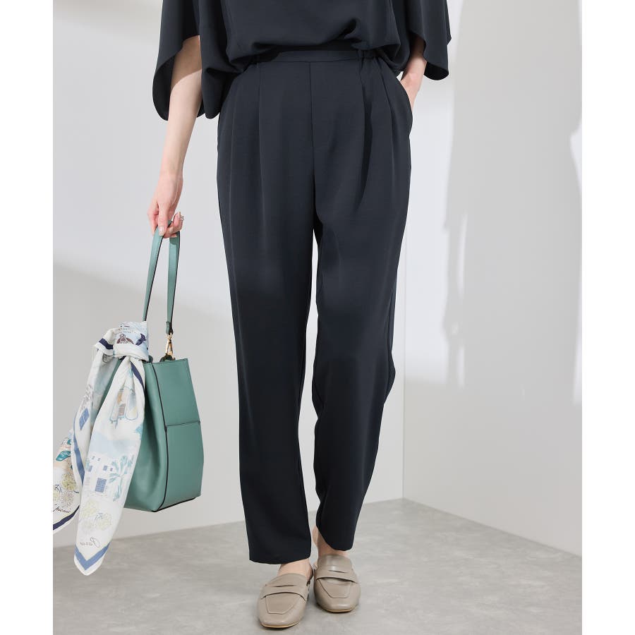 ・ウエストゴムのプルオンタイプで、着脱も着心地も楽ちんなきれいめ見えテーパードパンツ。