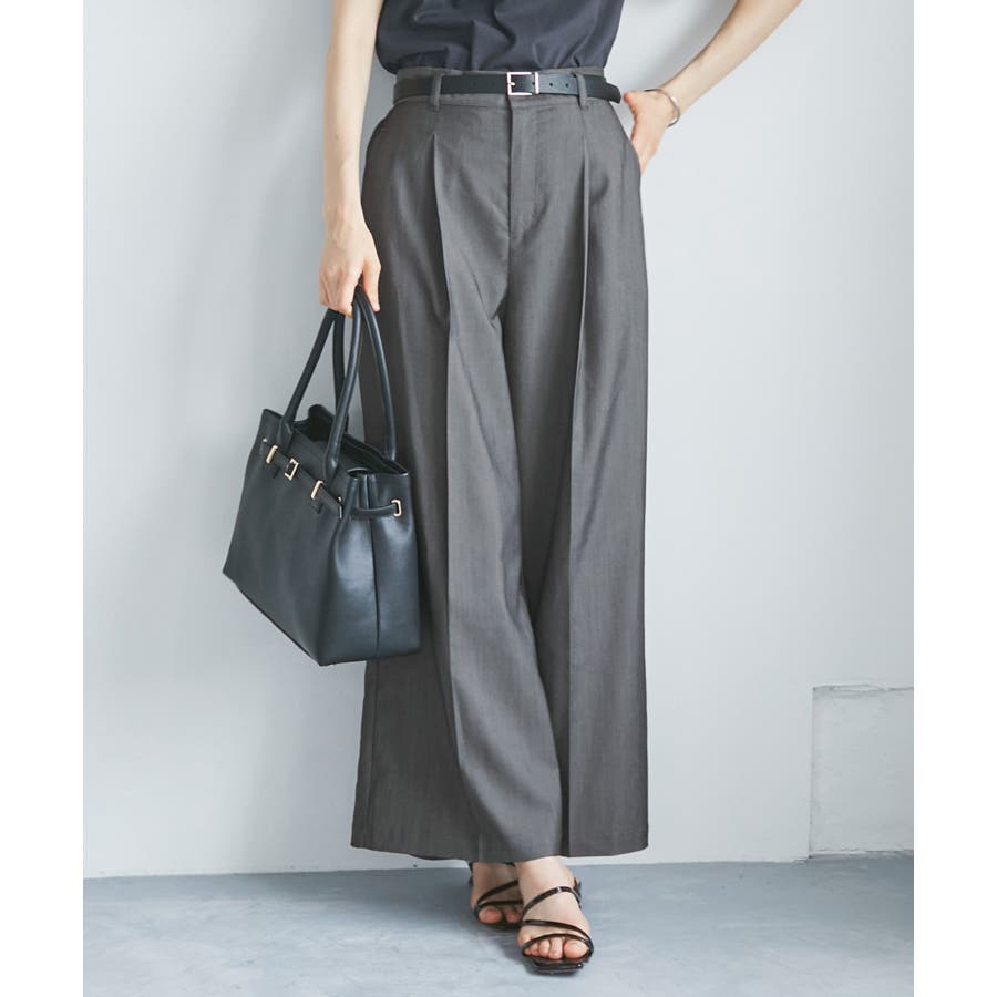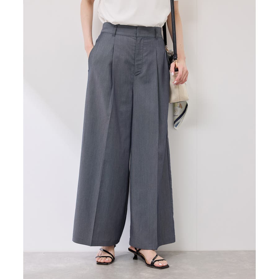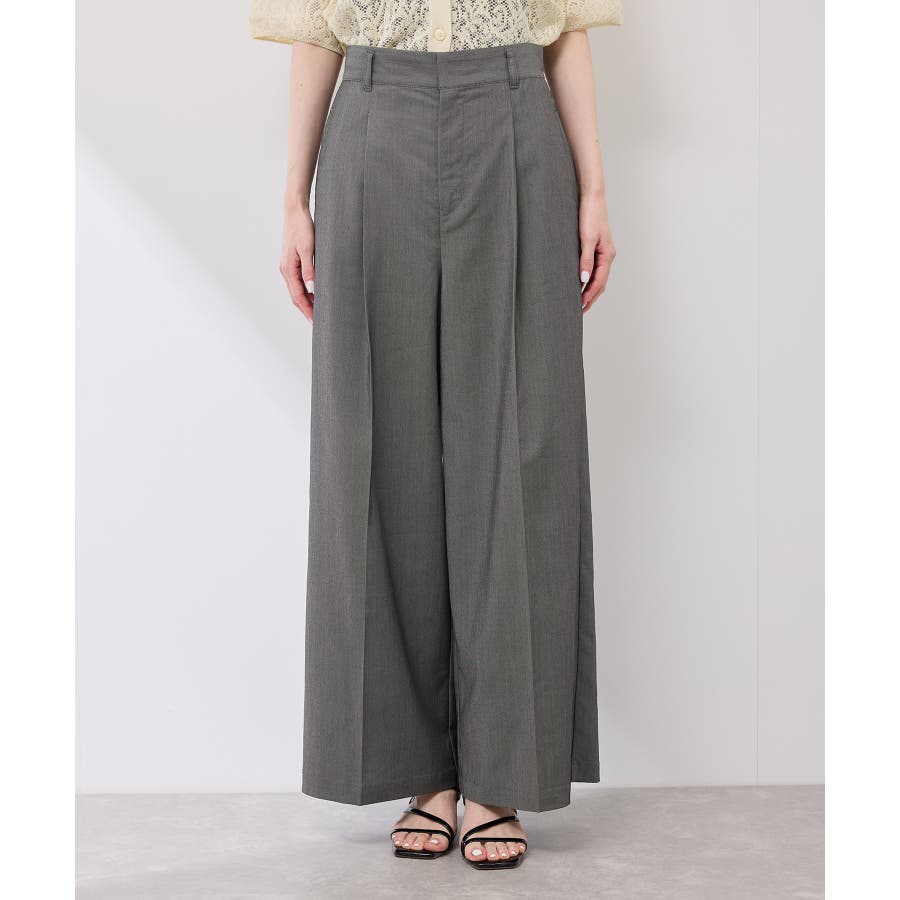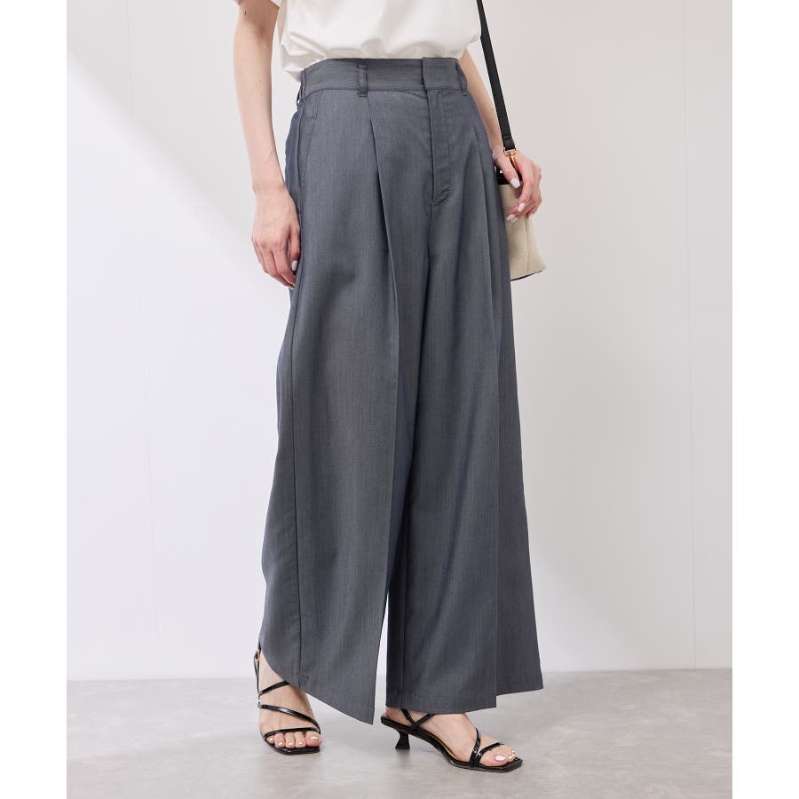 ・ウエストタックデザインのワイドパンツ。