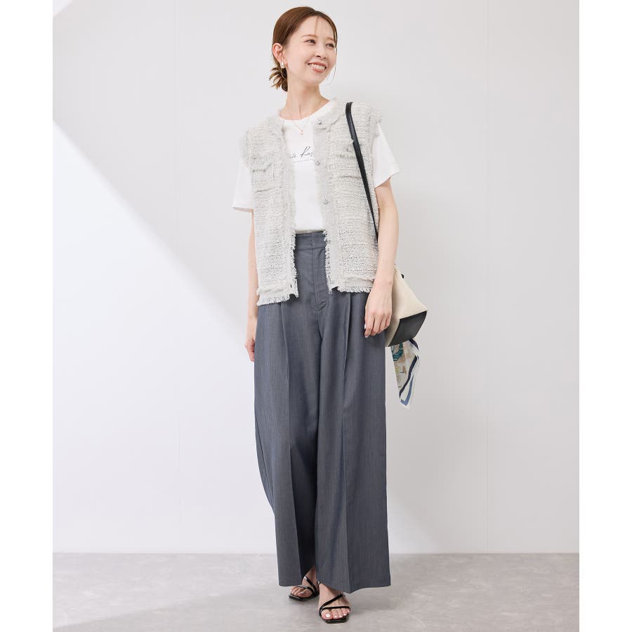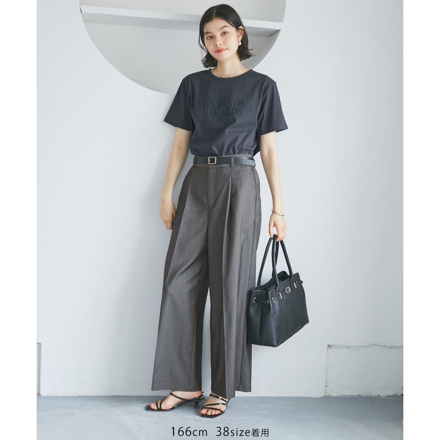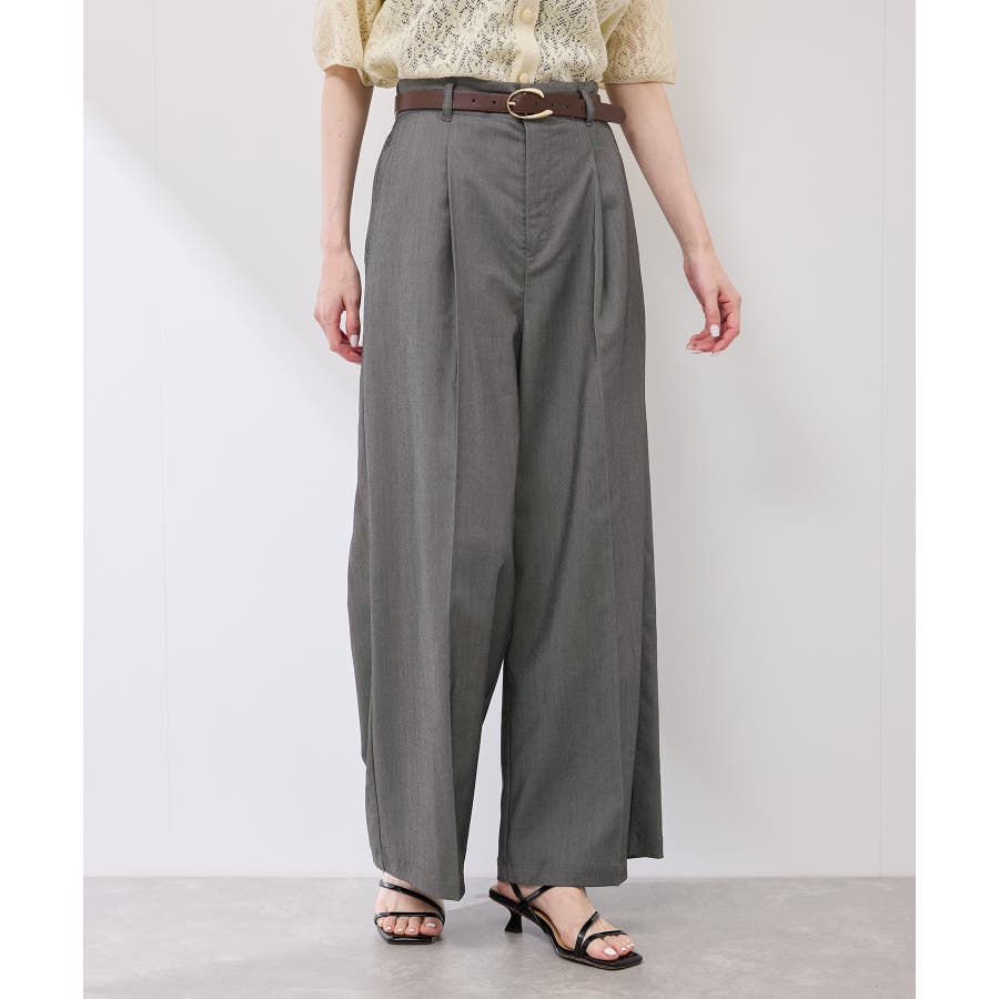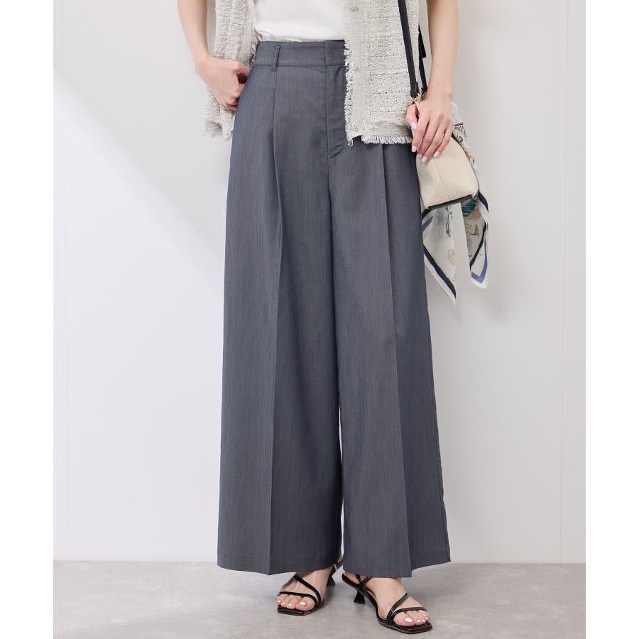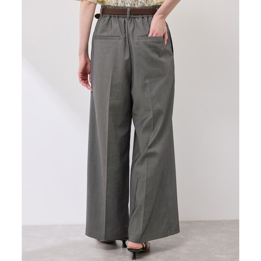 ・ウエストタックデザインのワイドパンツ。