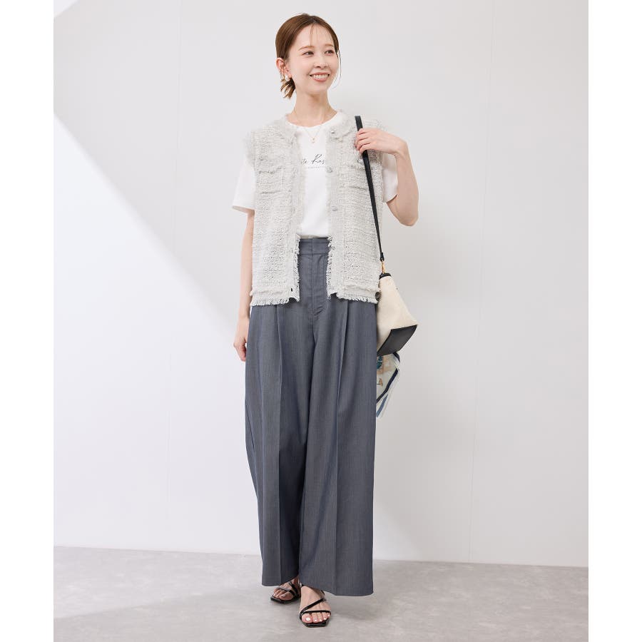 ・GDK15110ツイードライクスリーブレスジレカーデ