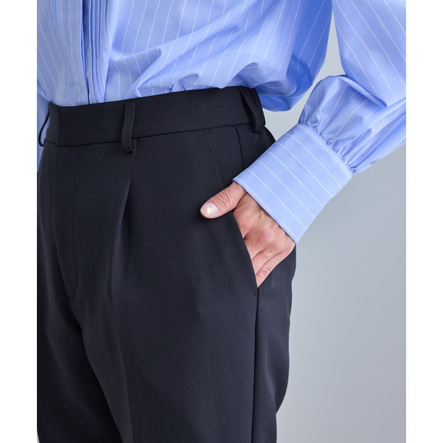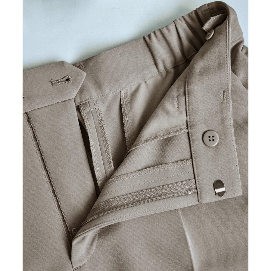 ・フロントタックで腰まわりに程よいゆとりを持たせ、リラクシーな穿き心地。