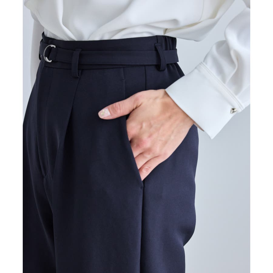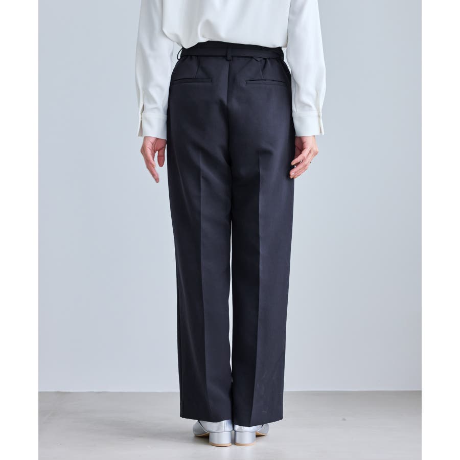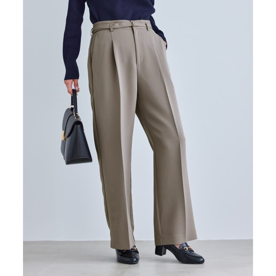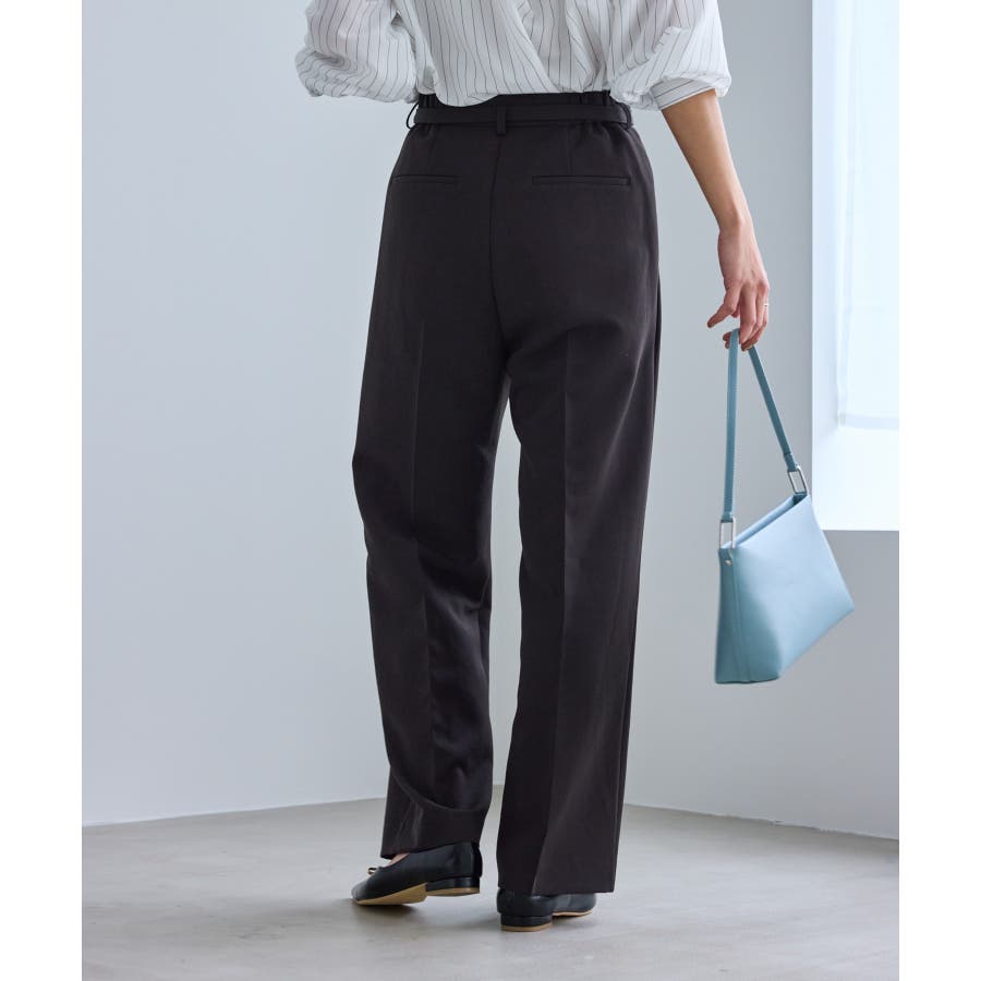 ・幅広ベルトラインでウエストをすっきり見せ、トップスインも様になるデザイン。