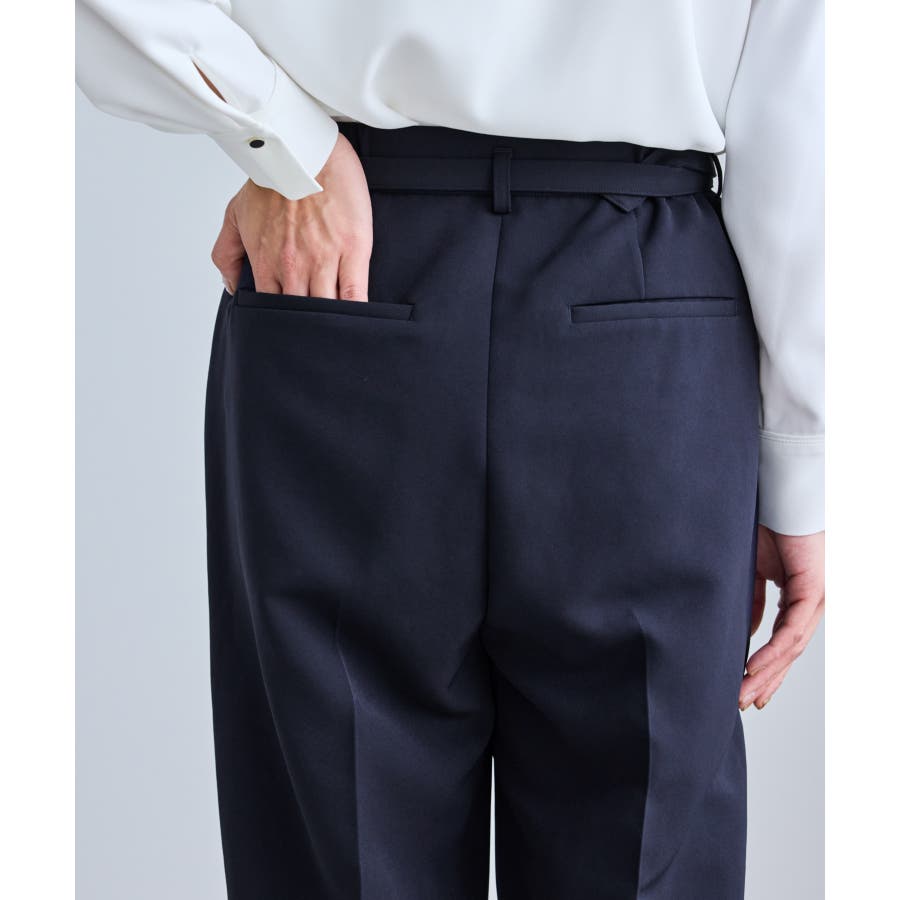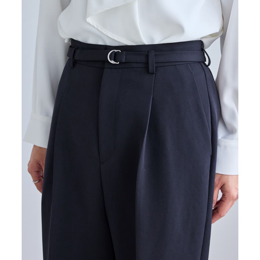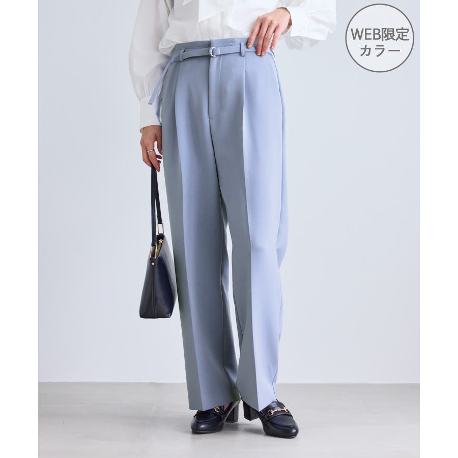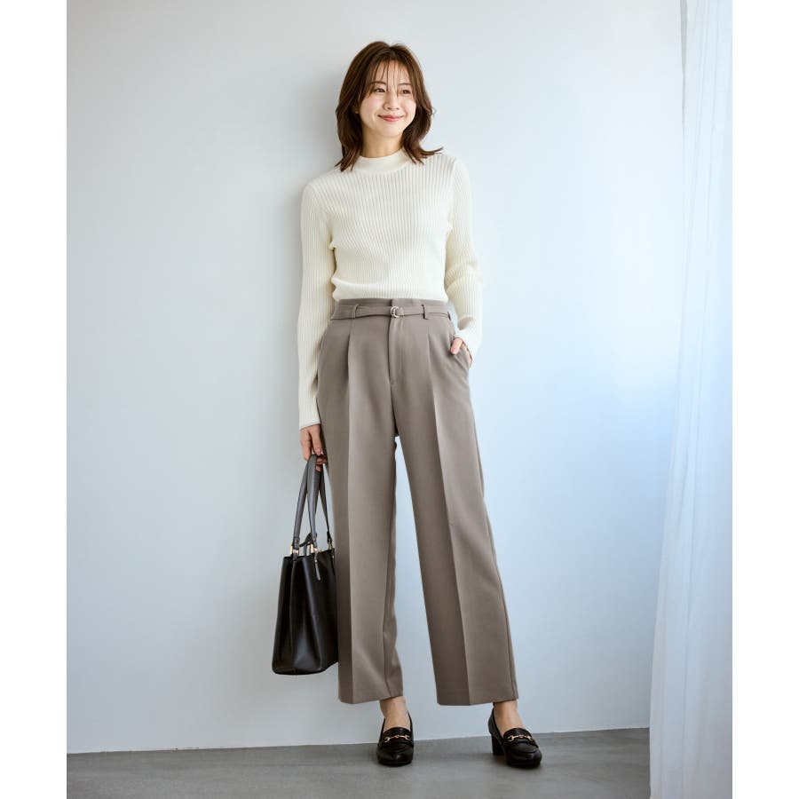 ・幅広ベルトラインでウエストをすっきり見せ、トップスインも様になるデザイン。