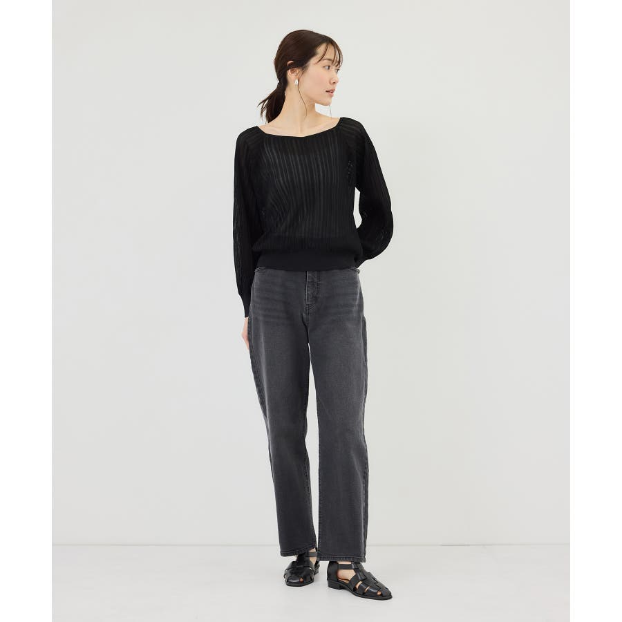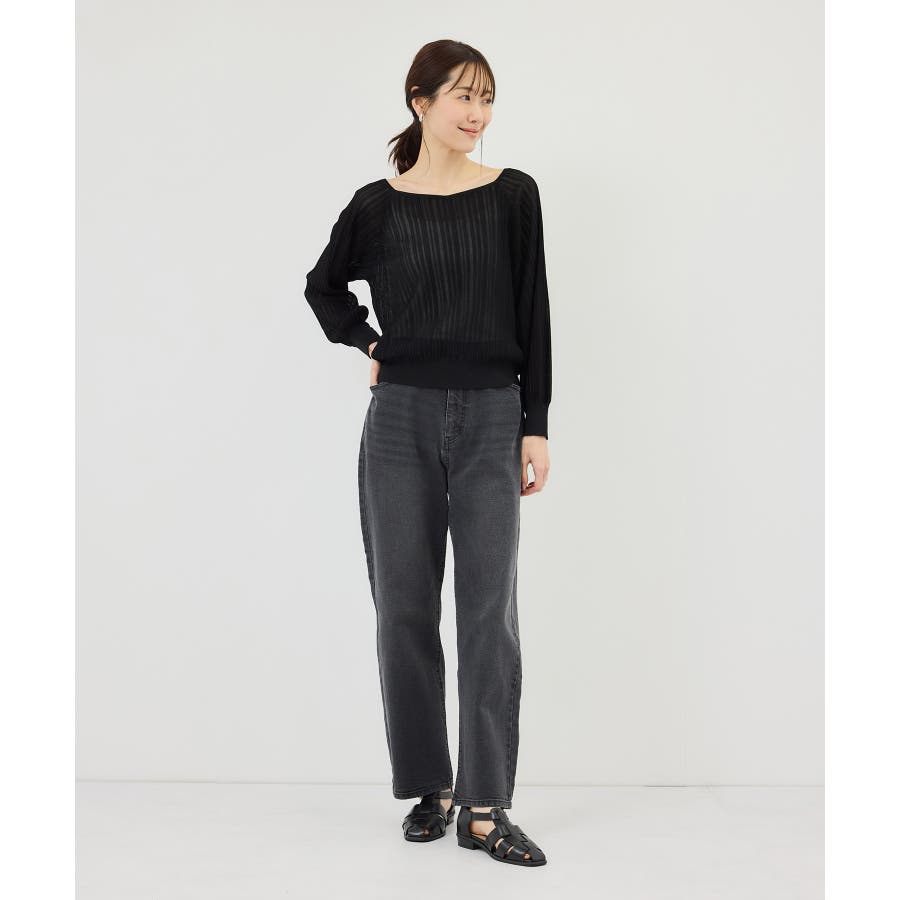 ・レイヤード風ヘンリーネックリブニット(品番:GDM16180)とのシンプルな着こなしもおすすめ。