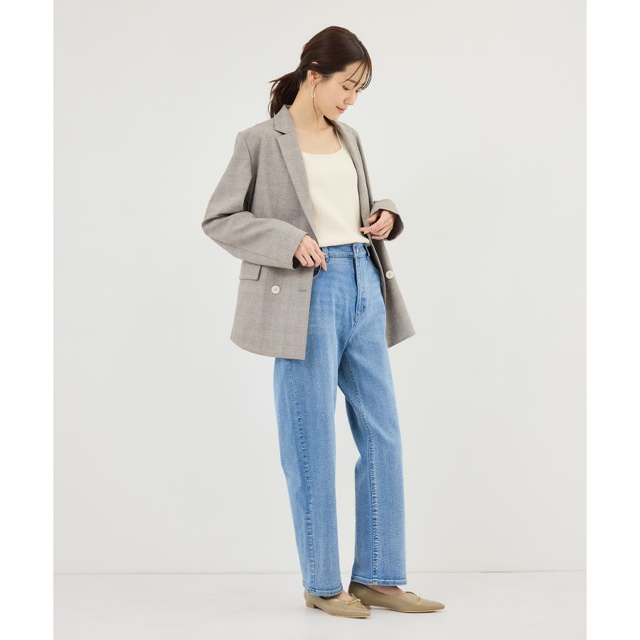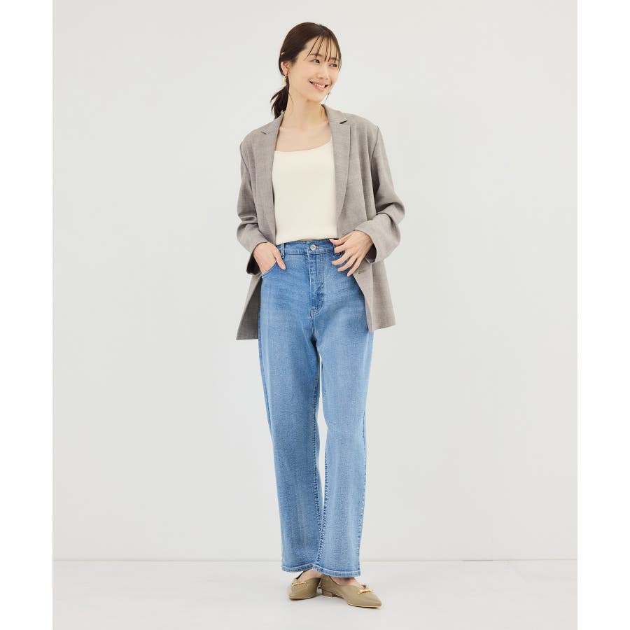 ・股下をやや長めに、裾幅を少しワイドにすることで脚長効果をプラス。