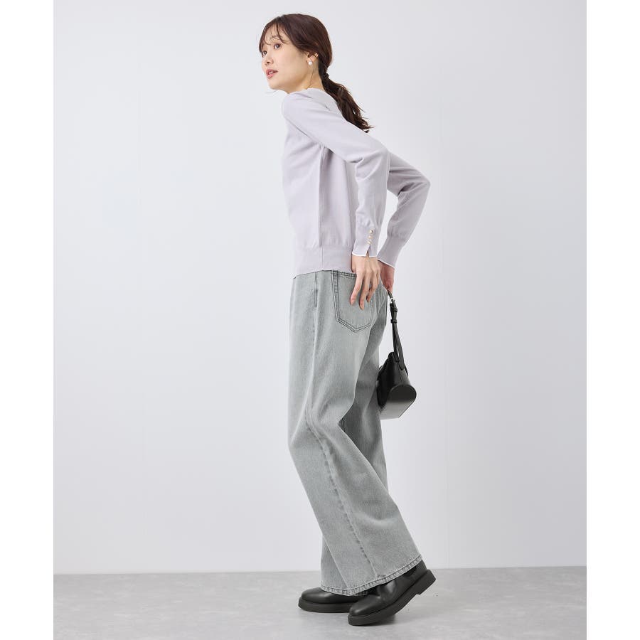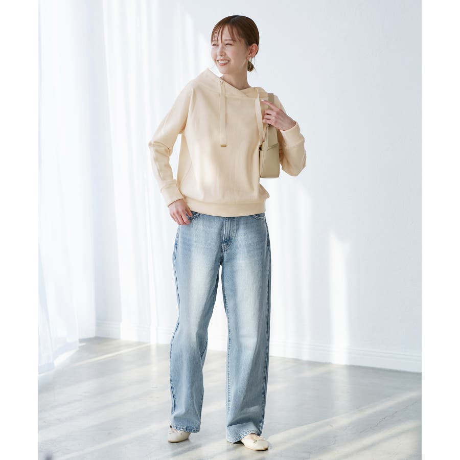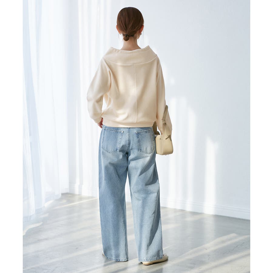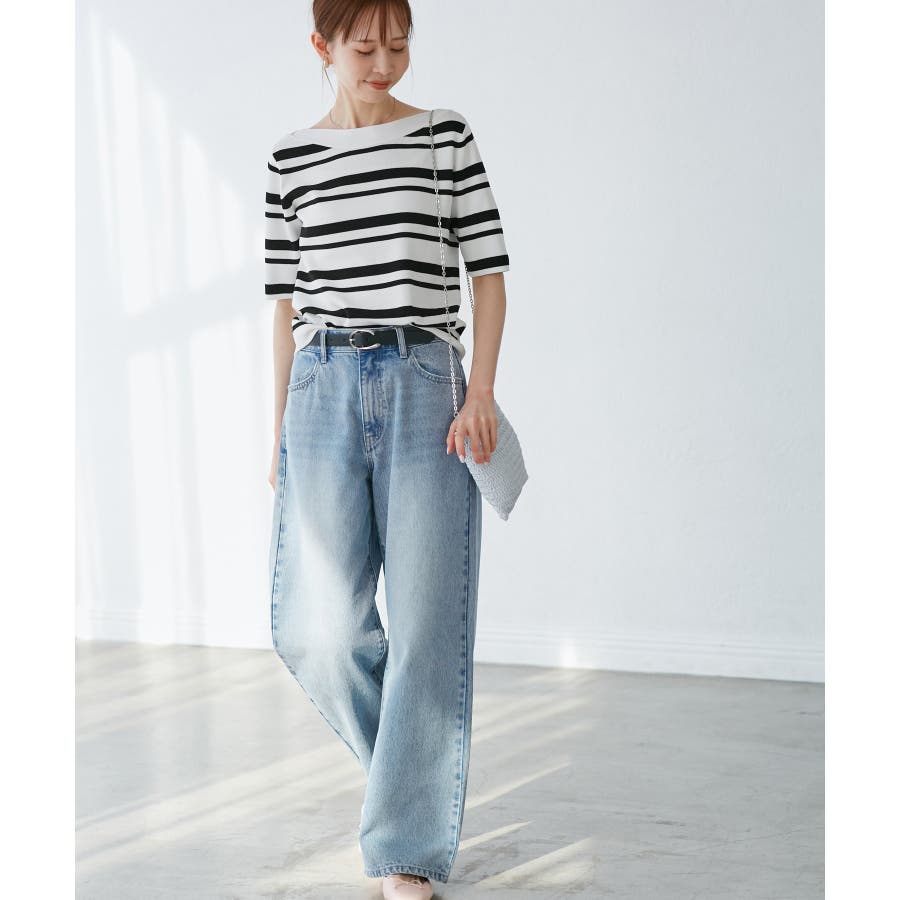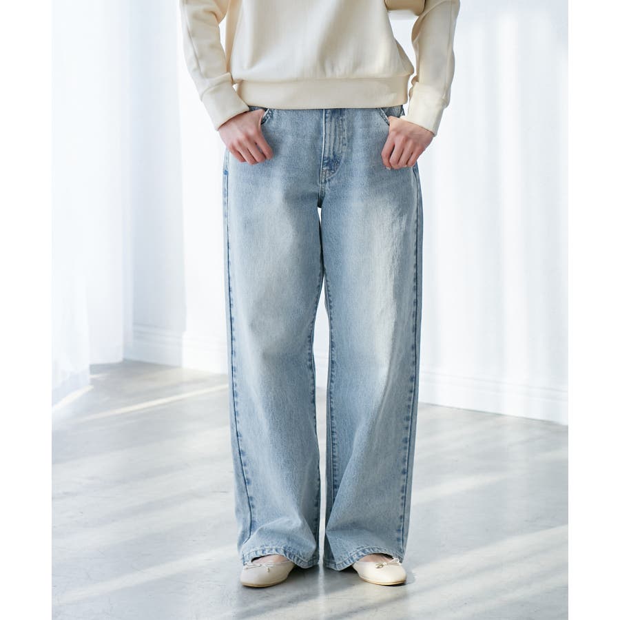 ・ストレートラインのワイドデニムパンツ。