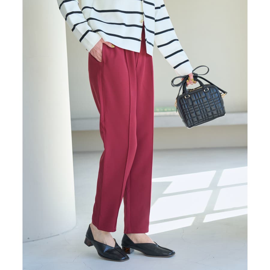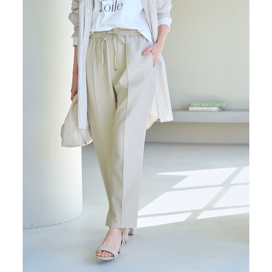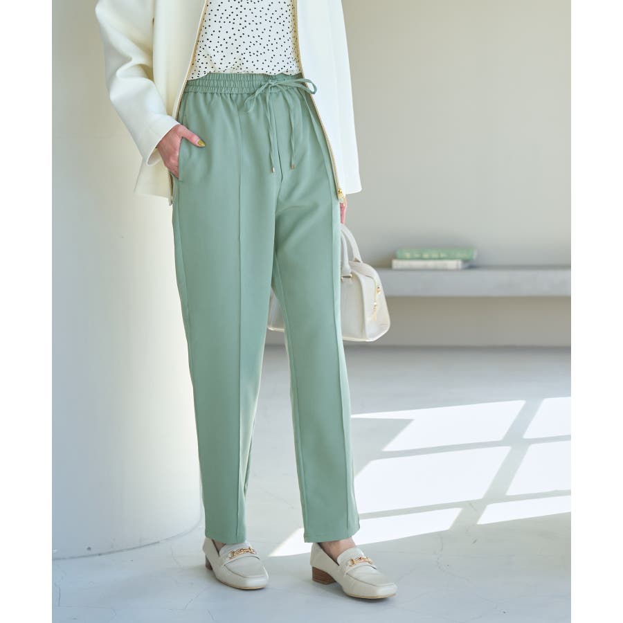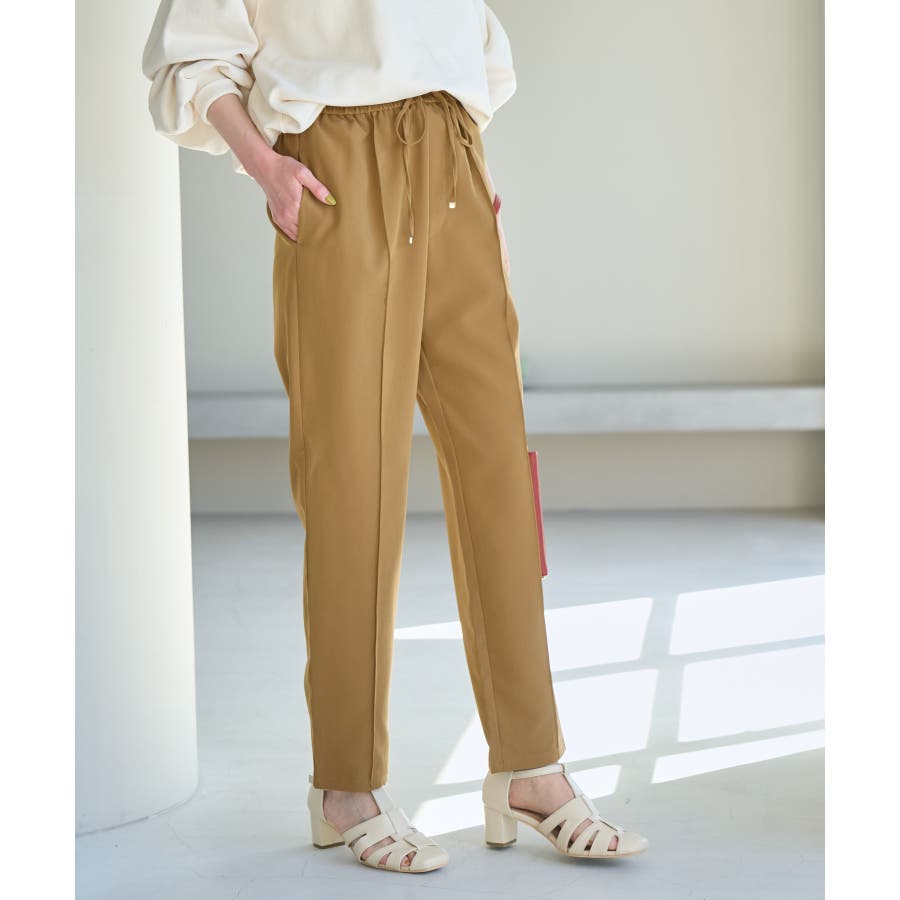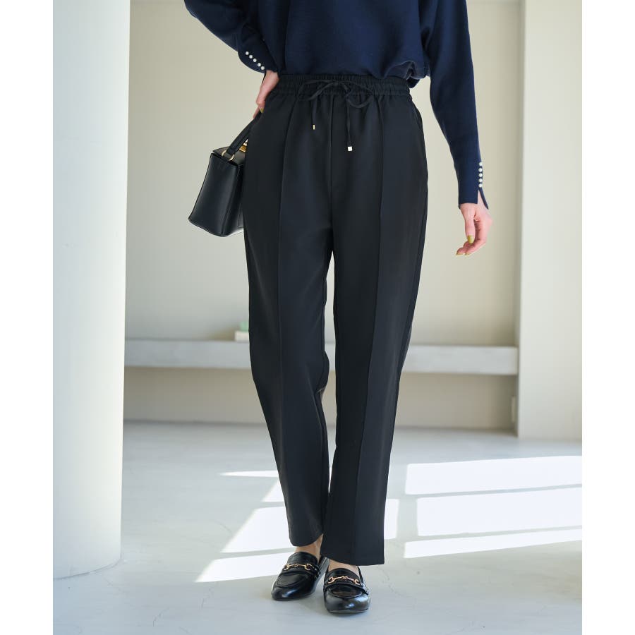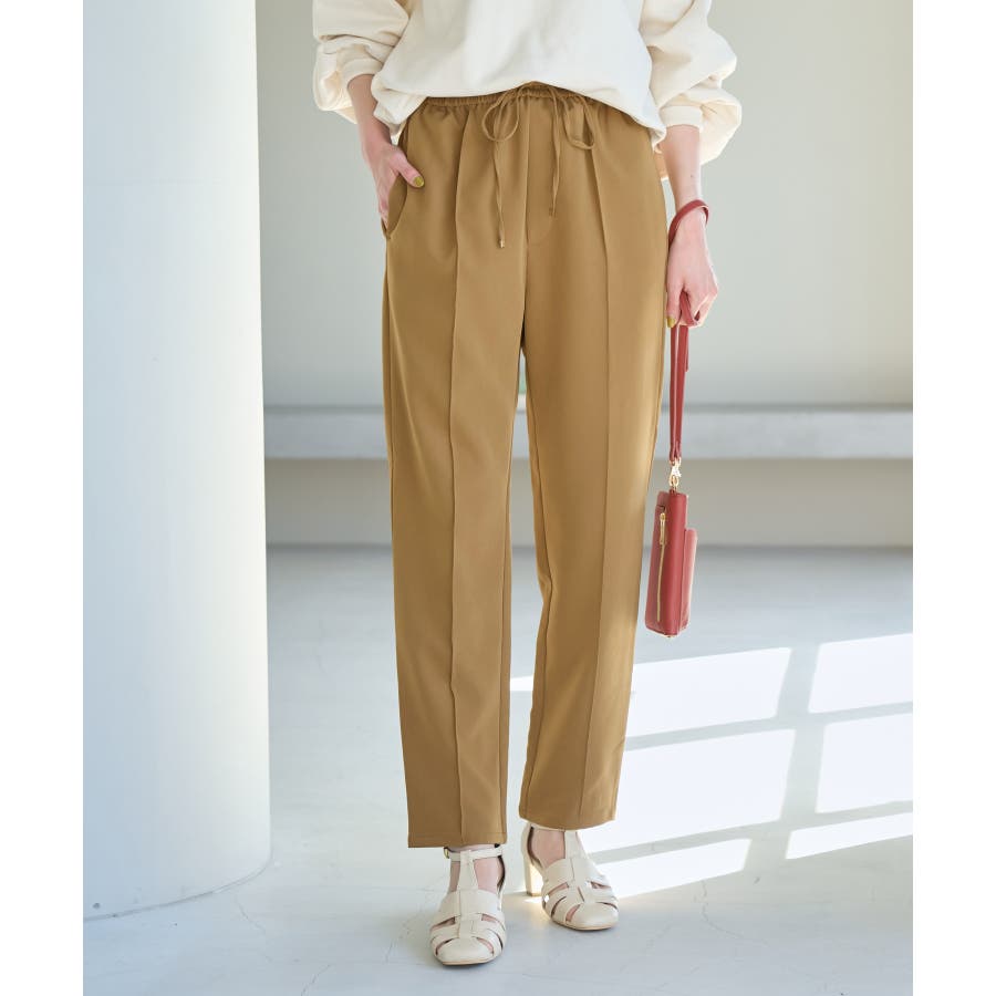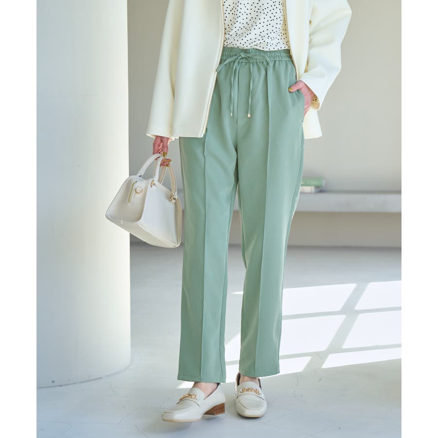 大人気ステファニージョガーパンツ(品番:GDS52020)が秋冬バージョンになって再登場! : 【素材感】 ・柔らかく伸縮性のある素材。 ・やや光沢感があるので、お仕事用にもぴったり。 【デザイン・シルエット】 ・脚のラインを拾いにくいストレートラインのジョグパンツ。 ・無駄な余りが出ず、すっきり決まるストレートライン。 ・ラクチンなギャザーウエストで、ドロストで調節が可能。 【カラー】 ・種類豊富な5色展開。 ・グレー系(09)はベージュみがかったグレージュのような色味になります。 【スタイリングポイント】 ・シャツにローファーを合わせるとトラッドなスタイルが完成。 ・パーカとスニーカーでカジュアルダウンするのも一押し。 ----------------------------- 裏地:なし 透け感:なし 伸縮性:あり 生地感・厚さ:普通 ポケット:あり(前2つ、後ろ2つ) ウエスト:ゴム 季節:春~秋 ----------------------------- ※撮影時の光、お使いのモニター環境によって色の見え方が違う場合がございます。 ※モデル身長:165cm 着用サイズ:38 : 【スタッフ着用レビュー/サイズ感】 ・身長151cm (普段の着用サイズ:36 着用サイズ:36) 程よいゆとりがあるので、体のラインを拾わずに着れます。 丈はくるぶしが隠れるくらいでフラットシューズでも履けます。 ・身長157cm (普段の着用サイズ:36or38 着用サイズ:36) 全体的にやや細身のシルエットですが程よくゆとりはあります。丈はくるぶしが隠れるくらいでした。 ・身長162cm (普段の着用サイズ:38or40 着用サイズ:38) 普段40サイズが多いですが、ウエスト全てゴムなので38サイズでもストレスフリーで履けました。丈の長さもくるぶし下くらいでちょうど良かったです。 ・身長174cm (普段の着用サイズ:40 着用サイズ:40) 高身長でも丈が長めなのでバランス良く着こなせます。ウエストゴムですが、紐で縛れるのでウエストサイズの調整ができます。
