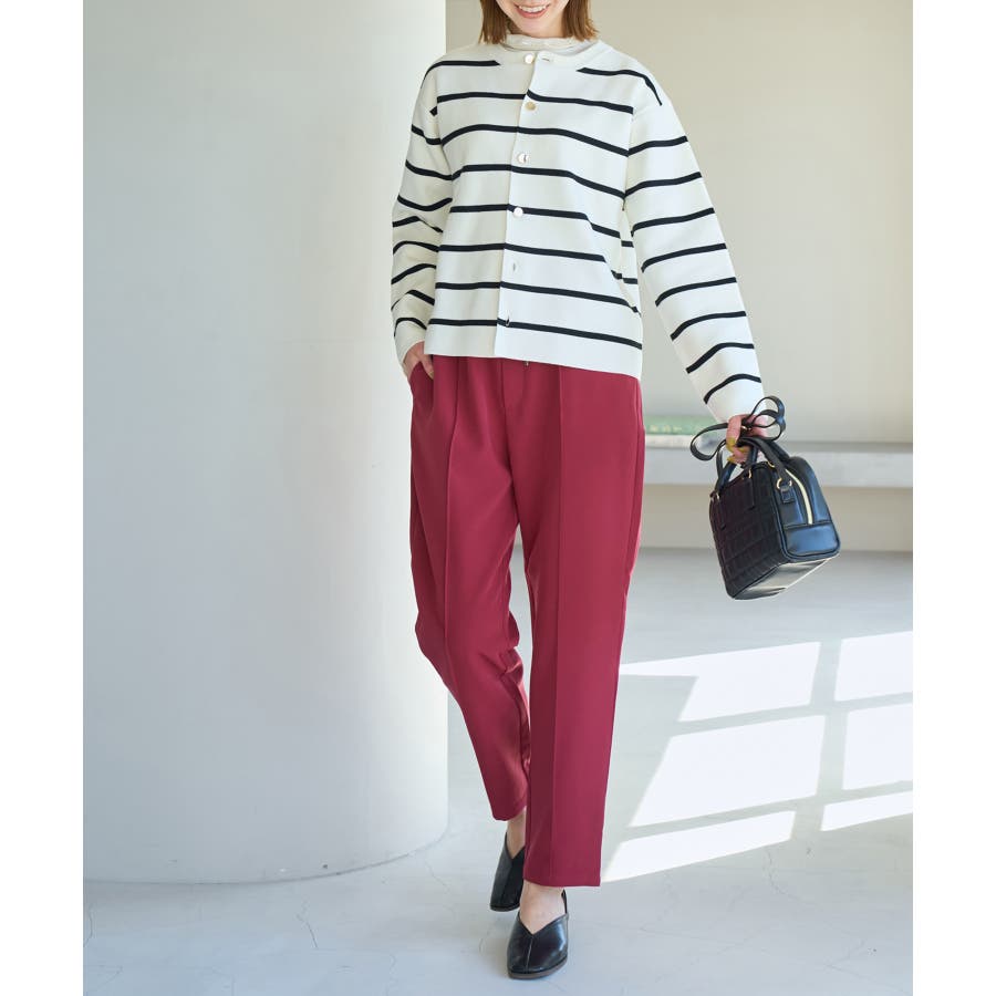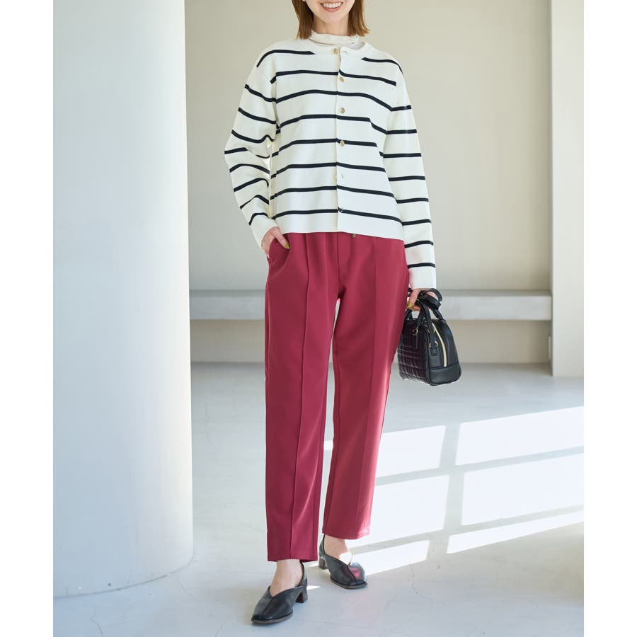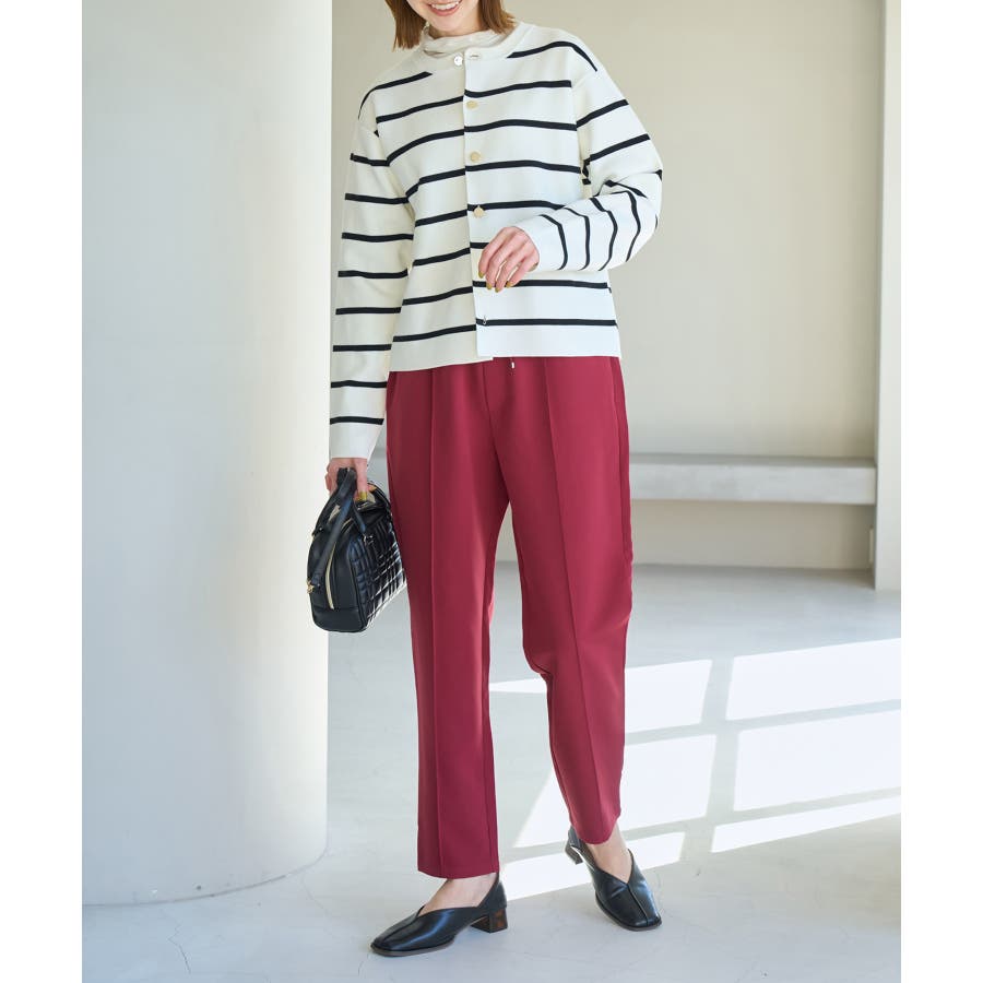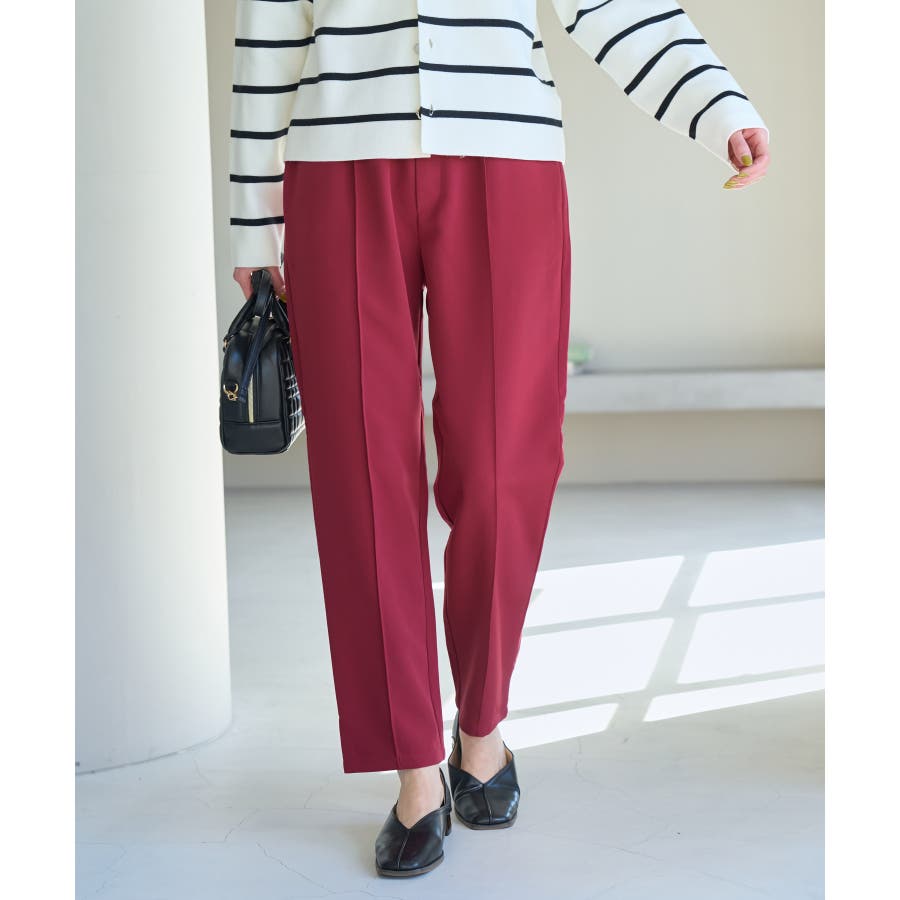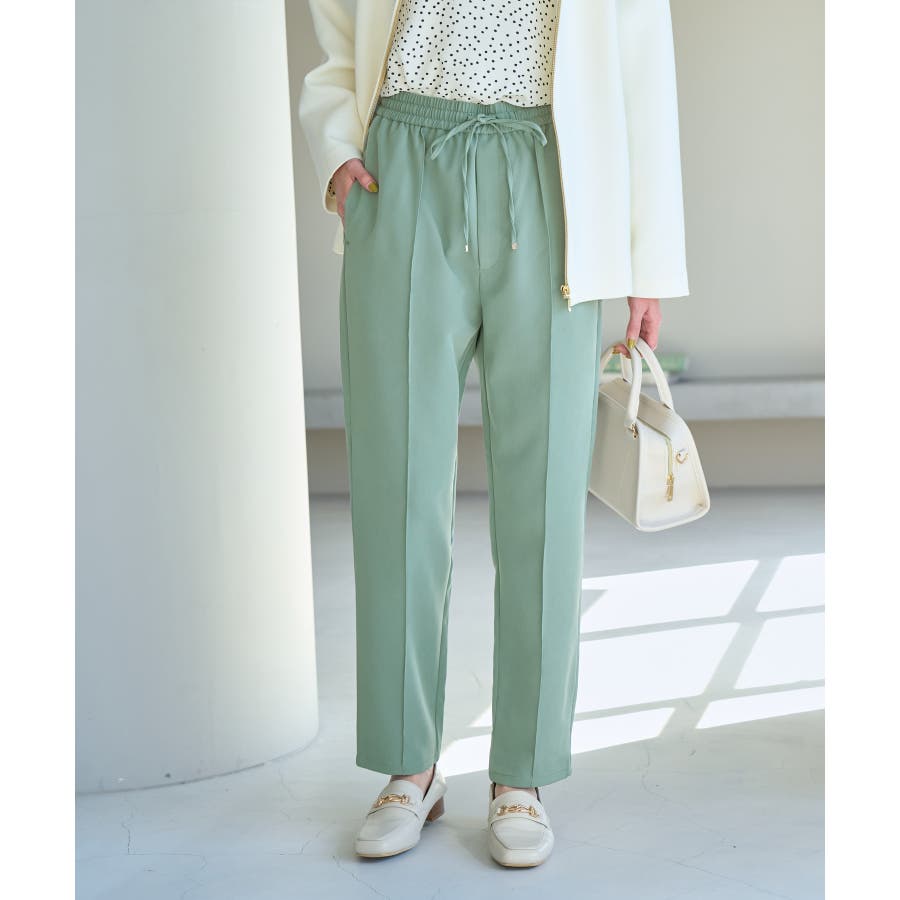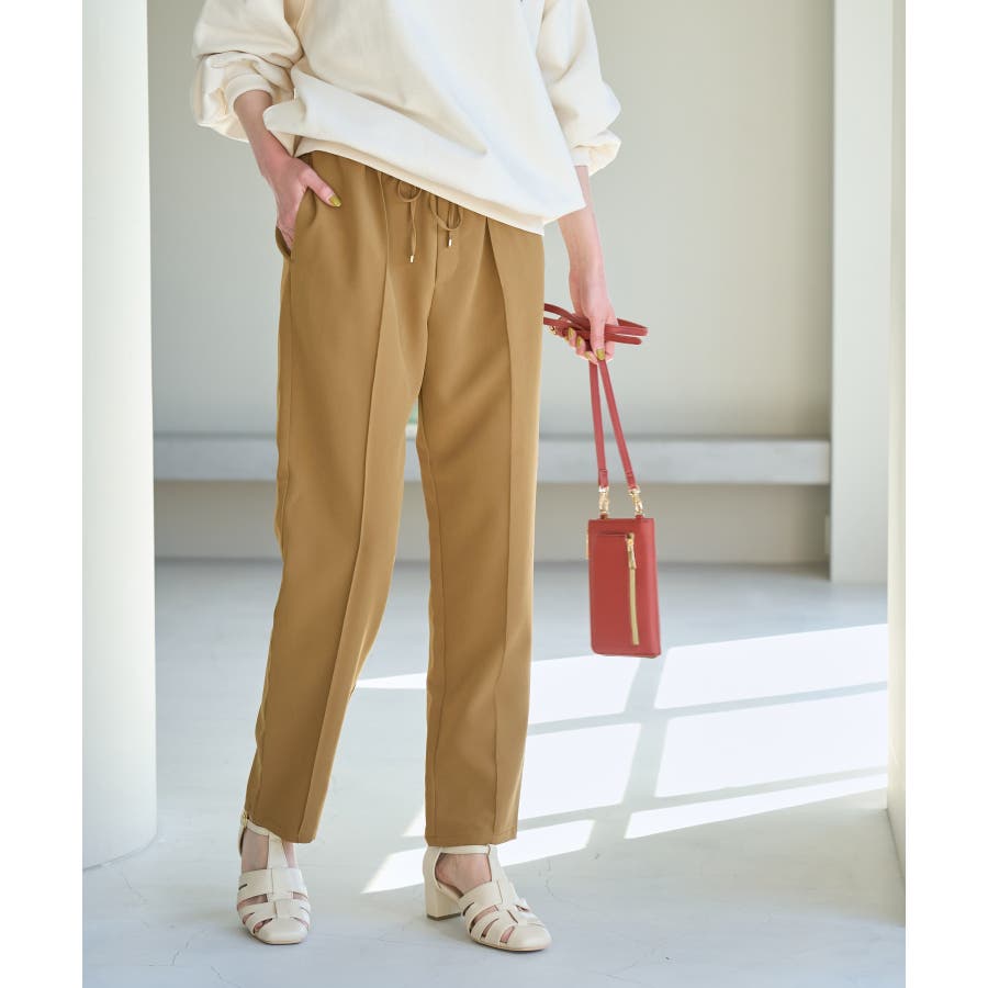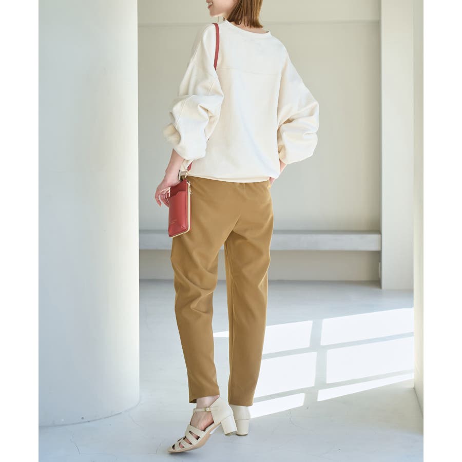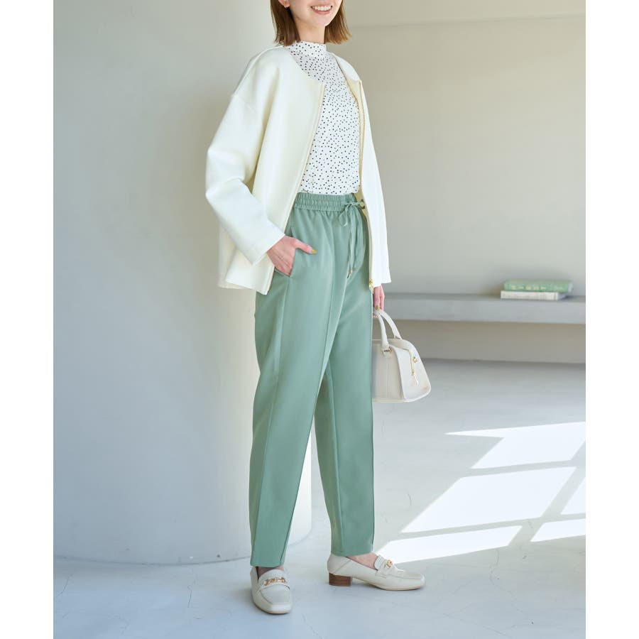 大人気ステファニージョガーパンツ(品番:GDS52020)が秋冬バージョンになって再登場! : 【素材感】 ・柔らかく伸縮性のある素材。 ・やや光沢感があるので、お仕事用にもぴったり。 【デザイン・シルエット】 ・脚のラインを拾いにくいストレートラインのジョグパンツ。 ・無駄な余りが出ず、すっきり決まるストレートライン。 ・ラクチンなギャザーウエストで、ドロストで調節が可能。 【カラー】 ・種類豊富な5色展開。 ・グレー系(09)はベージュみがかったグレージュのような色味になります。 【スタイリングポイント】 ・シャツにローファーを合わせるとトラッドなスタイルが完成。 ・パーカとスニーカーでカジュアルダウンするのも一押し。 ----------------------------- 裏地:なし 透け感:なし 伸縮性:あり 生地感・厚さ:普通 ポケット:あり(前2つ、後ろ2つ) ウエスト:ゴム 季節:春~秋 ----------------------------- ※撮影時の光、お使いのモニター環境によって色の見え方が違う場合がございます。 ※モデル身長:165cm 着用サイズ:38 : 【スタッフ着用レビュー/サイズ感】 ・身長151cm (普段の着用サイズ:36 着用サイズ:36) 程よいゆとりがあるので、体のラインを拾わずに着れます。 丈はくるぶしが隠れるくらいでフラットシューズでも履けます。 ・身長157cm (普段の着用サイズ:36or38 着用サイズ:36) 全体的にやや細身のシルエットですが程よくゆとりはあります。丈はくるぶしが隠れるくらいでした。 ・身長162cm (普段の着用サイズ:38or40 着用サイズ:38) 普段40サイズが多いですが、ウエスト全てゴムなので38サイズでもストレスフリーで履けました。丈の長さもくるぶし下くらいでちょうど良かったです。 ・身長174cm (普段の着用サイズ:40 着用サイズ:40) 高身長でも丈が長めなのでバランス良く着こなせます。ウエストゴムですが、紐で縛れるのでウエストサイズの調整ができます。