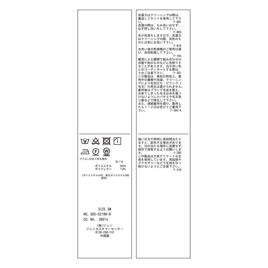 | 素材 | ブラック(01):ポリエステル 90% ポリウレタン 10%|グレー系(09):ポリエステル 90% ポリウレタン 10%|キャメル系(26):ポリエステル 90% ポリウレタン 10%|グリーン(30):ポリエステル 90% ポリウレタン 10%|ピンク系(65):ポリエステル 90% ポリウレタン 10% |