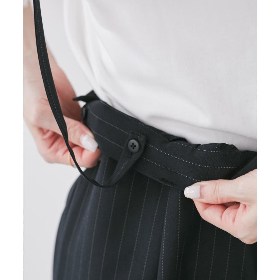 ※ウエストベルトの内側にウエストサイズを調整できるタブ付き。サスペンダーをつけずに着用する際ウエストに合わせ、調整できる仕様です。