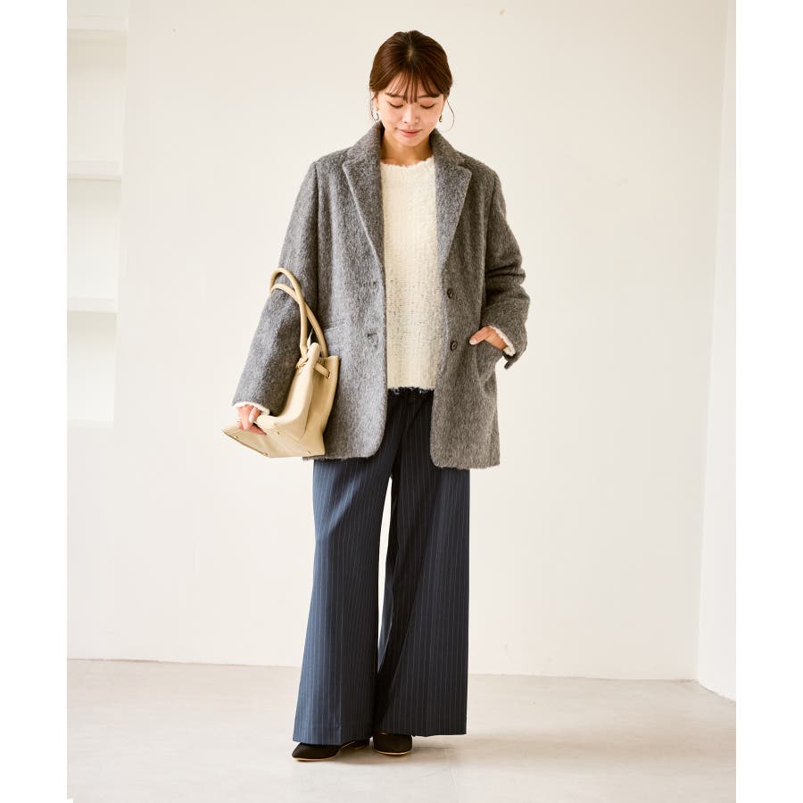 ・ケーブルニットやハイネックニットなどコンパクトなトップスとのコーディネートがおすすめ。