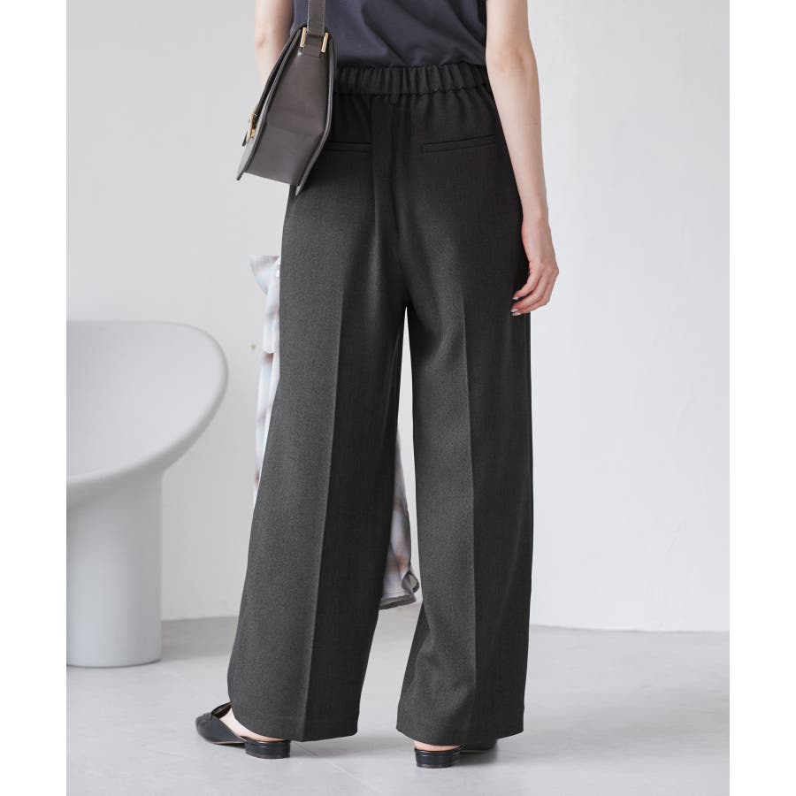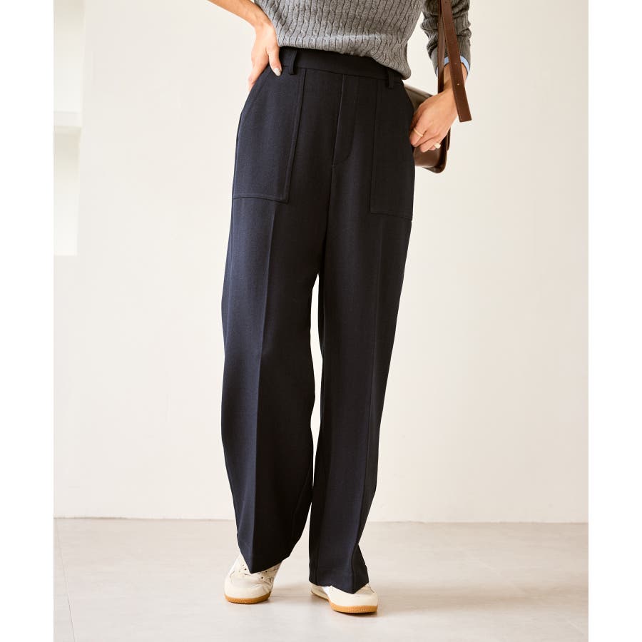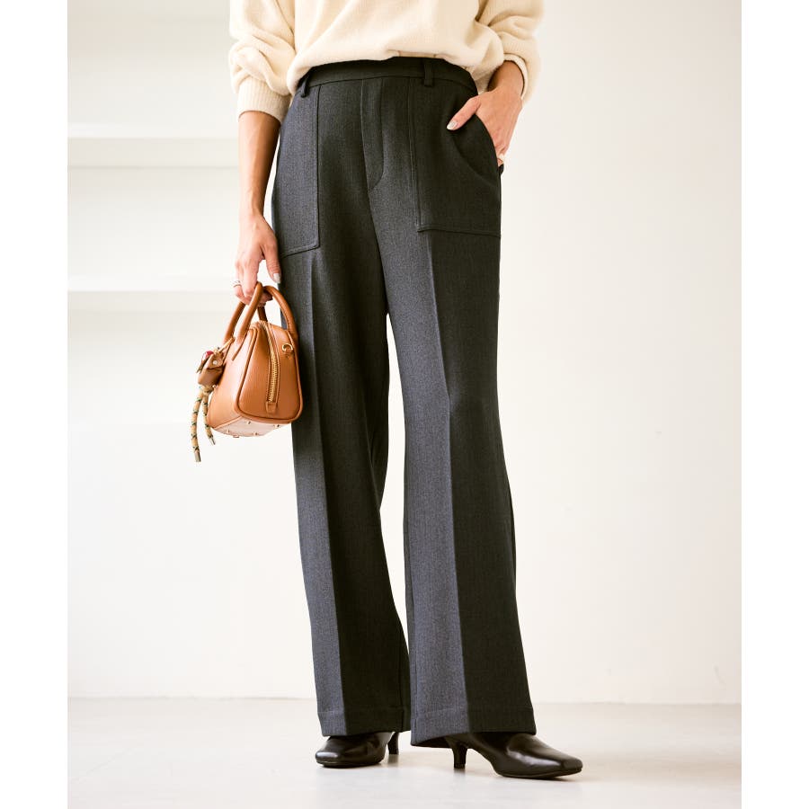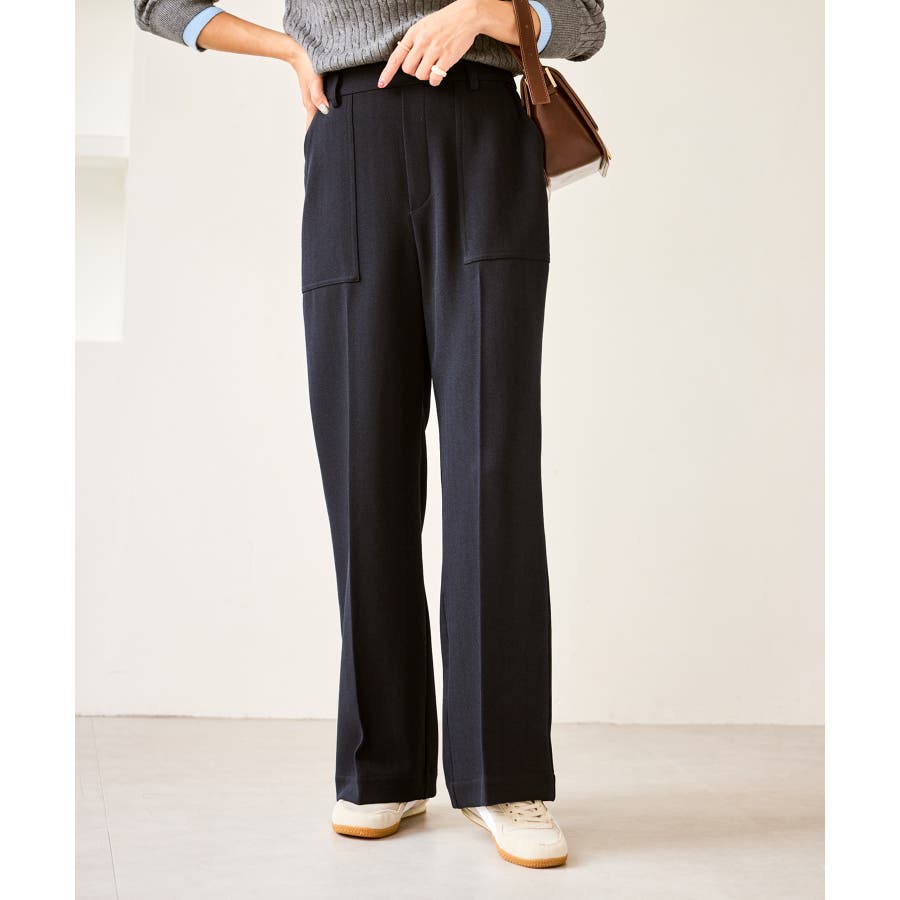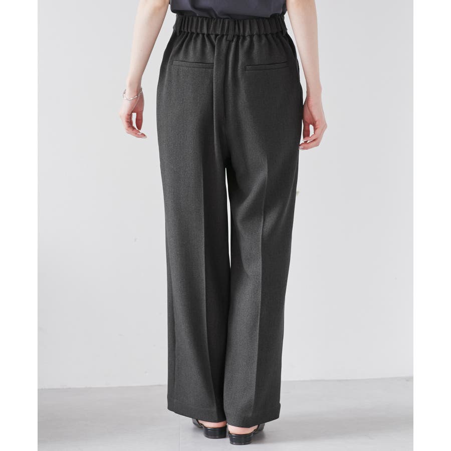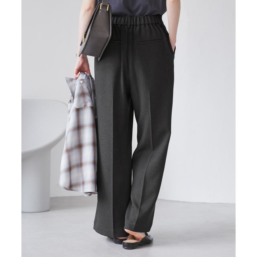 ・ポリエステル×ポリウレタン素材で軽やかでシワになりにくく、きれいめな表情と快適な穿き心地。