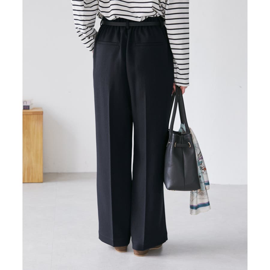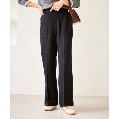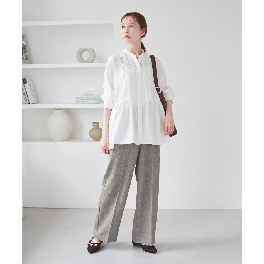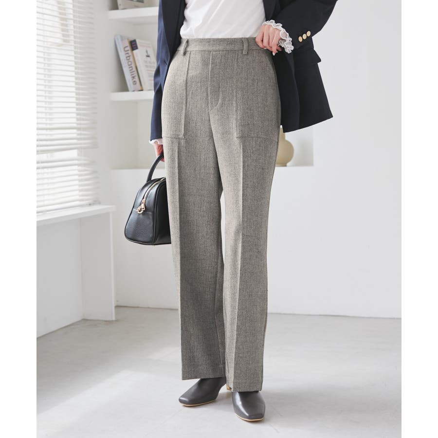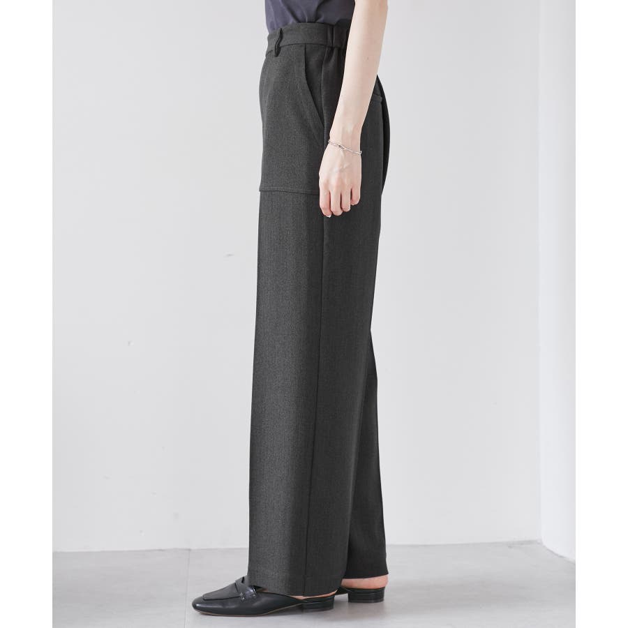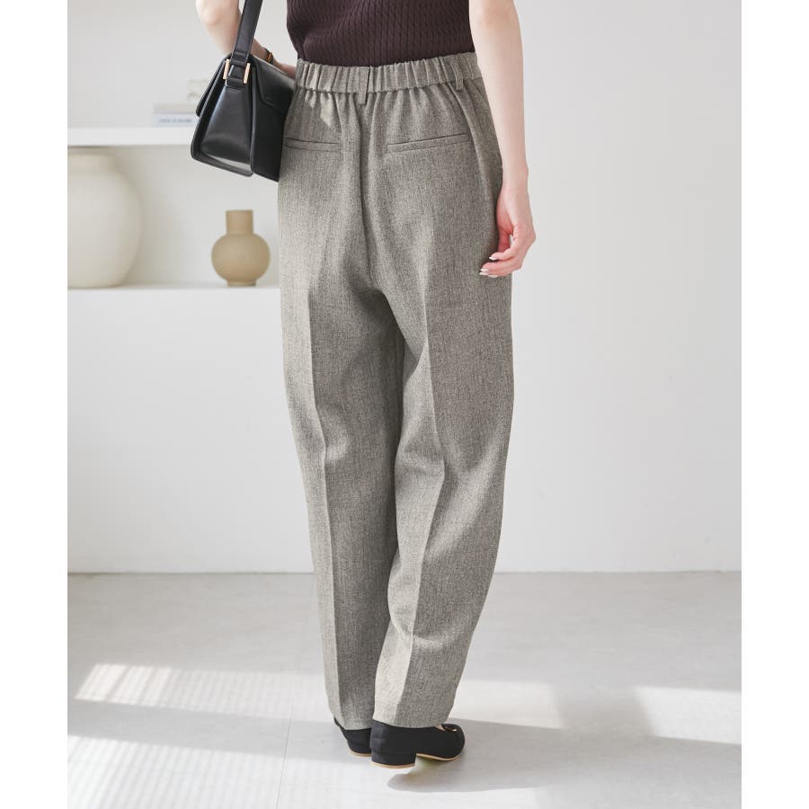 ・ポリエステル×ポリウレタン素材で軽やかでシワになりにくく、きれいめな表情と快適な穿き心地。
