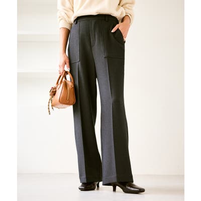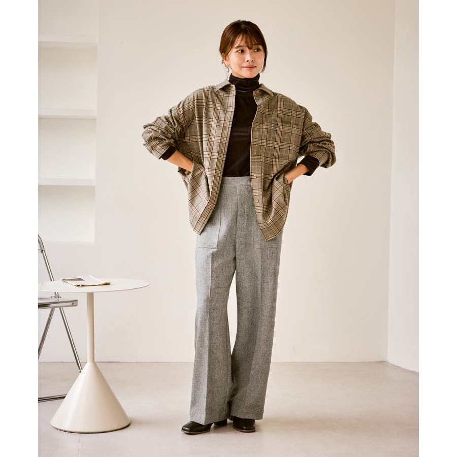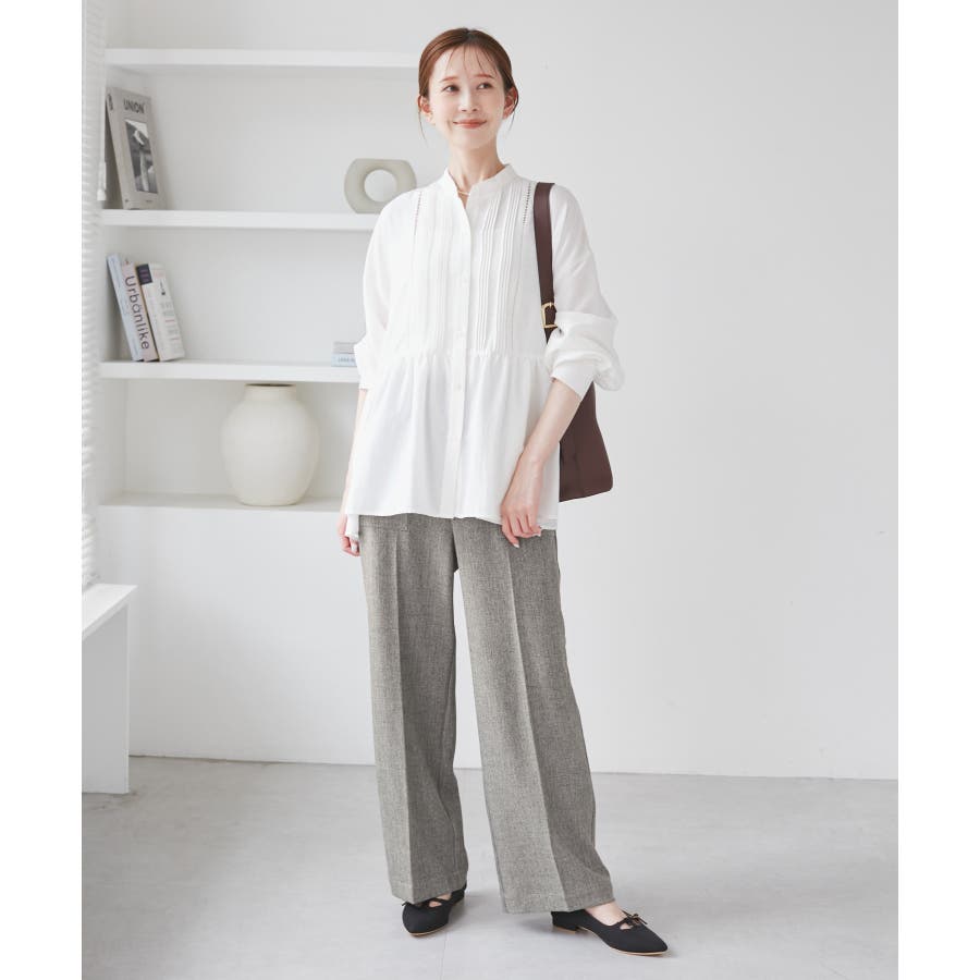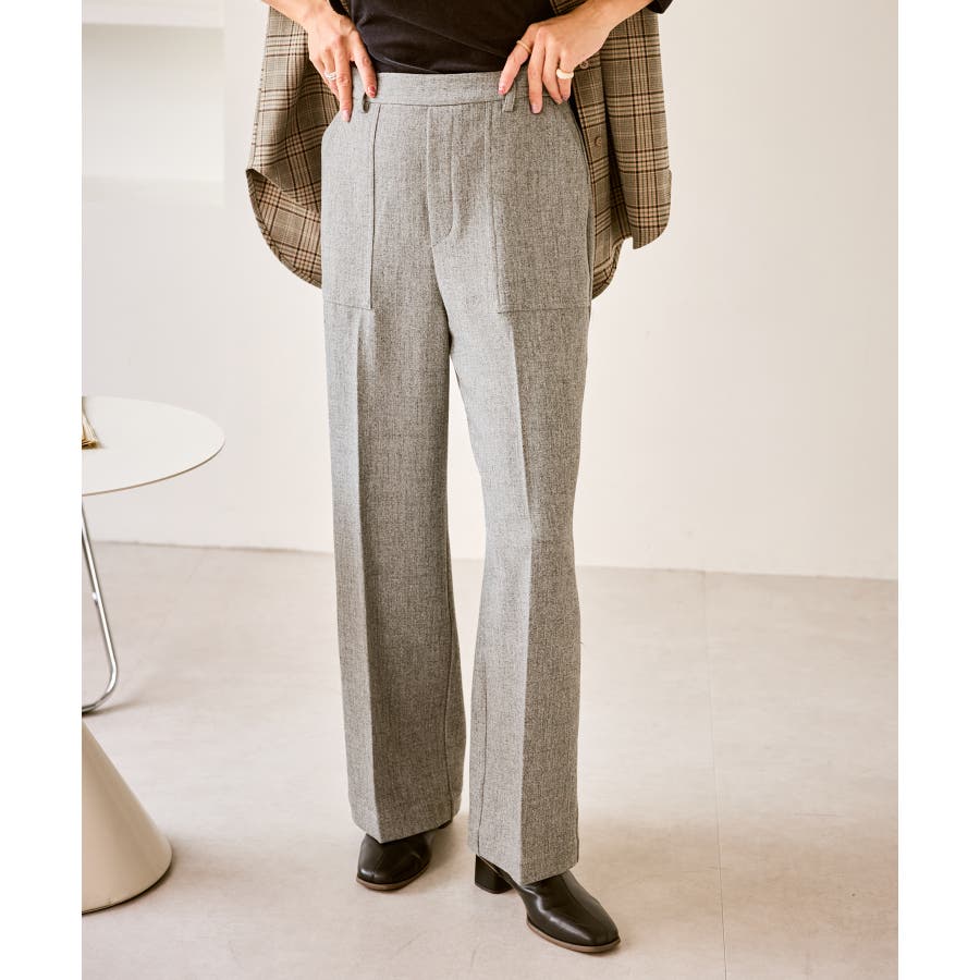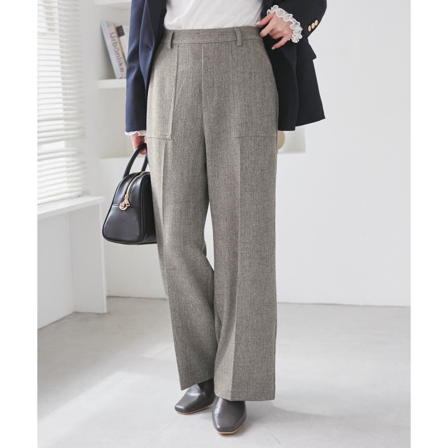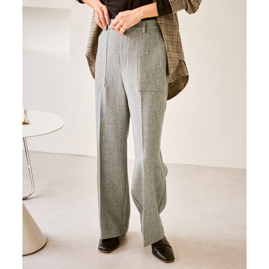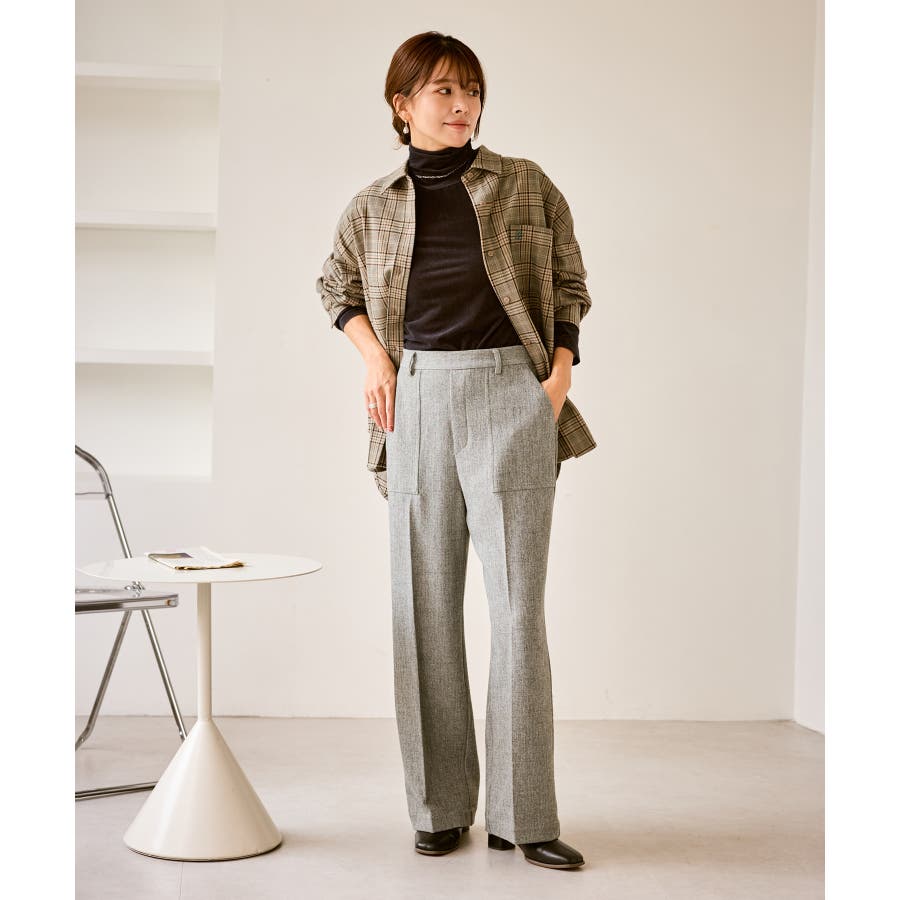 ・ポリエステル×ポリウレタン素材で軽やかでシワになりにくく、きれいめな表情と快適な穿き心地。