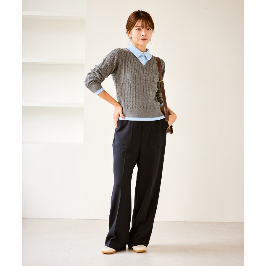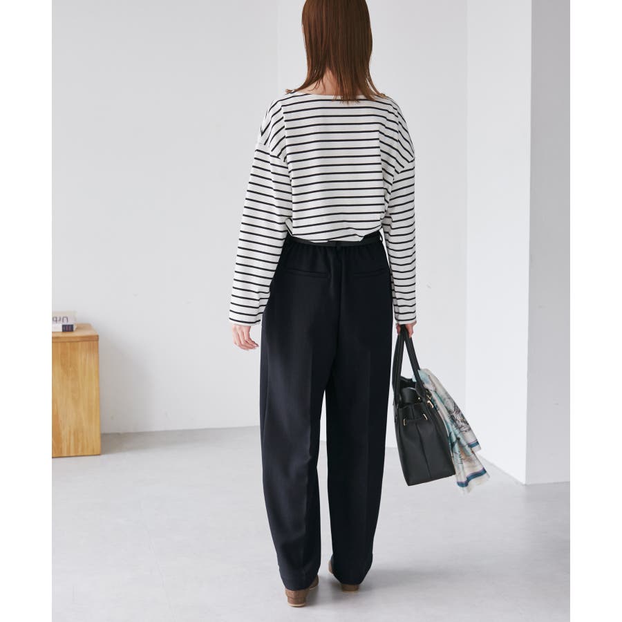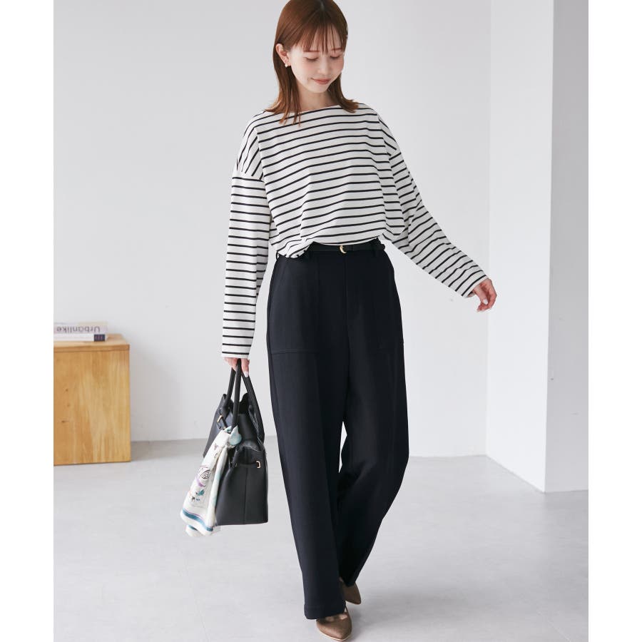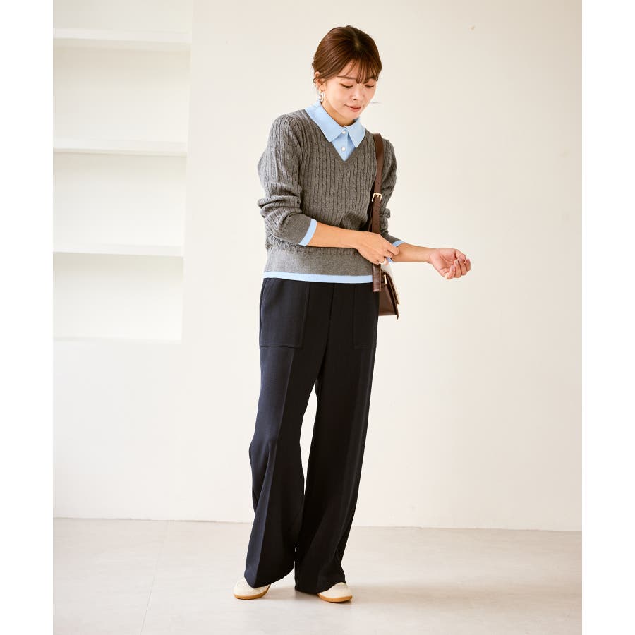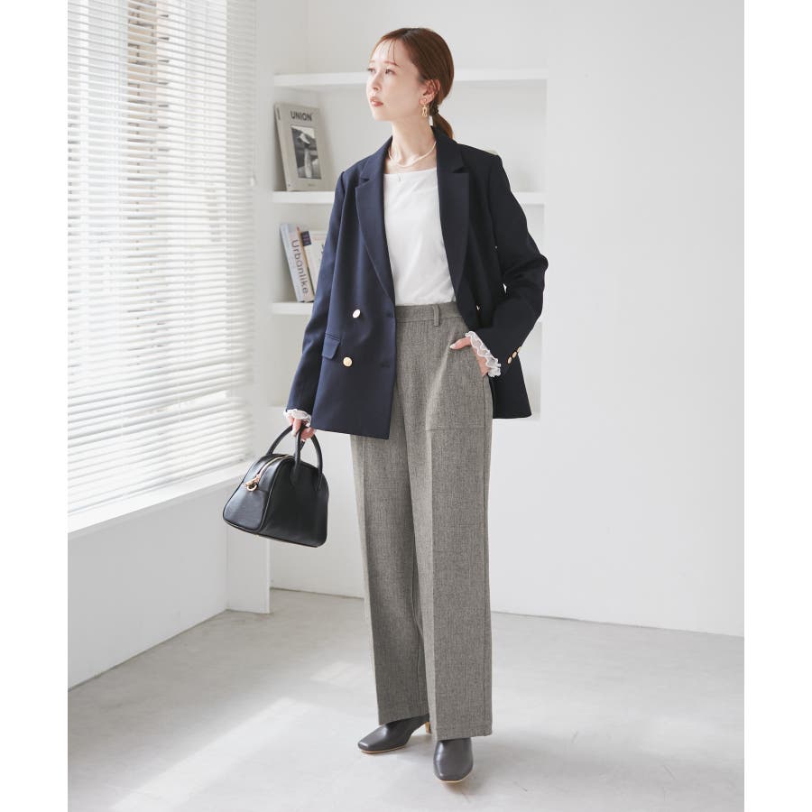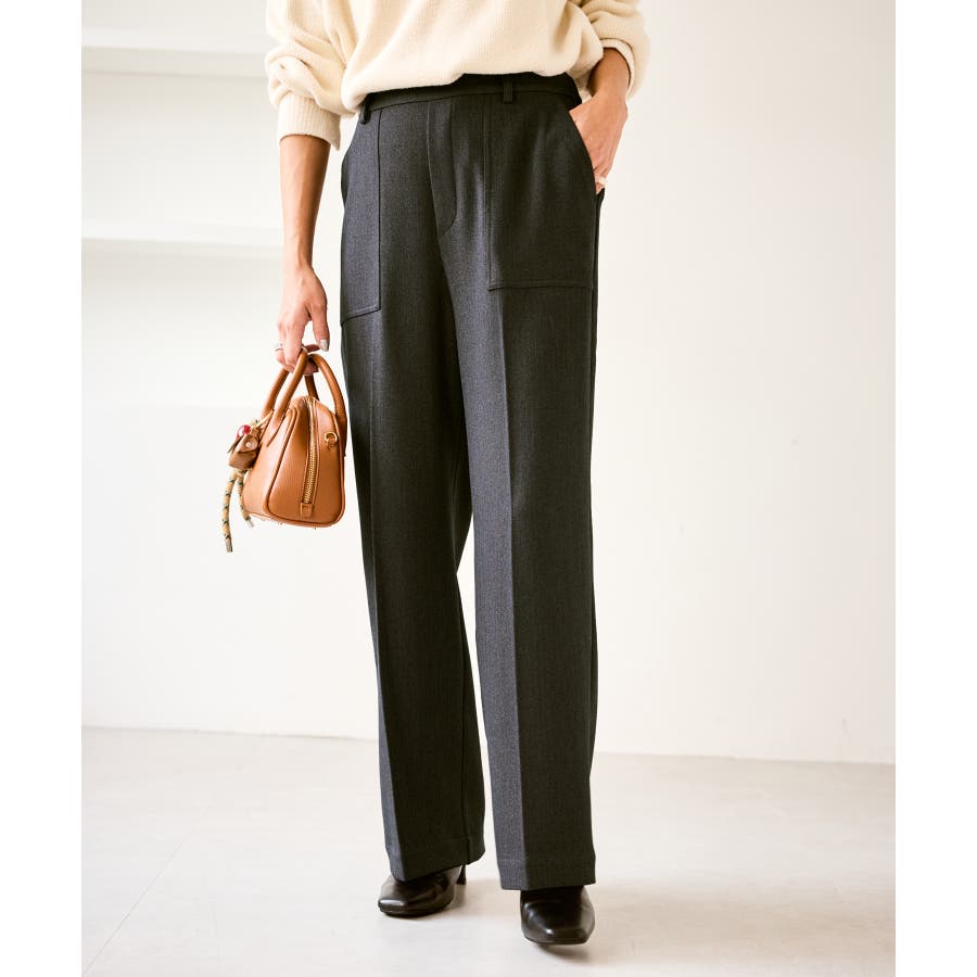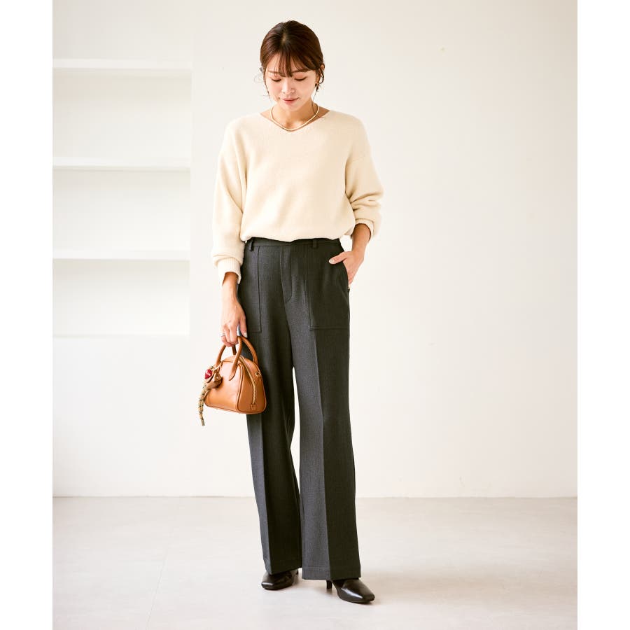 ・質感とセンタープレス入りできちんと感も出るのでオフィスカジュアルにも対応。
