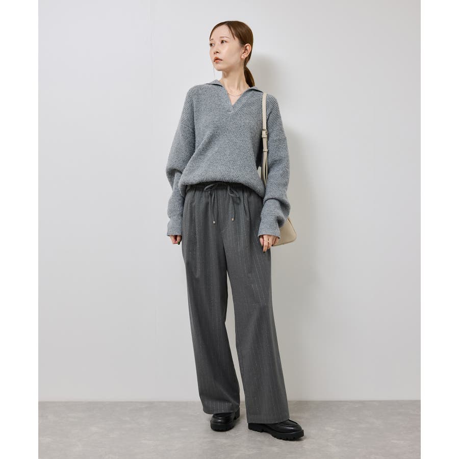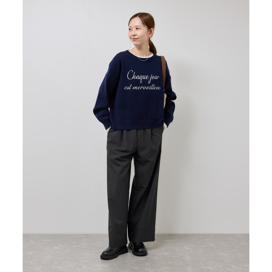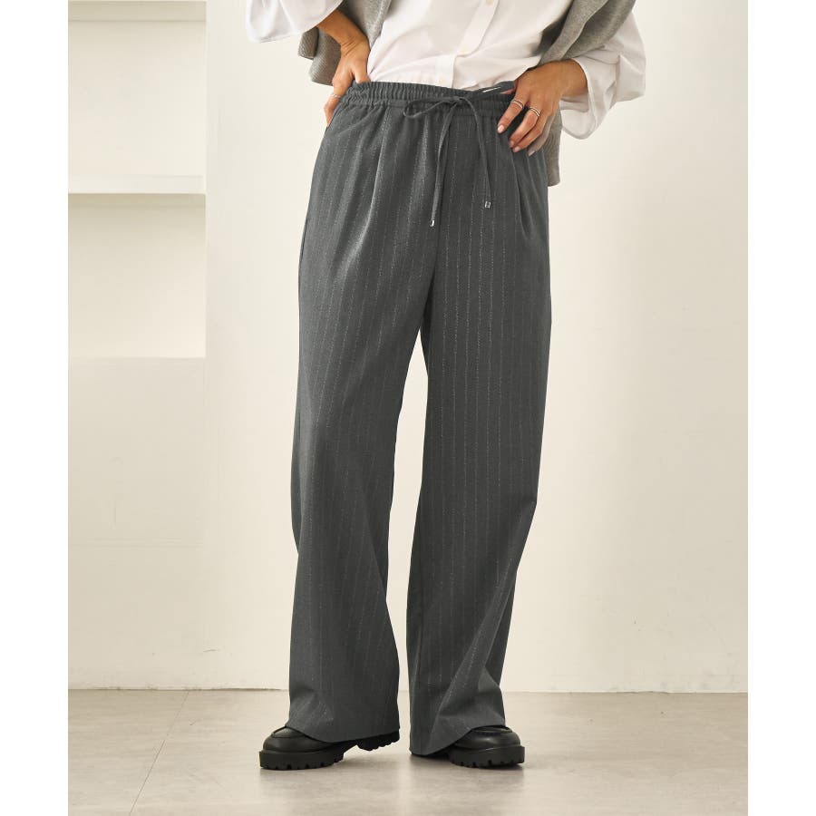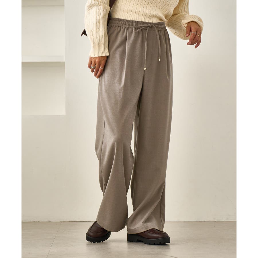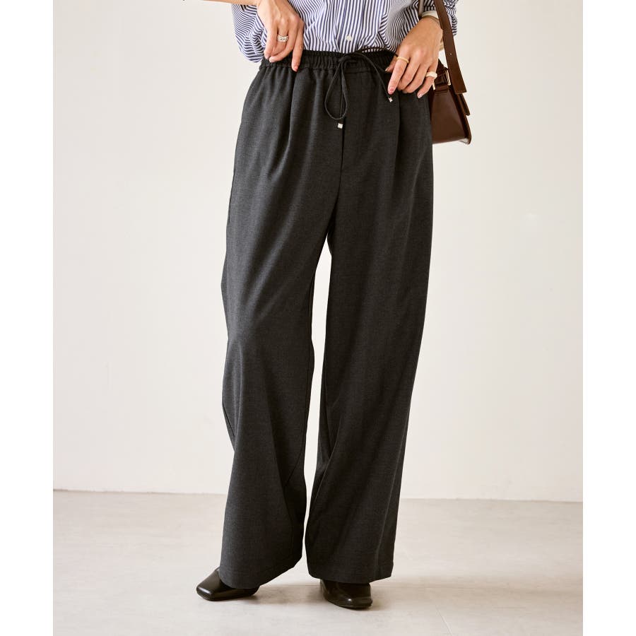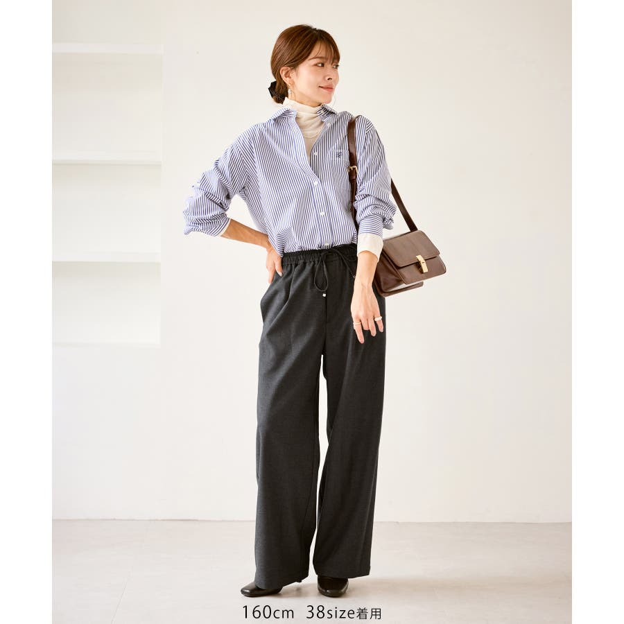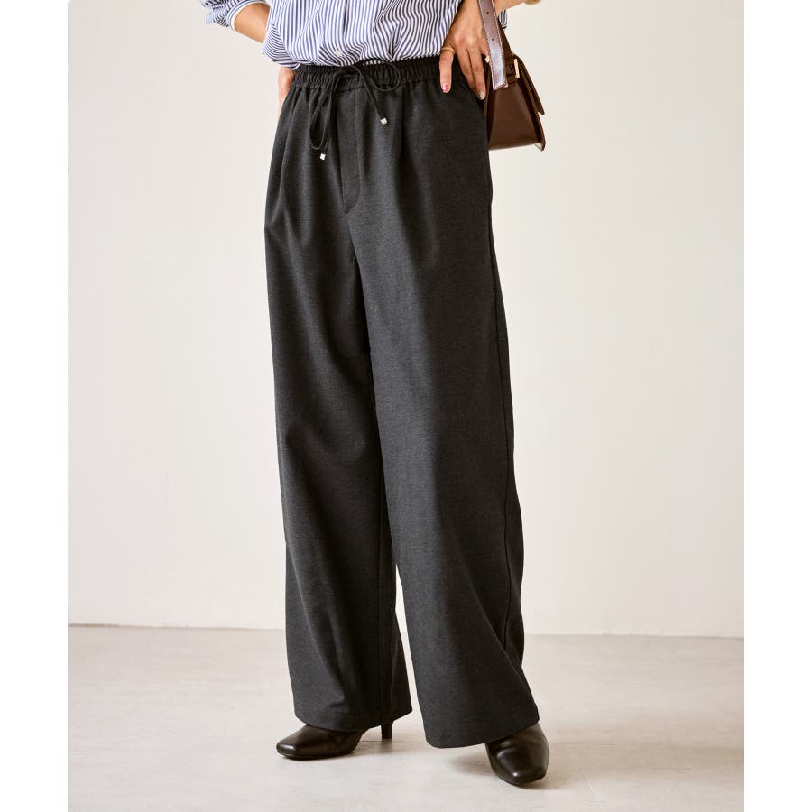 ・太すぎない裾幅のストレートワイドのイージーパンツ。