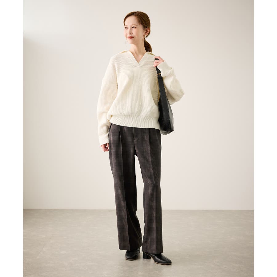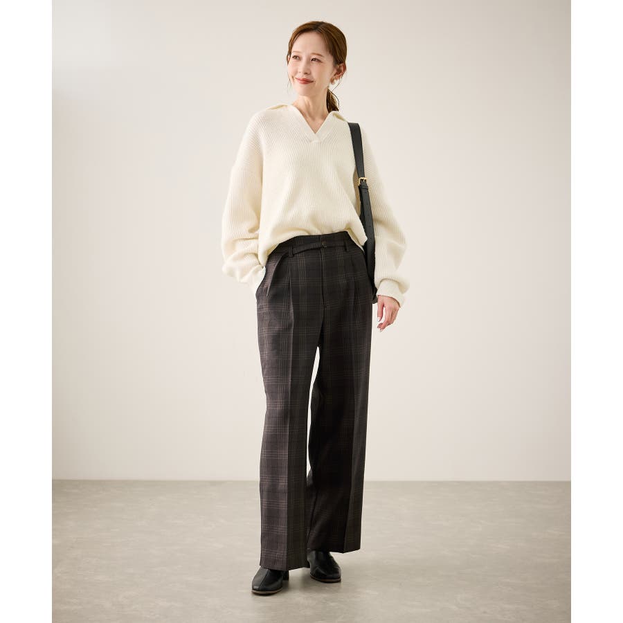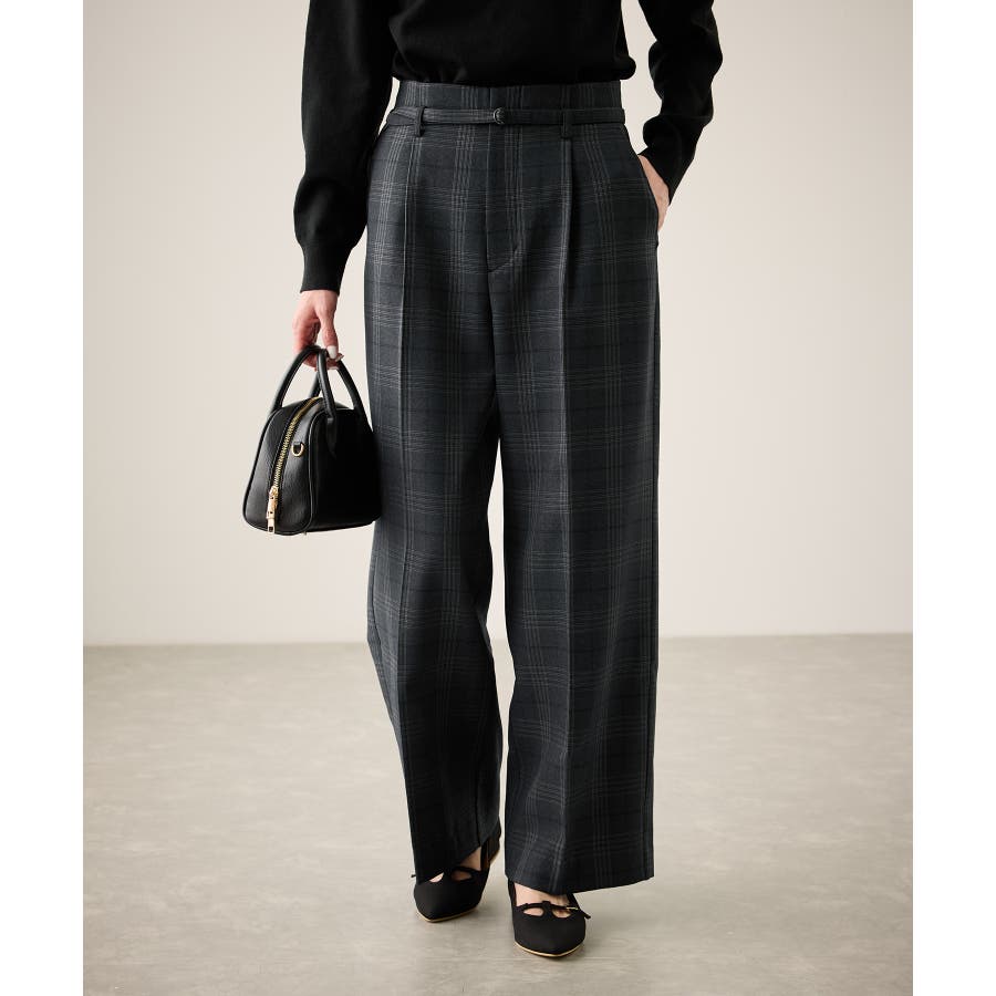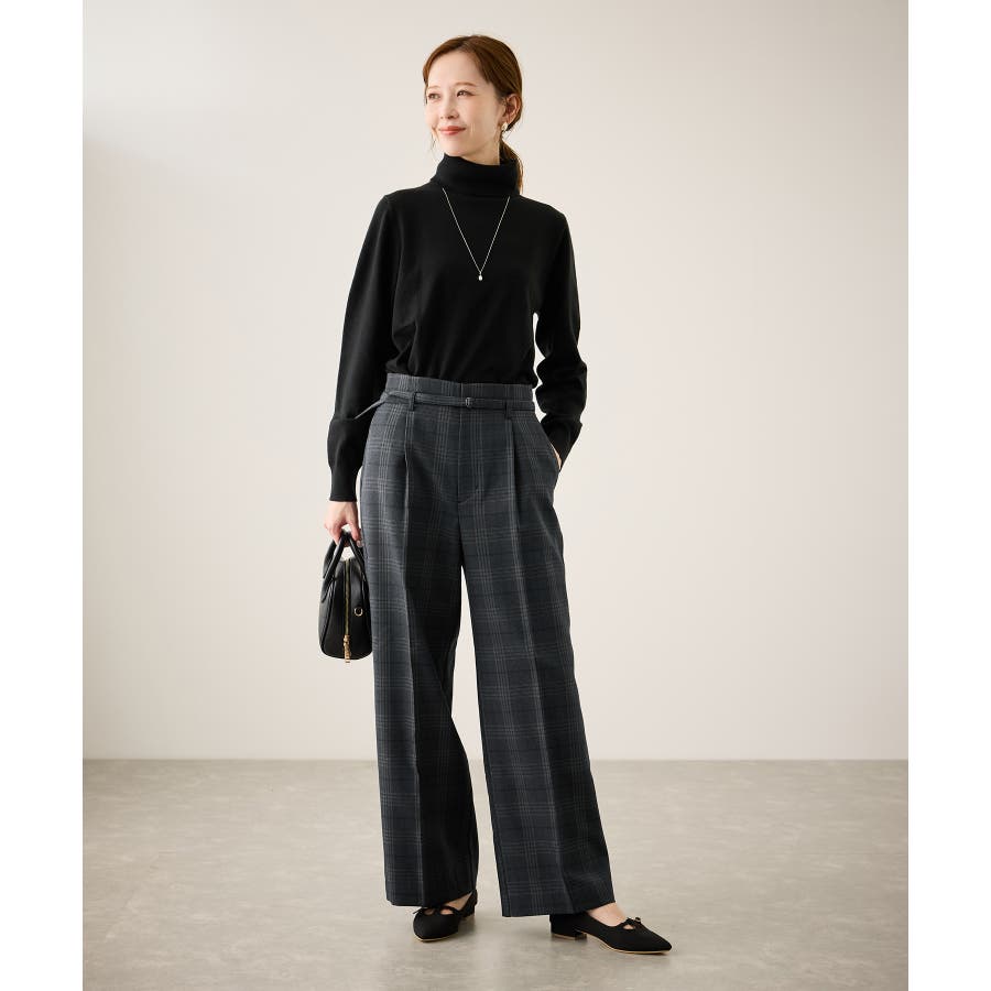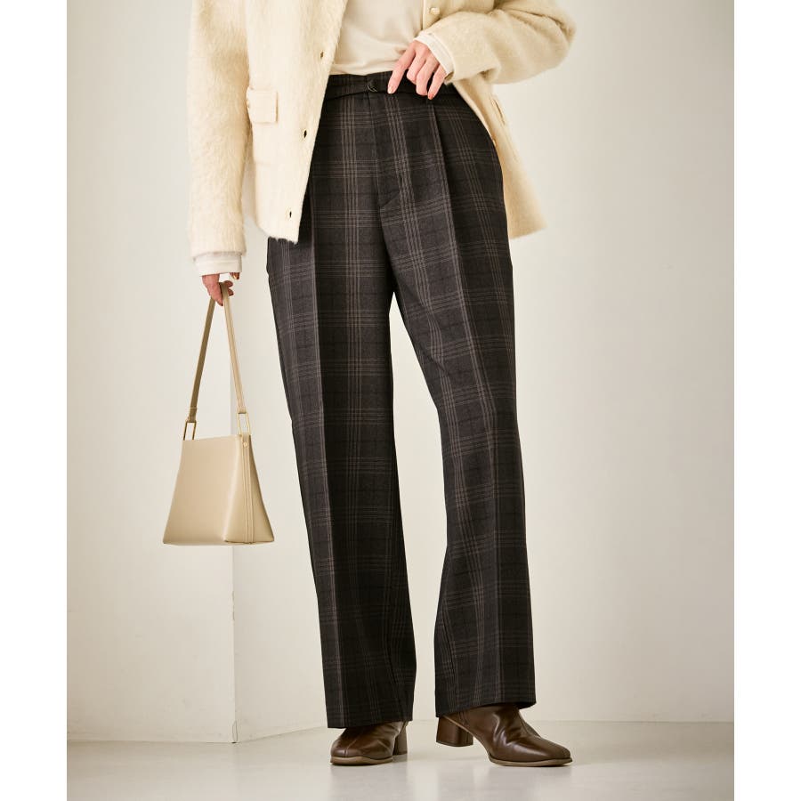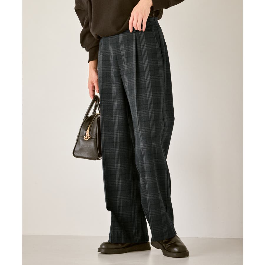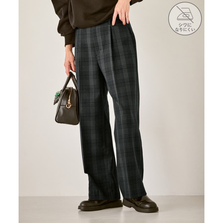 裏起毛無地&チェックアソートワイドパンツ/防シワ