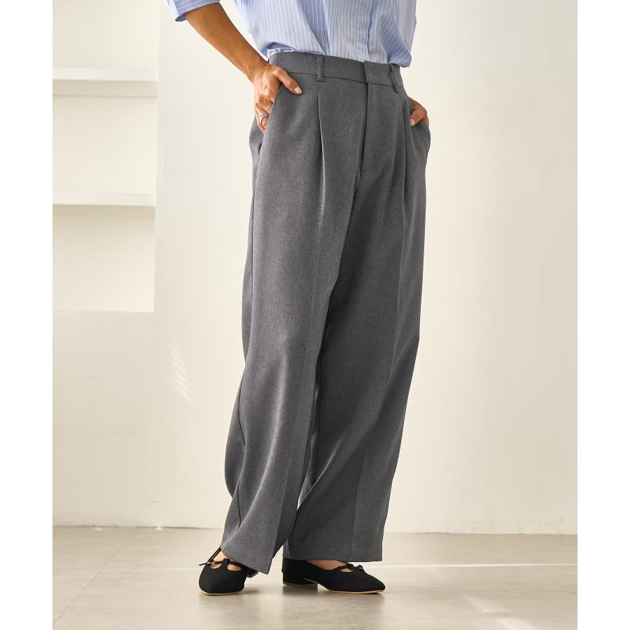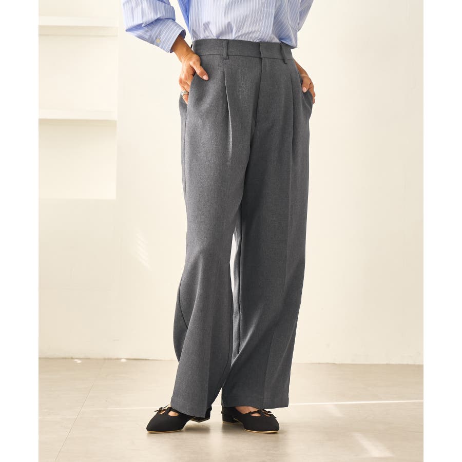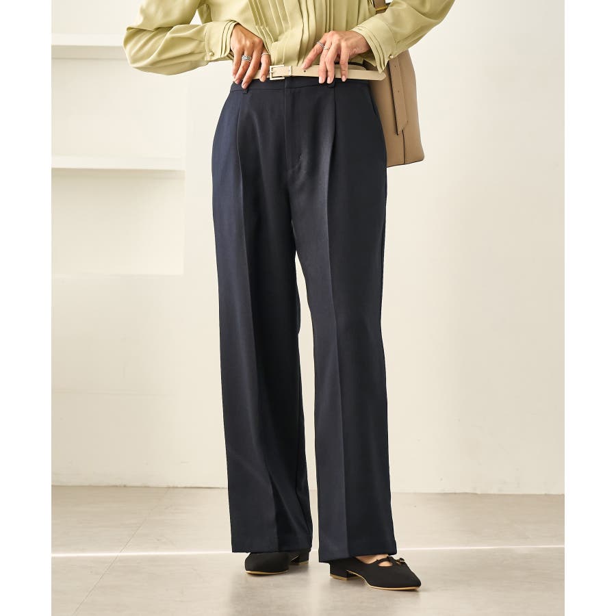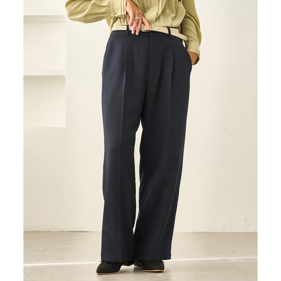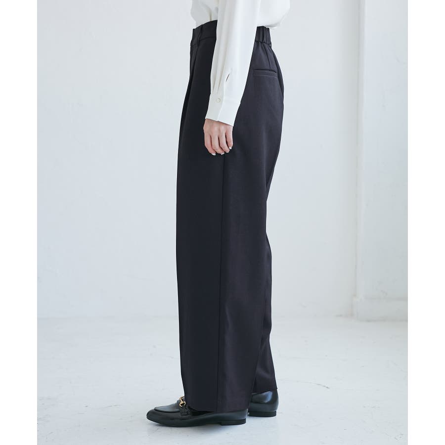 レディハンサムシリーズ ウールライクウエストタックセミワイドパンツ