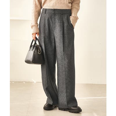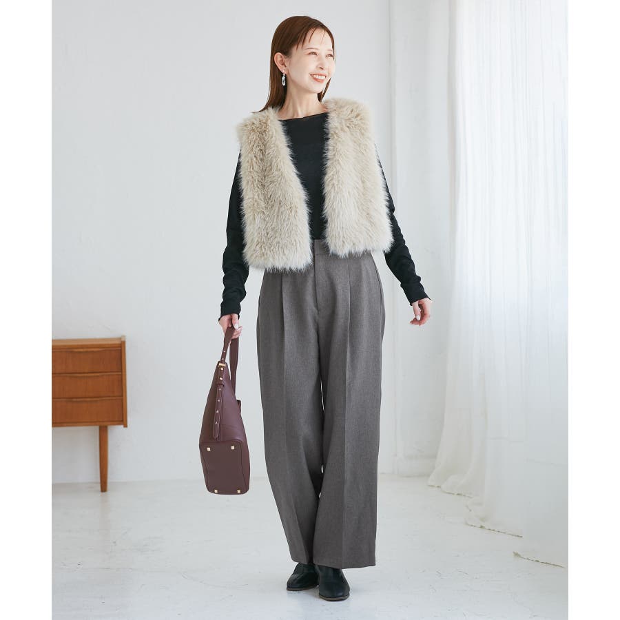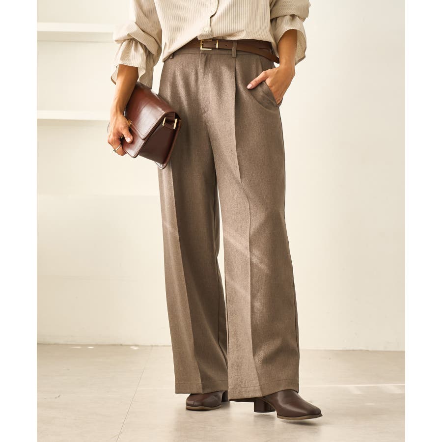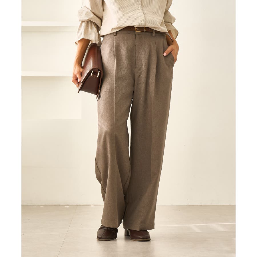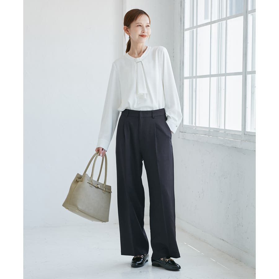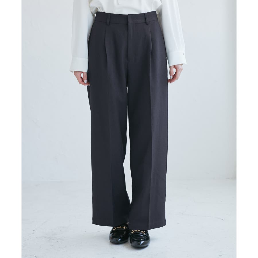 レディハンサムシリーズ ウールライクウエストタックセミワイドパンツ