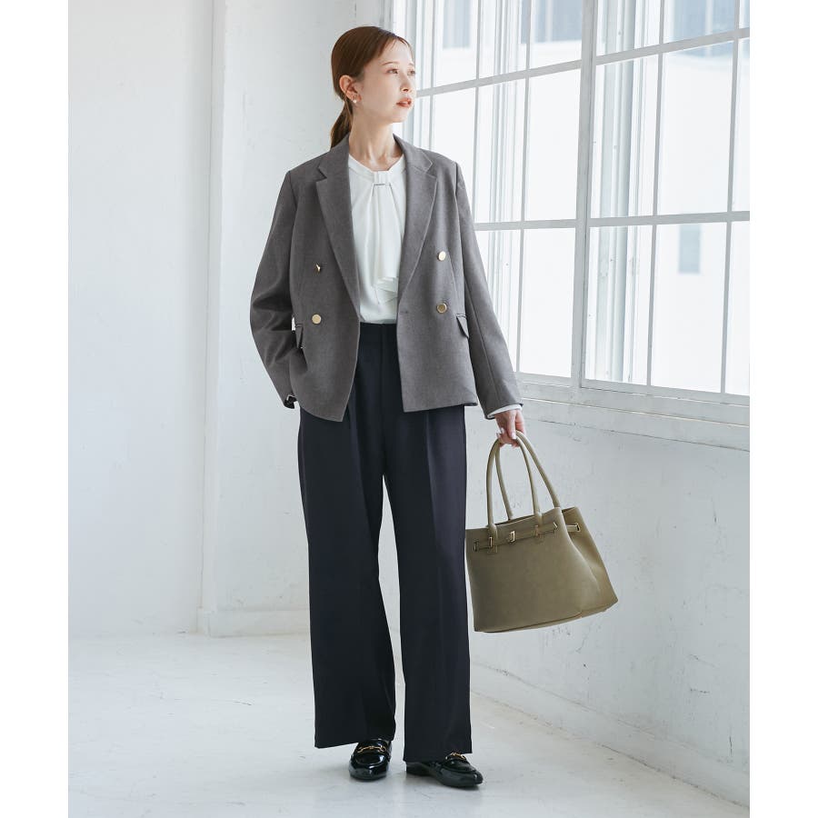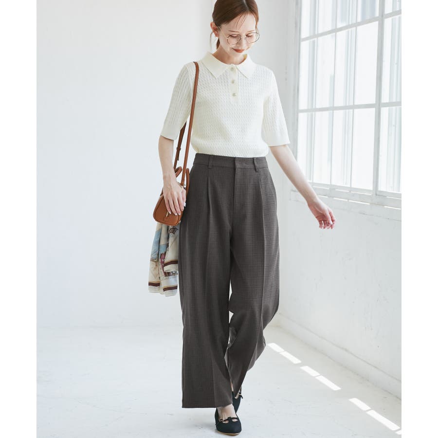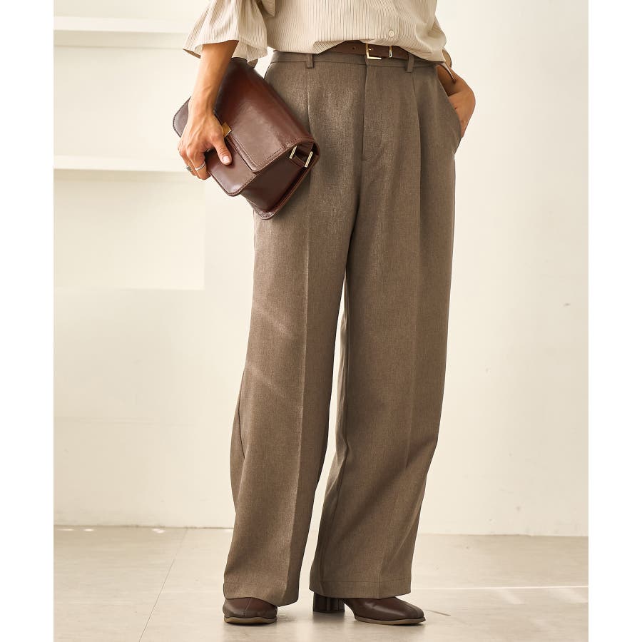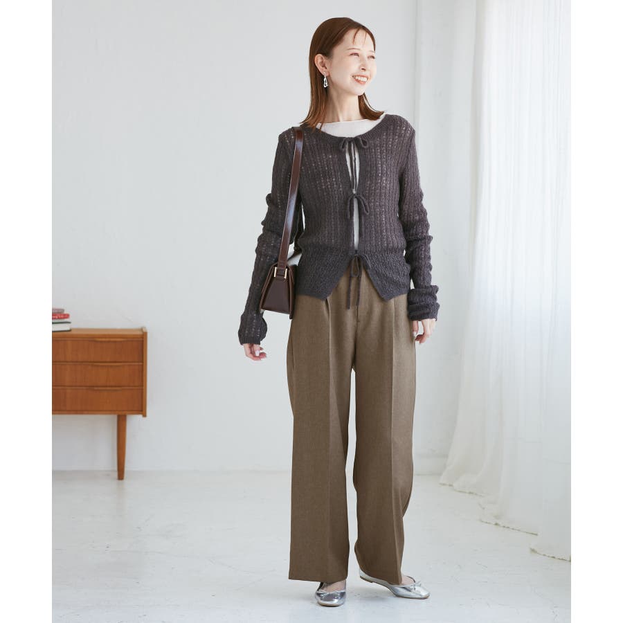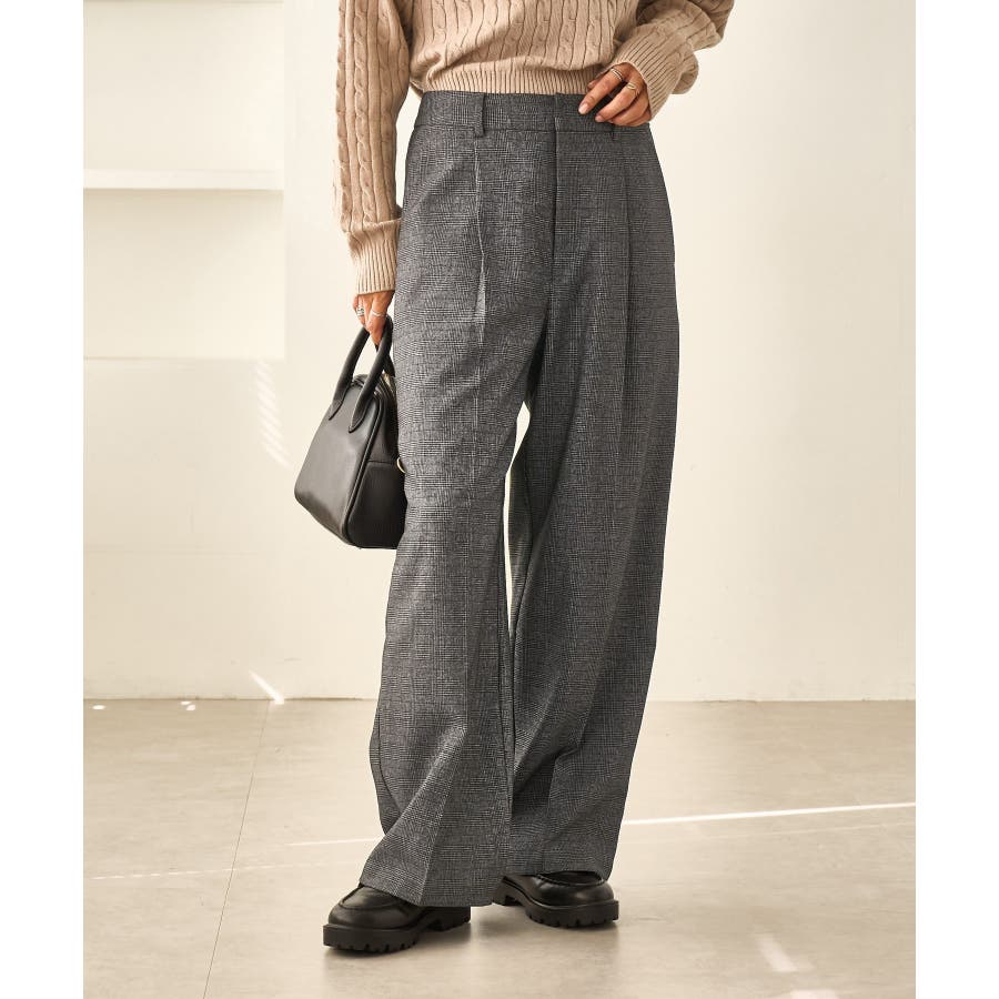 レディハンサムシリーズ ウールライクウエストタックセミワイドパンツ