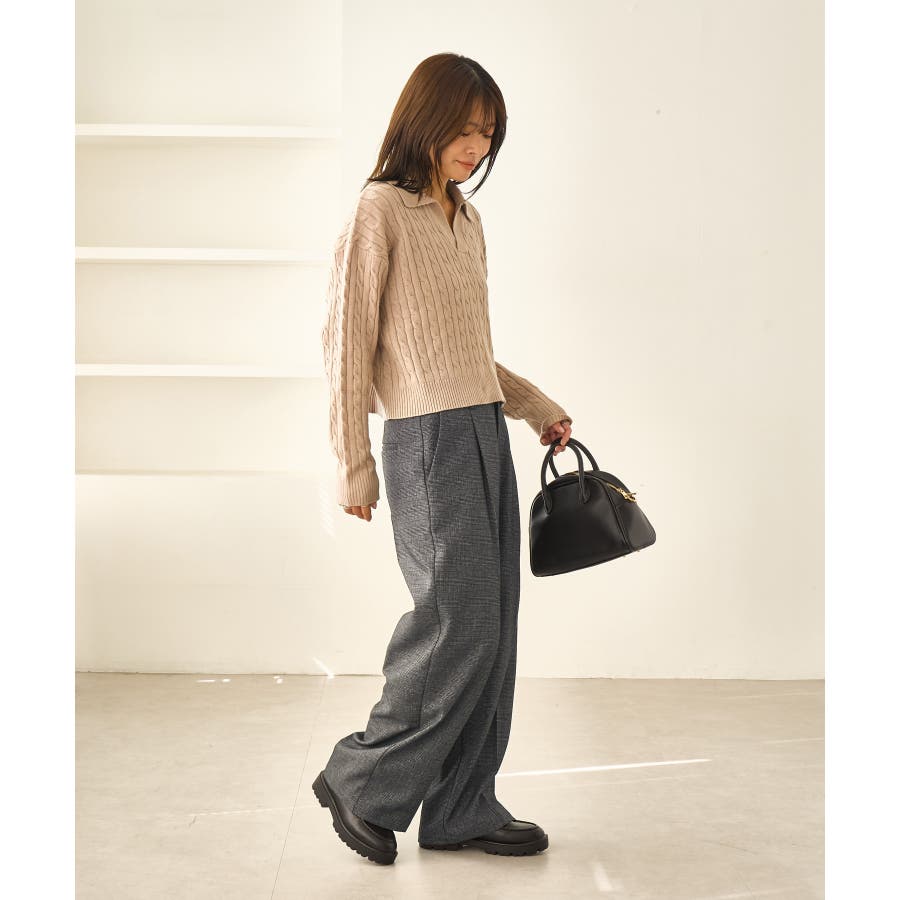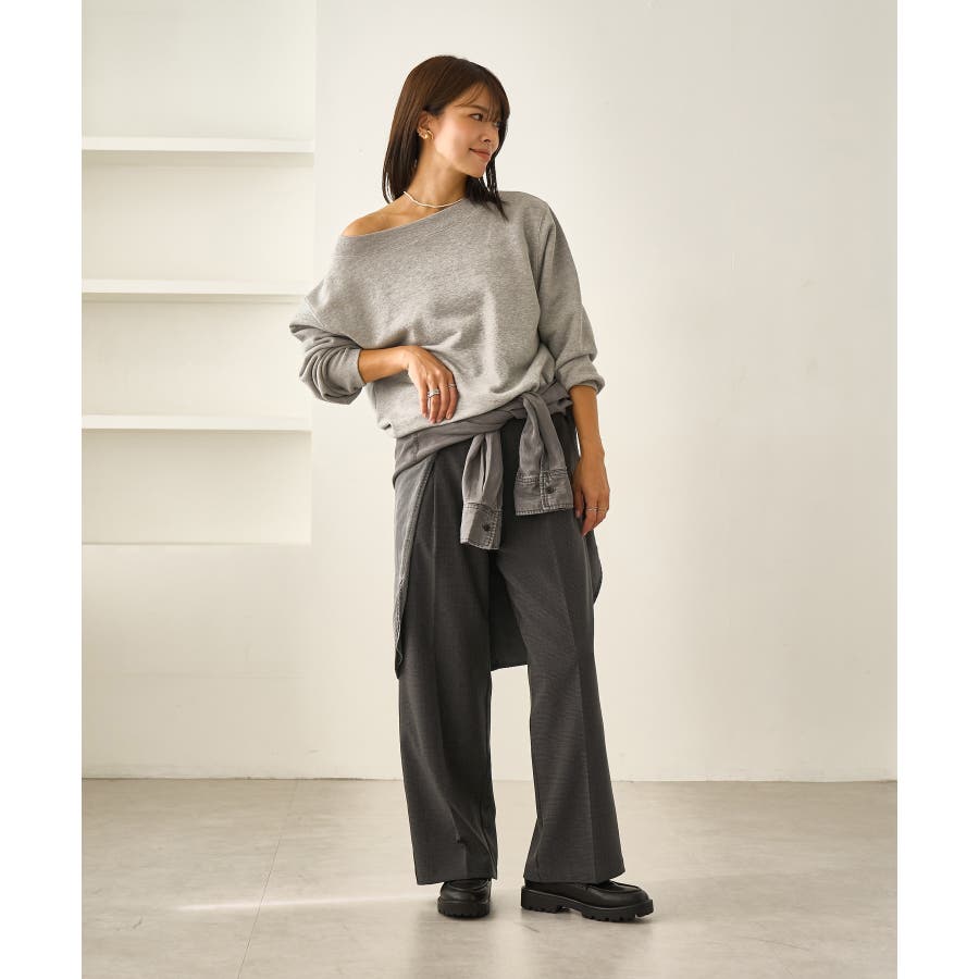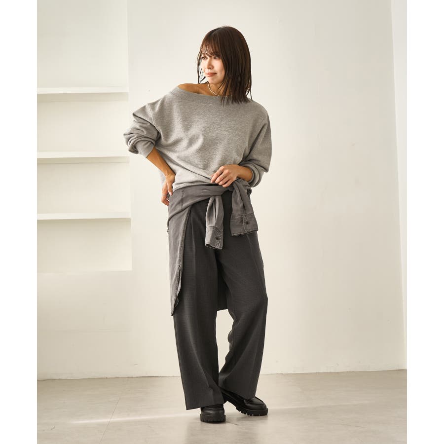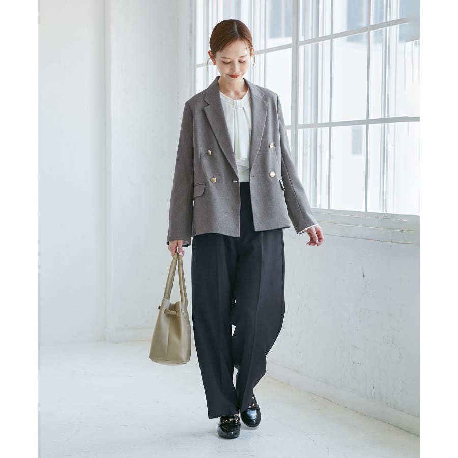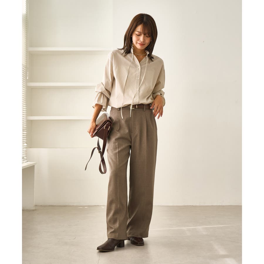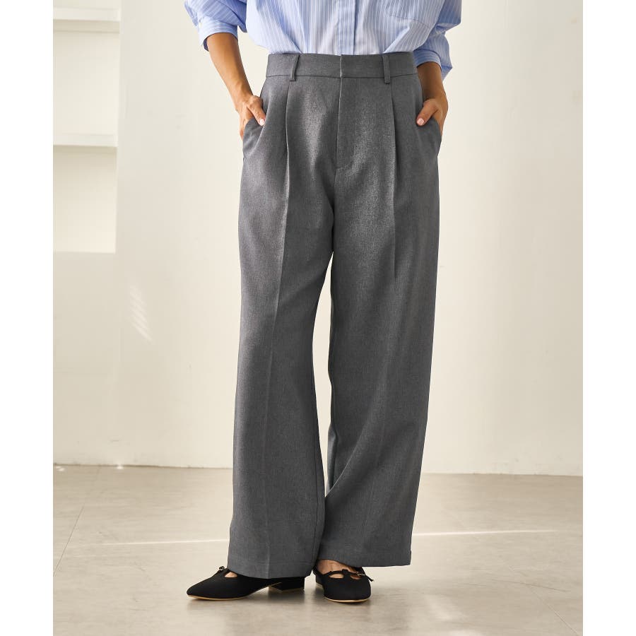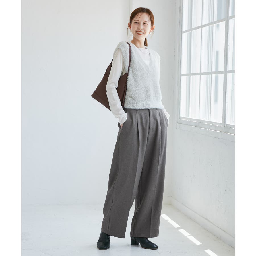 ・【WEB限定・丈長め】ウールライクウエストタックセミワイドパンツ(品番:GDS65100)