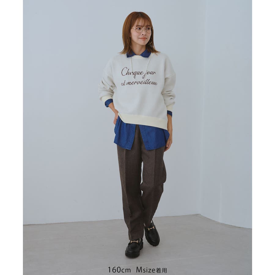 ・ふんわりゆとりのあるニット+ローファーで落ち着いたデイリーコーデに。