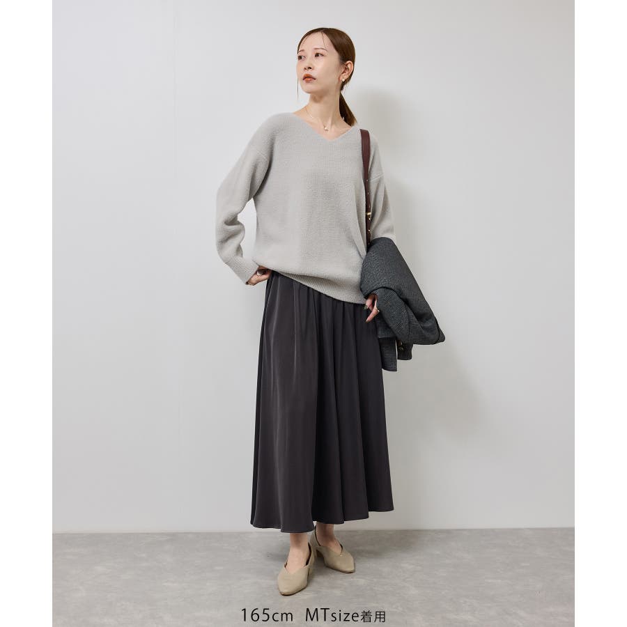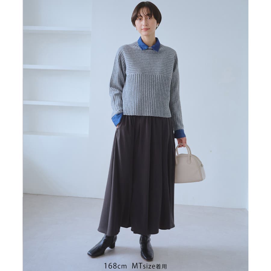 ・ミドルゲージやローゲージのニットなどとの合わせもおすすめ。