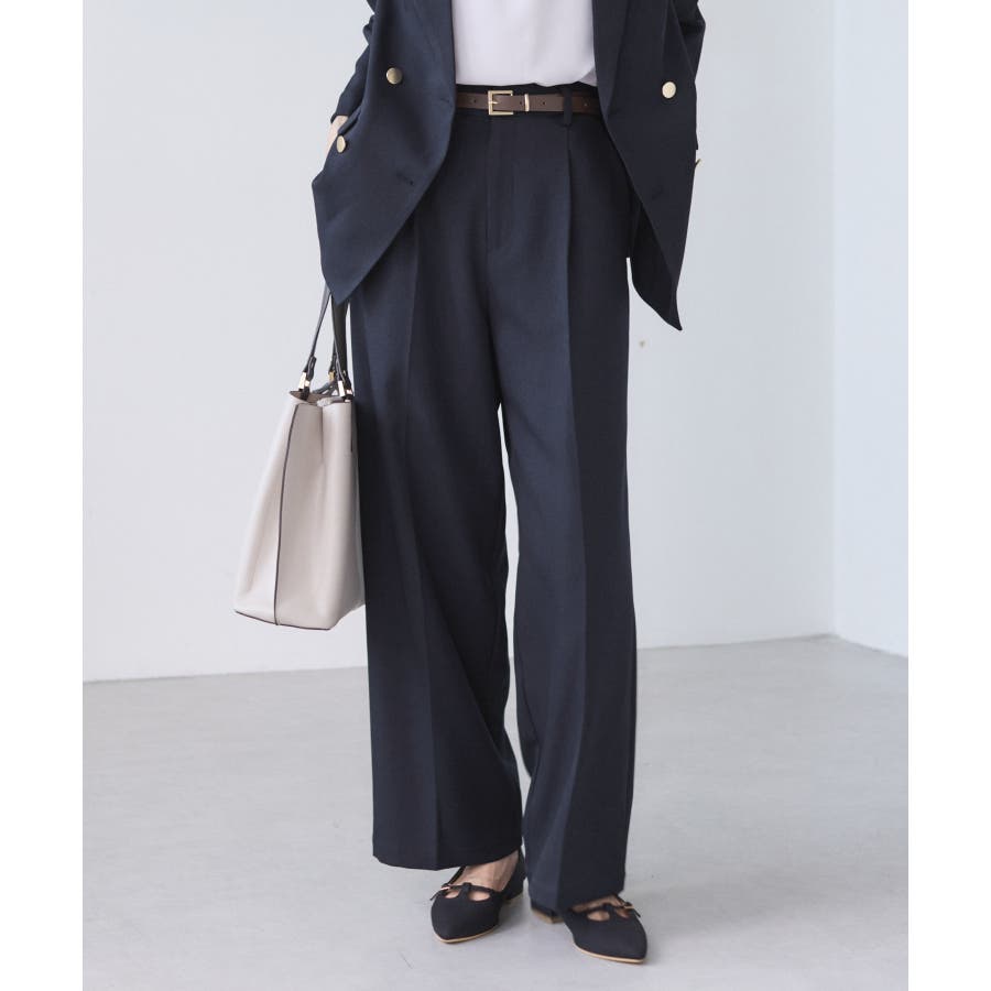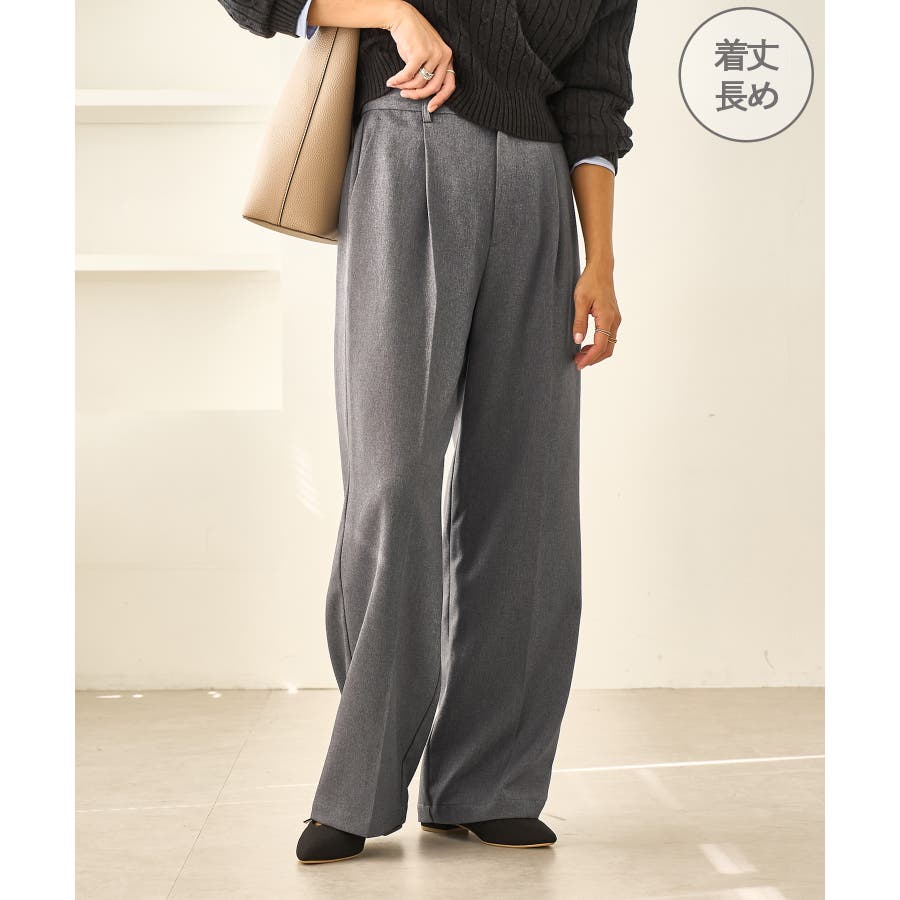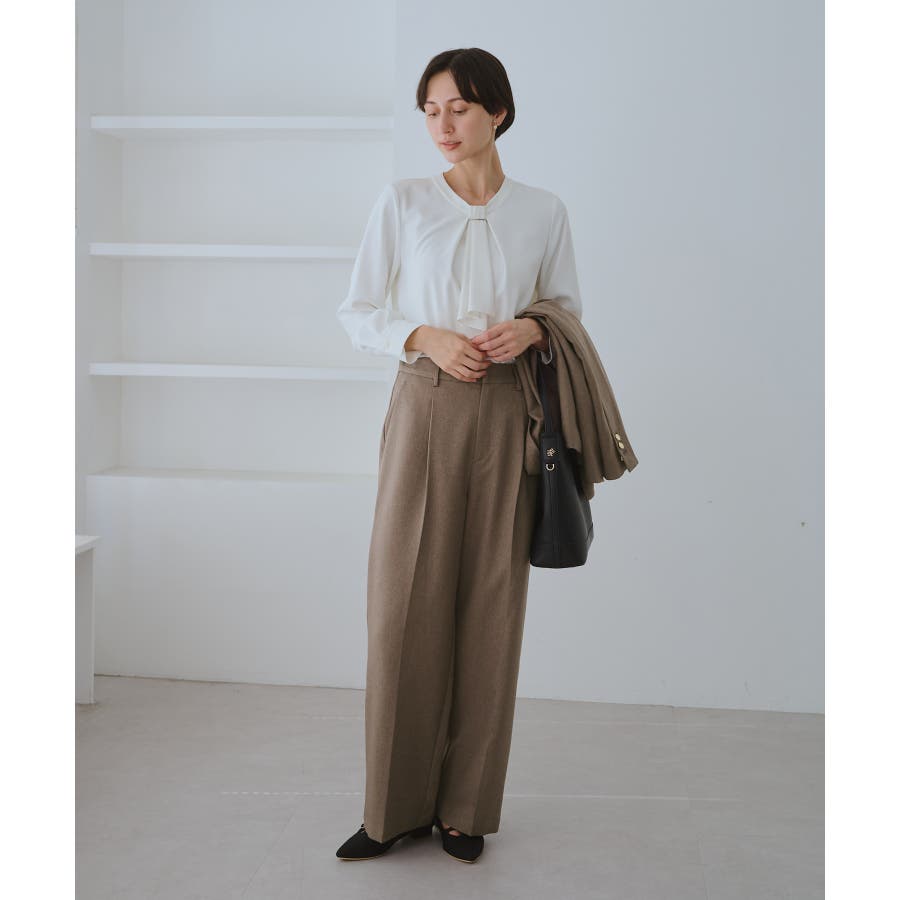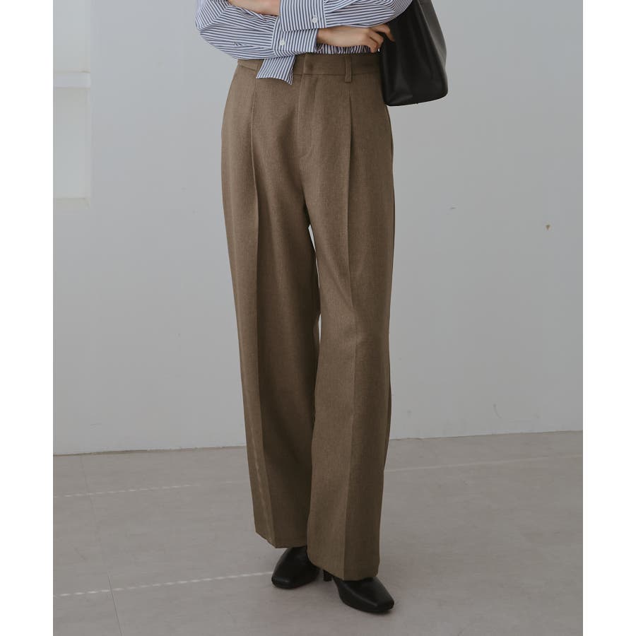 レディハンサムシリーズ ウールライクウエストタックセミワイドパンツ