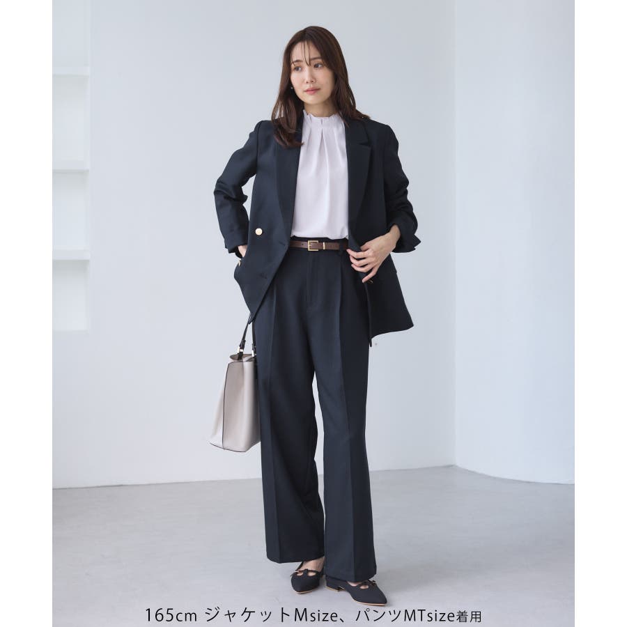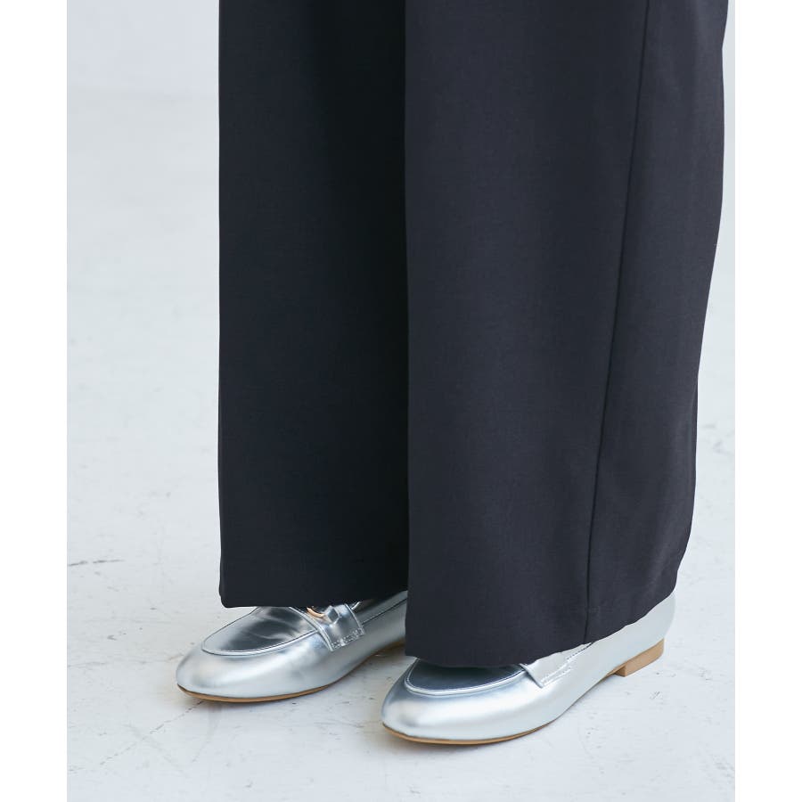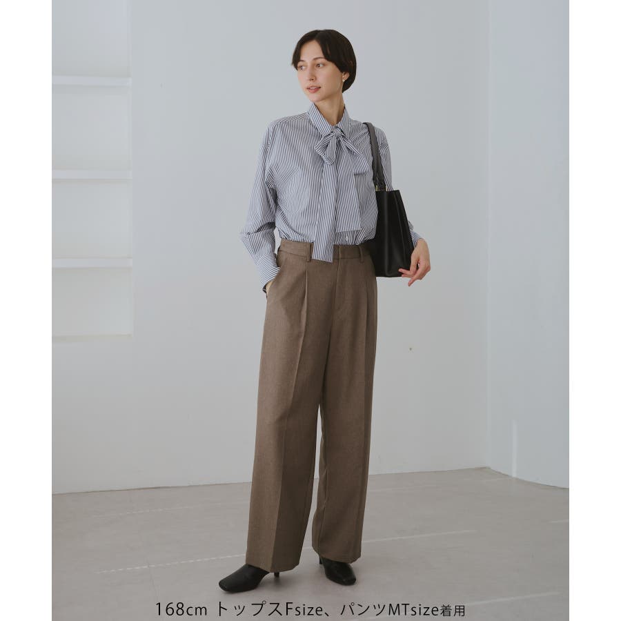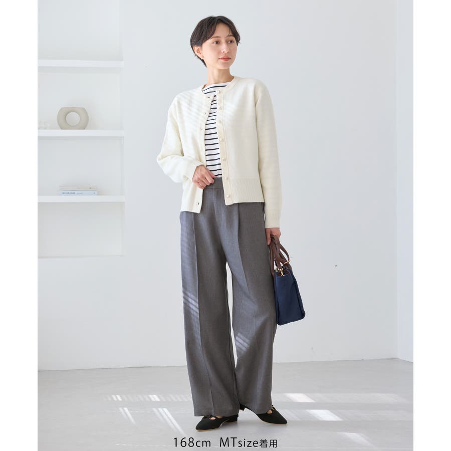 レディハンサムシリーズ ウールライクウエストタックセミワイドパンツ