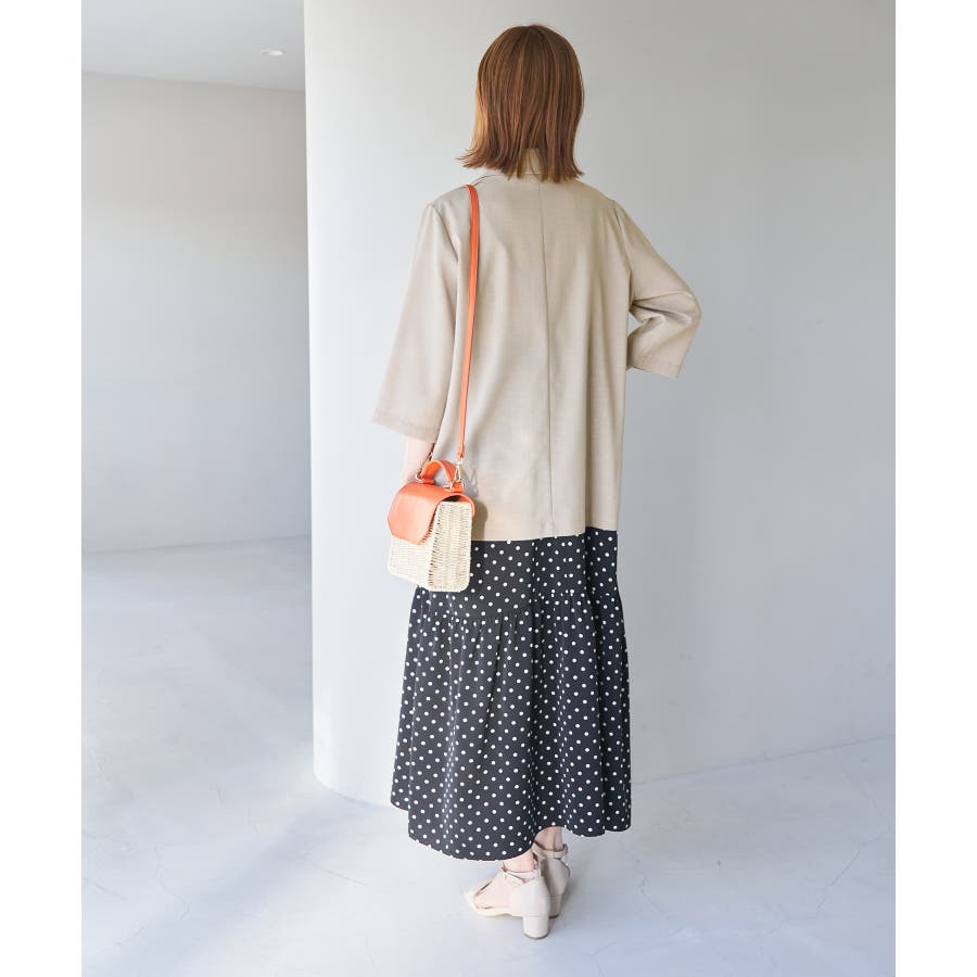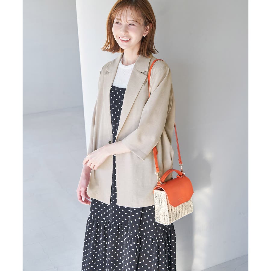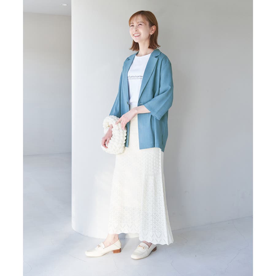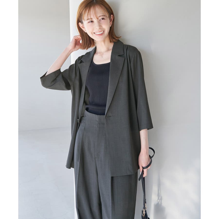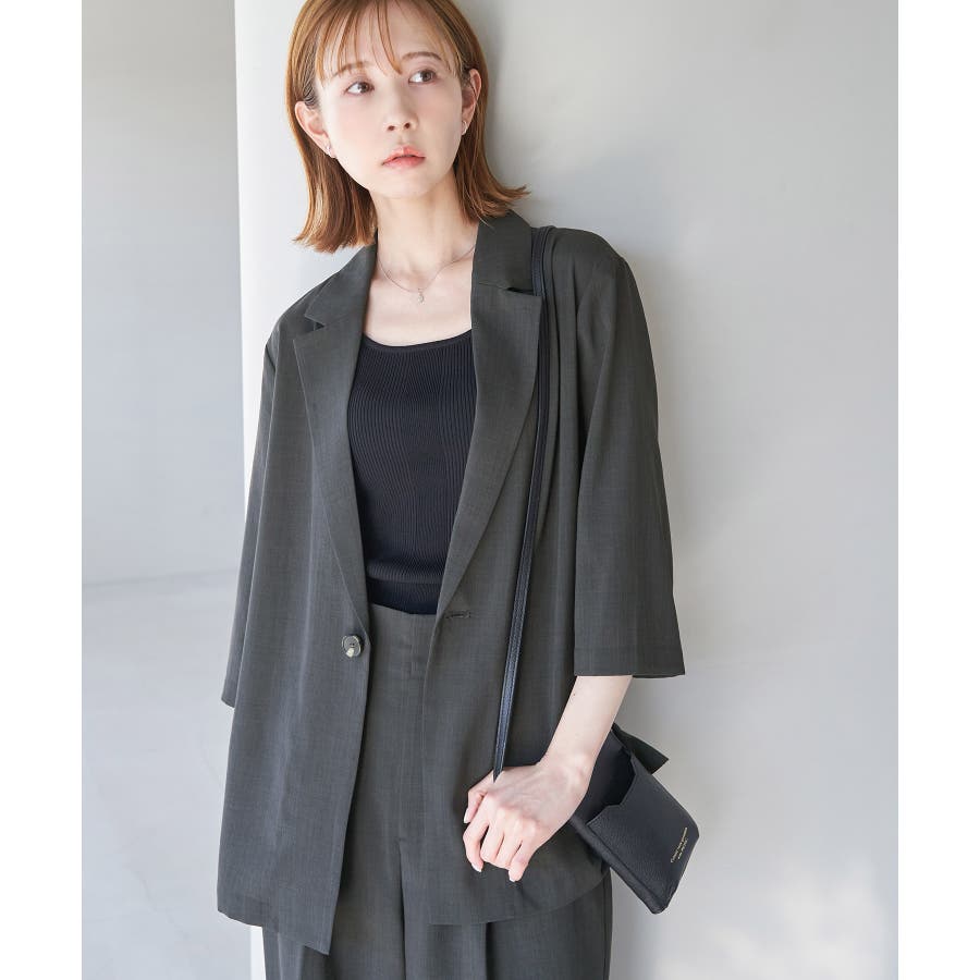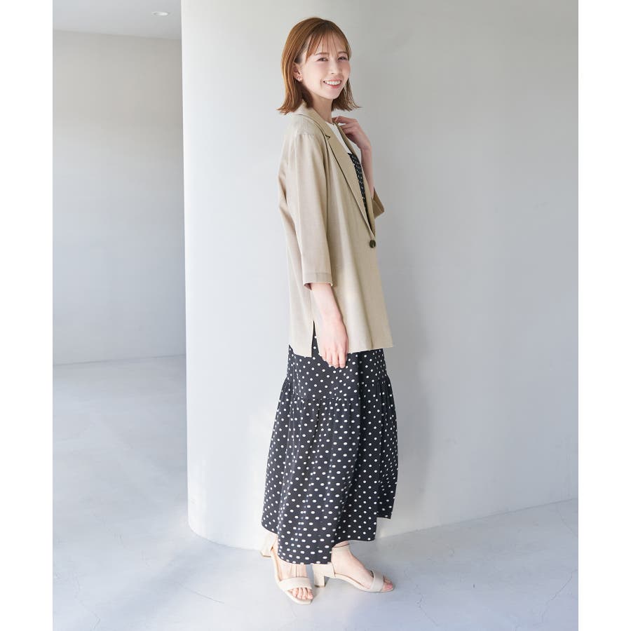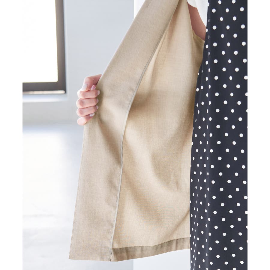 【素材感】 ・再生ポリエステルを使用した、サステナブルなアイテム。 ・清涼感のある涼しげな素材。 【デザイン・シルエット】 ・シアーで軽やかなテーラードジャケット。 ・袖先スリット入りでターンバックが可能。 ・メンズライクなゆったりフォルムで、ややカジュアルなフラットヘムを採用。 ・同素材でショート丈(品番:GDV13310)も展開。 【カラー】 ・カラーによって原産国が異なります。 チャコール(06)ベージュ(27)カーキ(36):カンボジア ターコイズ(49):中国 【スタイリングポイント】 ・夏らしいショートパンツとのスタイリングも一押し。 ・ロングワンピースにさらりと羽織って。 ・同シリーズでパンツ(品番:GDS13300)、スカート(品番:GDC13300)も展開しているので、セットアップスタイルもおすすめ。 ----------------------------- 裏地:なし 透け感:光に当てるとややあり 伸縮性:なし 生地感・厚さ:薄手 ポケット:なし 季節:春・夏 ----------------------------- ※撮影時の光、お使いのモニター環境によって色の見え方が違う場合がございます。 ※前回好評だった(品番:GDV12300)よりも袖口を短く、すっきりとした印象に。ボタンの色も変更しています。 ※重量は、サンプルの38サイズでの計測になります。 ※モデル身長:165cm 着用サイズ:38