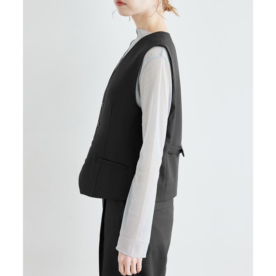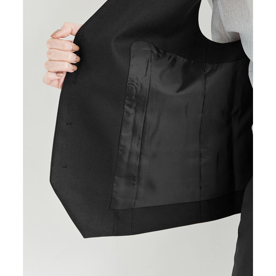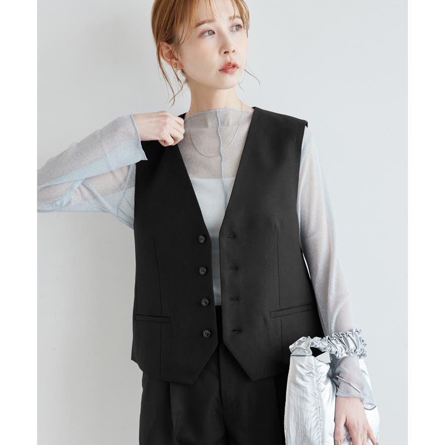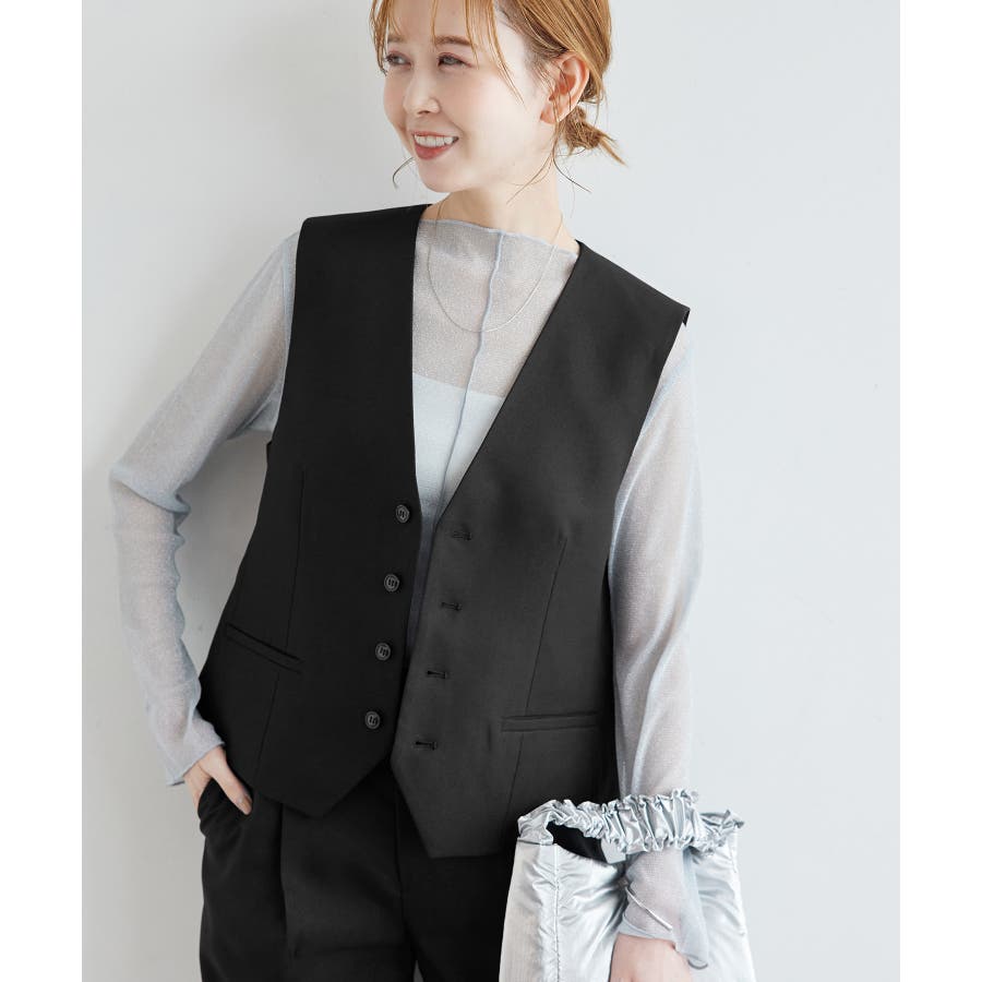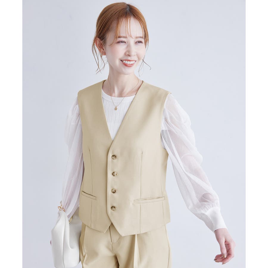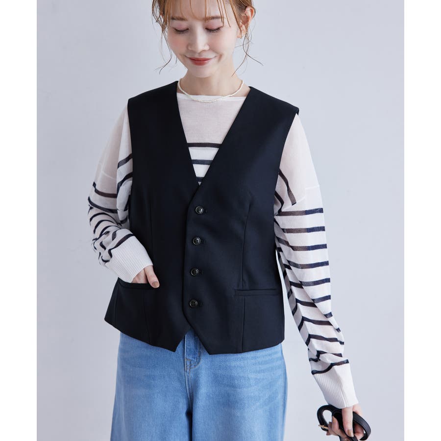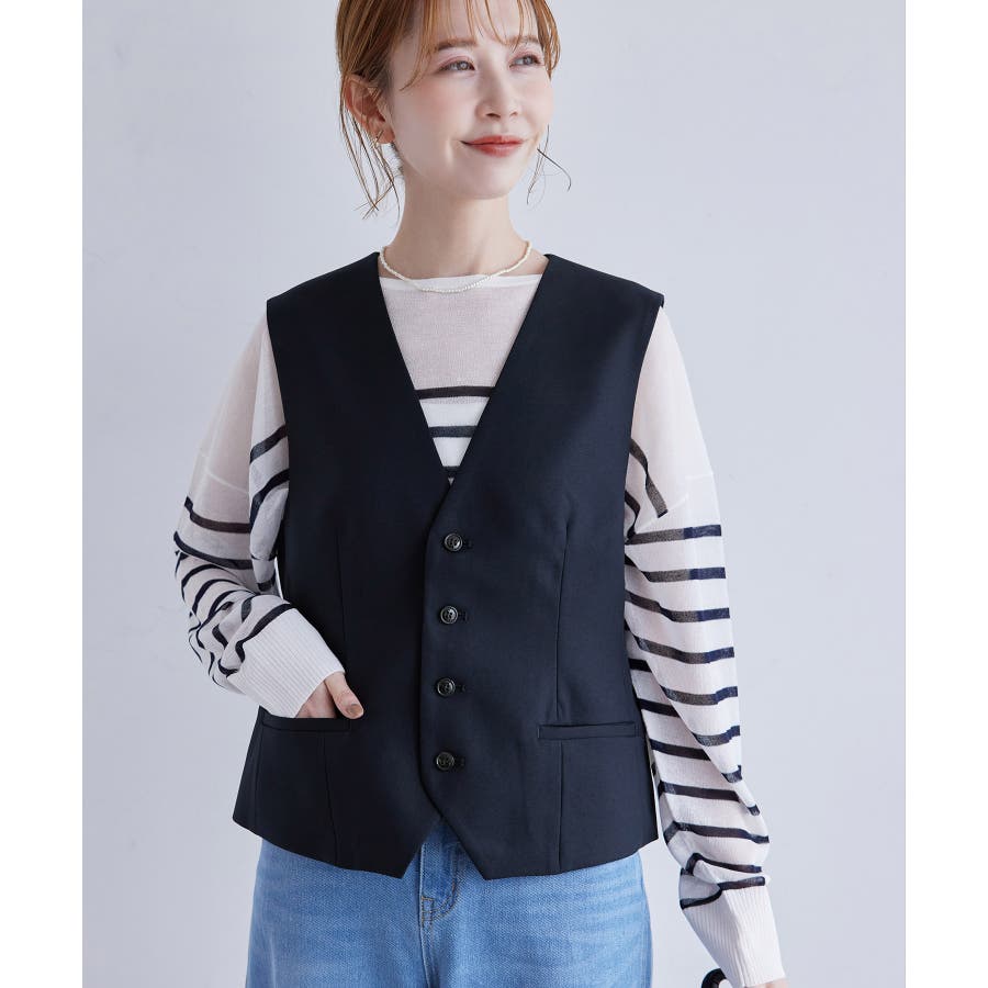 一人ひとりの毎日をサポートするfunction シリーズから、シミ汚れに特化したシリーズが登場! : 【素材感】 ・汚れが付きにくく、落ちやすい素材を使用。 ・やさしい光沢感のあるツイル素材で、お仕事にも普段にも着られる。 【デザイン・シルエット】 ・正装に使うノーカラーベストをロペピクニックらしく仕上げた一着。 ・ディテールを省いたミニマルなデザインが使いやすい。 ・身頃ダーツ入りのすっきりシルエット。 【カラー】 ・ブラック、ベージュ、ネイビーの合わせやすい3色展開。 【スタイリングポイント】 ・デイリーは、ボーダーシャツやTシャツなどに重ねて。 ・春夏はワンピースに羽織るスタイルもおすすめ。 <同シリーズアイテム> ・クロップドジャケット(品番:GDV14030) ・ミドルジャケット(品番:GDV24000) ・ジャンパースカート(品番:GDE14010) ・テーパードパンツ(品番:GDS14000) ・ワイドパンツ(品番:GDS24000) ・KIDSジャンパースカート(品番:GRE24030) ・KIDSパンツ(品番:GRS24020) ----------------------------- 裏地:あり 透け感:なし 伸縮性:なし 生地感・厚さ:普通 ポケット:あり 季節:春・夏・秋 ----------------------------- ※撮影時の光、お使いのモニター環境によって色の見え方が違う場合がございます。 ※モデル身長:165cm 着用サイズ:38