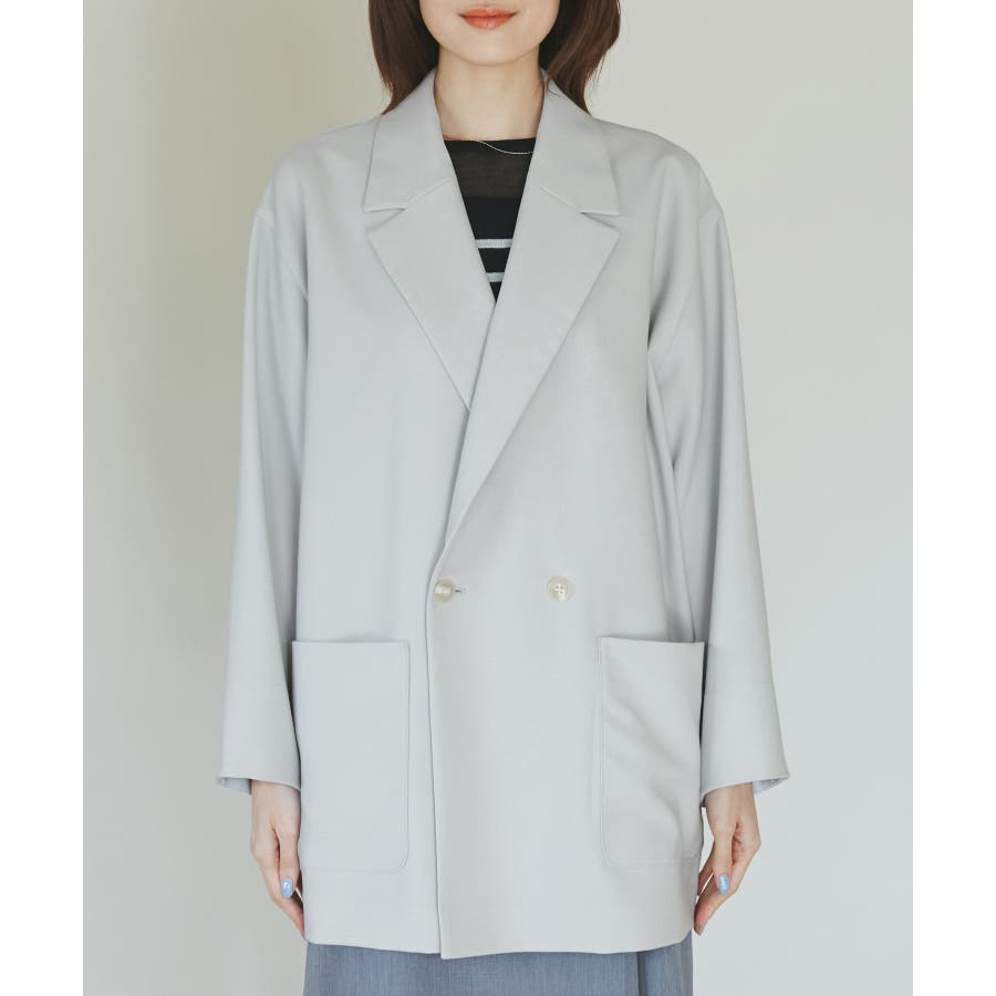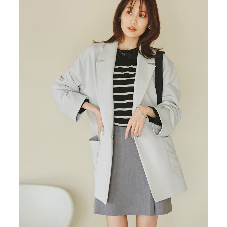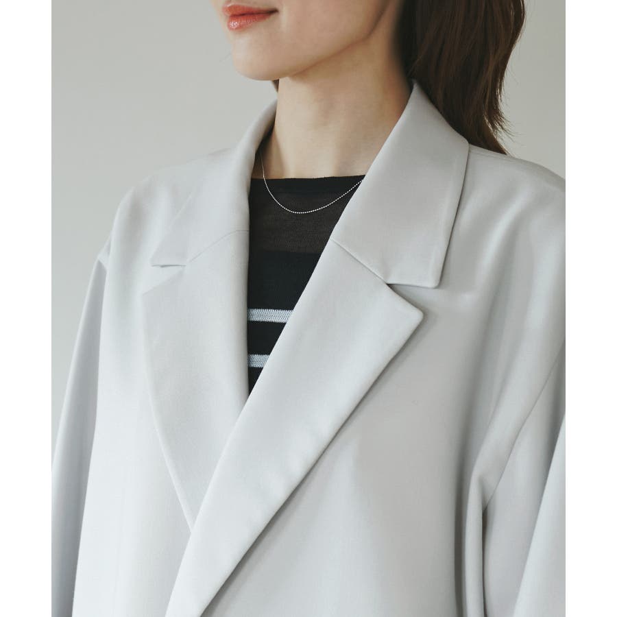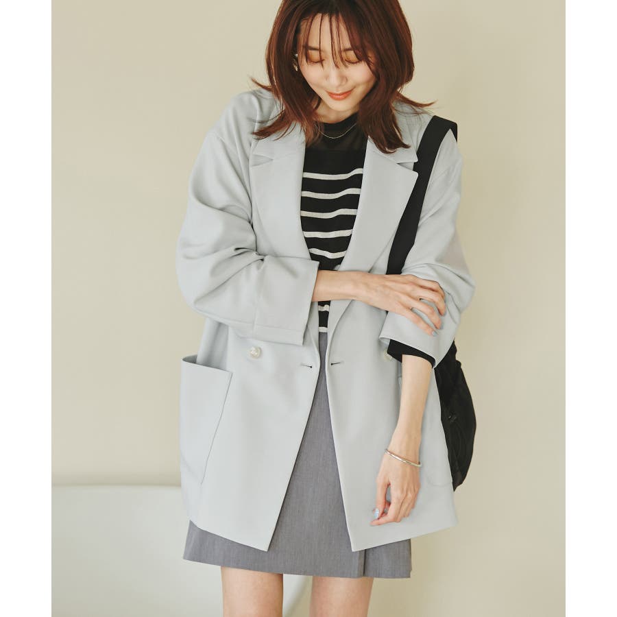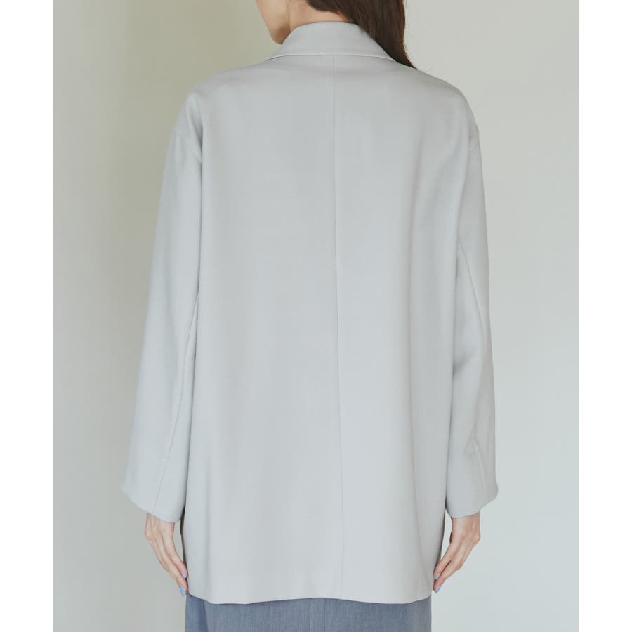 【デザイン・シルエット】 ・オーバーサイズで着こなすコートジャケット。 ・コートよりも軽やかで、ジャケットよりもアウター向きの春先にちょうど良い羽織もの。 ・メンズラクなダブル前立てと、大きなパッチポケットがポイント。 ・肩の切り替えはドロップした、抜け感のあるリラックスフォルム。 【カラー】 ・グレー、アイボリーの軽やかなカラーを2色で展開。 ・ライトグレー(08)はブルーみのあるグレイッシュブルーになります。 【スタイリングポイント】 ・フェミニンなロングワンピースに羽織るとミックス感のあるコーディネートに。 ・ワイドパンツでハンサムルックにトライ。 ----------------------------- 裏地:なし 透け感:なし 伸縮性:ややあり 生地感・厚さ:普通 ポケット:あり 季節:春・秋 ----------------------------- ※撮影時の光、お使いのモニター環境によって色の見え方が違う場合がございます。 ※モデル身長:165cm 着用サイズ:38