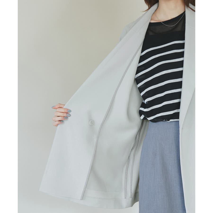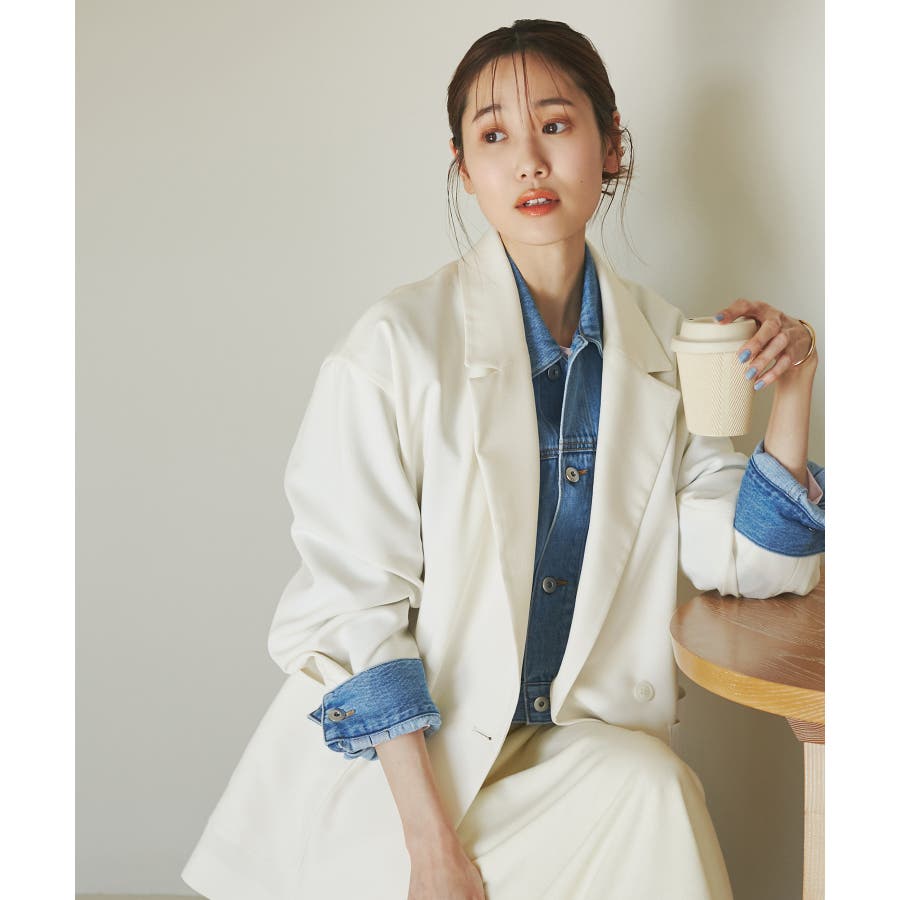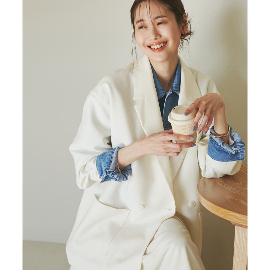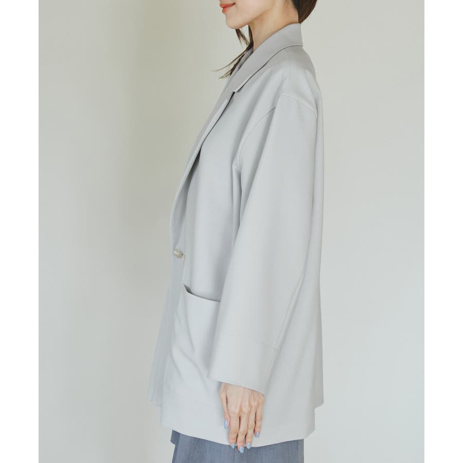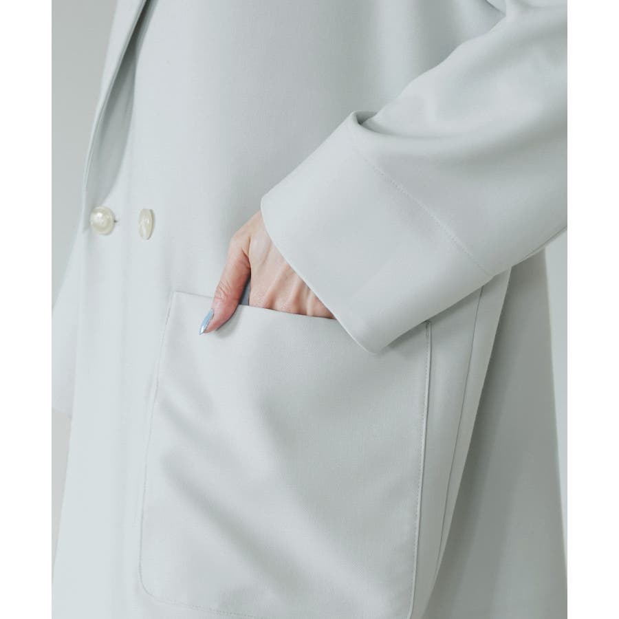 【デザイン・シルエット】 ・オーバーサイズで着こなすコートジャケット。 ・コートよりも軽やかで、ジャケットよりもアウター向きの春先にちょうど良い羽織もの。 ・メンズラクなダブル前立てと、大きなパッチポケットがポイント。 ・肩の切り替えはドロップした、抜け感のあるリラックスフォルム。 【カラー】 ・グレー、アイボリーの軽やかなカラーを2色で展開。 ・ライトグレー(08)はブルーみのあるグレイッシュブルーになります。 【スタイリングポイント】 ・フェミニンなロングワンピースに羽織るとミックス感のあるコーディネートに。 ・ワイドパンツでハンサムルックにトライ。 ----------------------------- 裏地:なし 透け感:なし 伸縮性:ややあり 生地感・厚さ:普通 ポケット:あり 季節:春・秋 ----------------------------- ※撮影時の光、お使いのモニター環境によって色の見え方が違う場合がございます。 ※モデル身長:165cm 着用サイズ:38