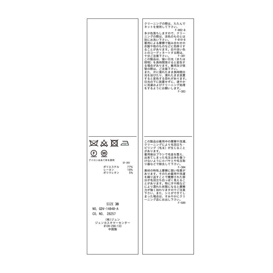| 素材 | ライトグレー(08):ポリエステル 77% レーヨン 18% ポリウレタン 5%|キナリ(16):ポリエステル 77% レーヨン 18% ポリウレタン 5% |